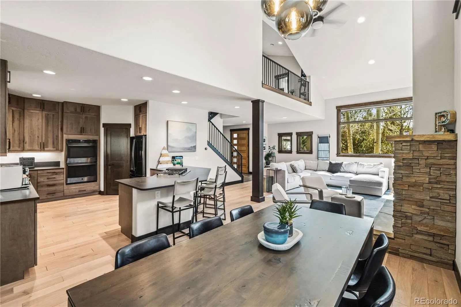 The stunning kitchen and baths have been completely redesigned with custom wood cabinetry, sleek quartz countertops, updated fixtures, and designer finishes. New cooktop and microwave, fresh interior paint, all-new lighting, and extensive tilework elevate every room. Engineered hardwood flooring adds elegance, while new carpet on the stairs and a custom metal railing complete the modern mountain aesthetic.