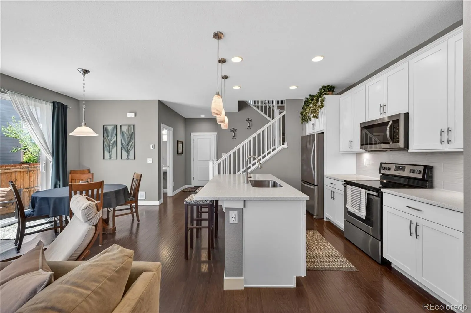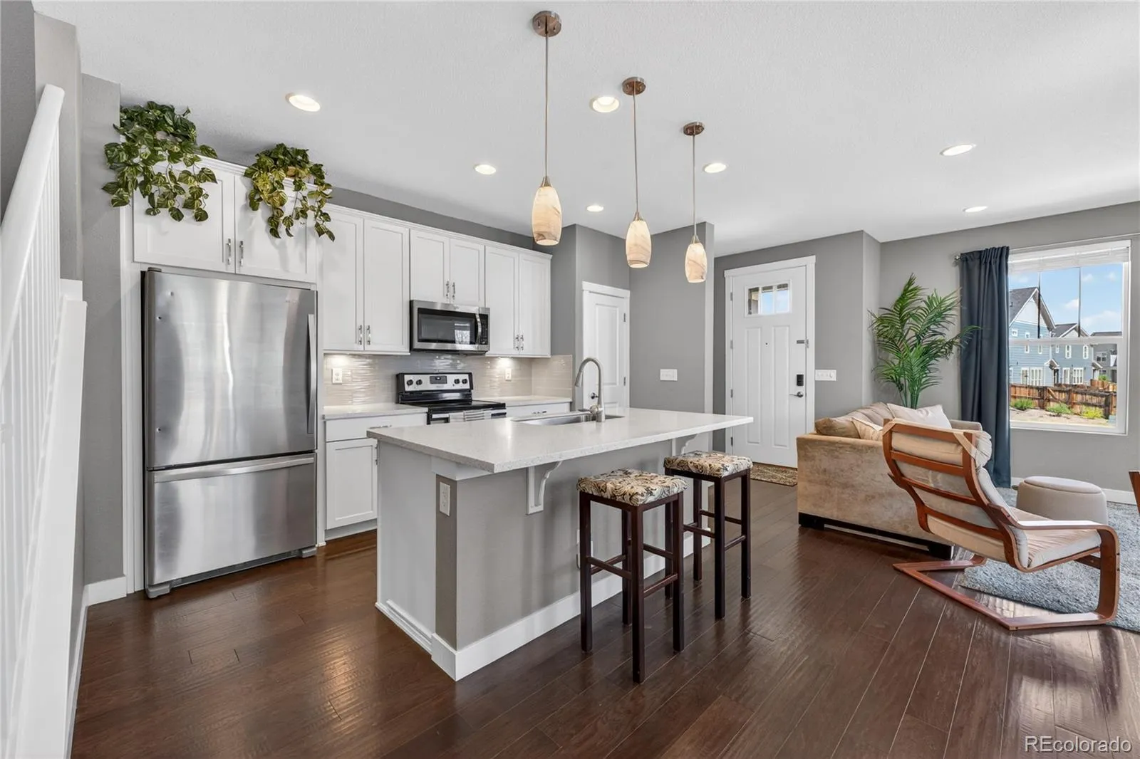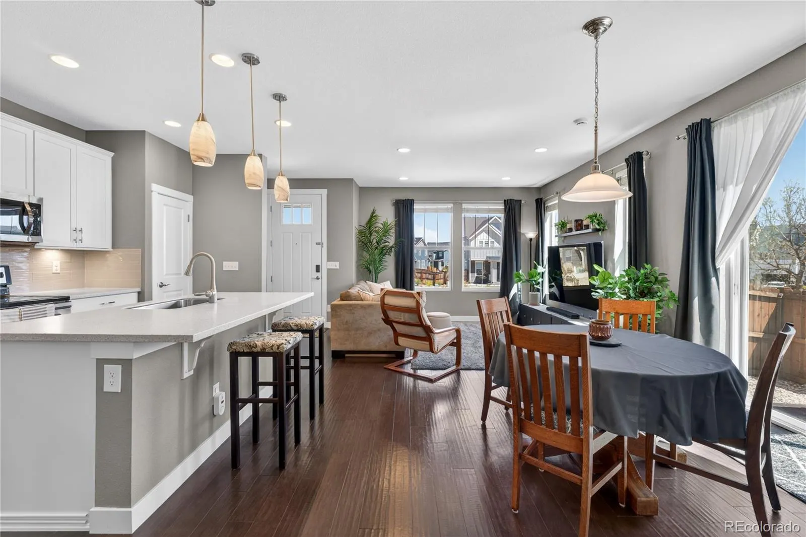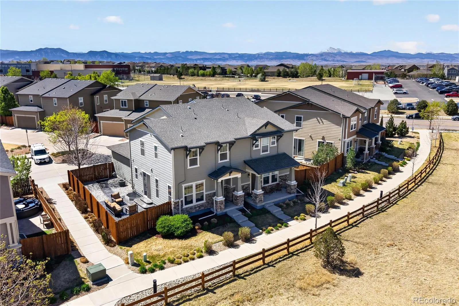 Discover the perfect blend of quiet comfort and modern convenience in this stunning end-unit home within the highly desirable Villas at Northpark community. Situated in a premier location, this residence faces a lush greenbelt and features no shared fencing on the side, offering a level of privacy and openness that is rare for attached living. The professionally landscaped front entry leads you into a bright, open-concept main floor designed for easy living. The gorgeous kitchen is a true standout, featuring chic white cabinetry, stainless steel appliances, durable Corian countertops, and a convenient breakfast bar. The kitchen flows seamlessly into the dining and living areas, where sliding glass doors open to a lovely sunny patio, the perfect spot for grilling or soaking up the Colorado sun. A half-bath and direct access to the attached 2-car garage complete the main level. Upstairs, a large, versatile loft provides the perfect space for a second living room, home office, or fitness area. The primary suite serves as a private sanctuary with its own en-suite bath and a spacious walk-in closet. An additional well-sized bedroom, a full bathroom, and a conveniently located laundry room round out the upper level. Located in a quiet, friendly community with excellent local schools, this home offers an unbeatable lifestyle. You are just minutes away from major highways, top-tier hospitals, and premier shopping, while being steps from local trailheads and outdoor recreation. Enjoy the peace of a tucked-away neighborhood with the ease of access to get anywhere you need to go!