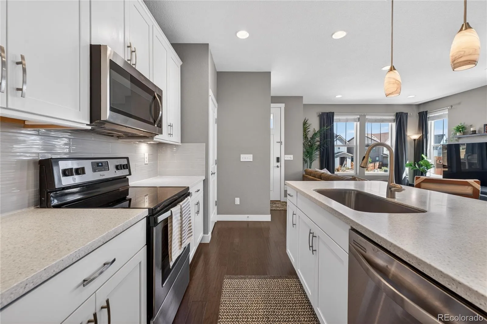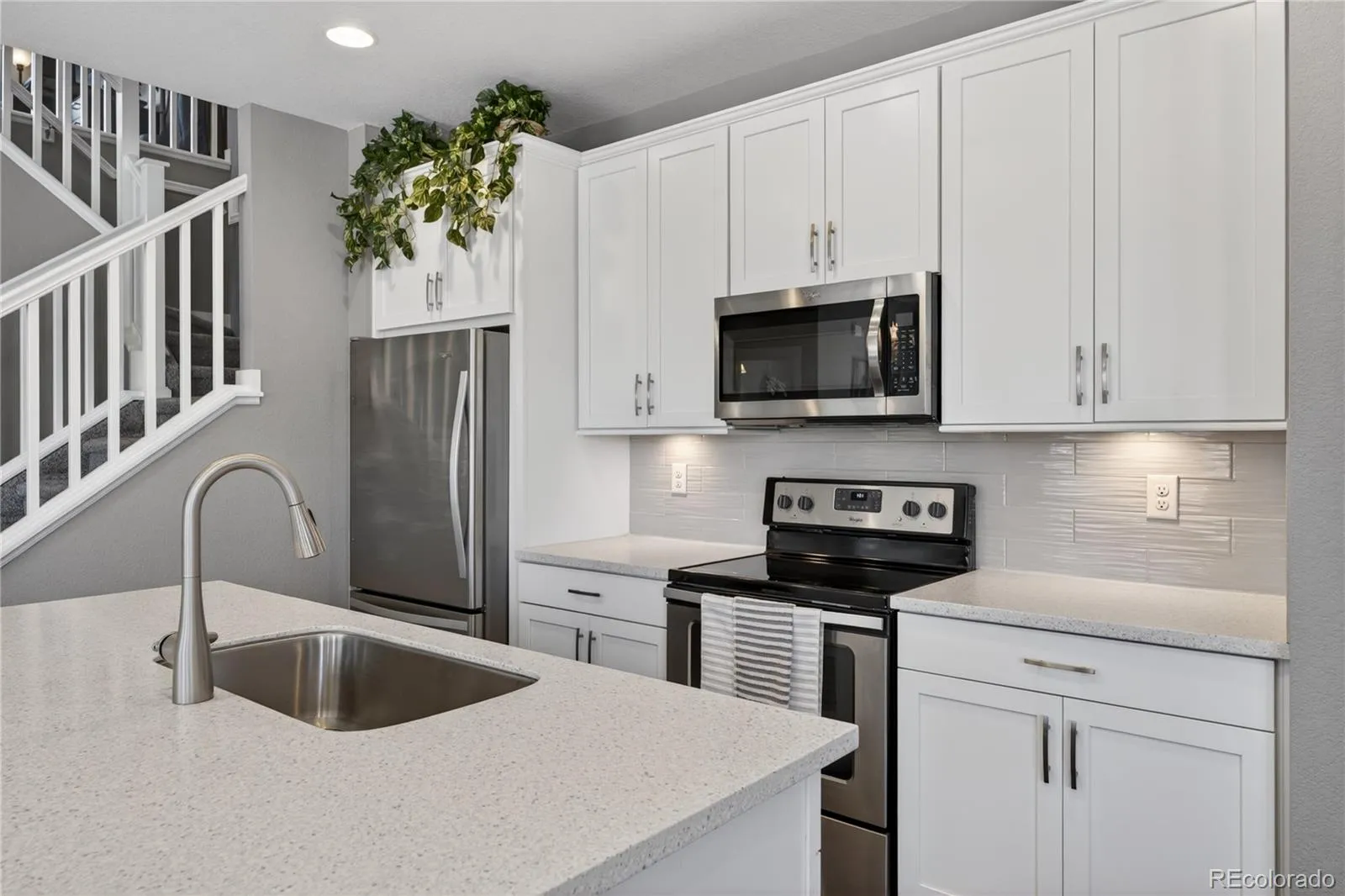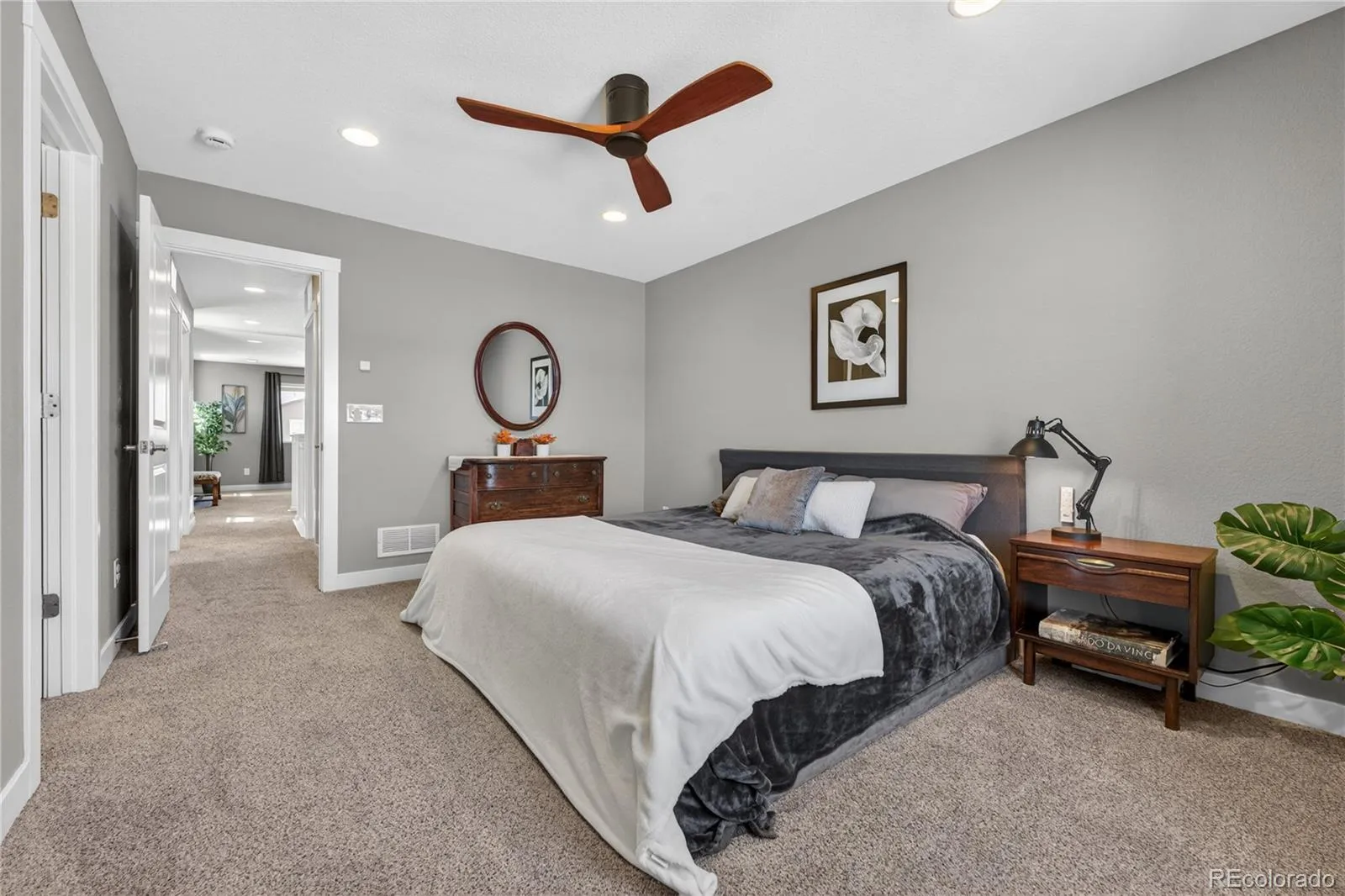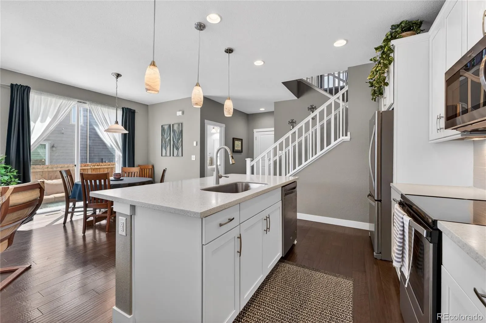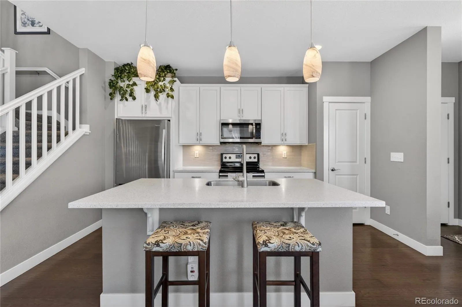 Discover the perfect blend of quiet comfort and modern convenience in this stunning end-unit home within the highly desirable Villas at Northpark community. Situated in a premier location, this residence faces a lush greenbelt and features no shared fencing on the side, offering a level of privacy and openness that is rare for attached living. The professionally landscaped front entry leads you into a bright, open-concept main floor designed for easy living. The gorgeous kitchen is a true standout, featuring chic white cabinetry, stainless steel appliances, durable Corian countertops, and a convenient breakfast bar. The kitchen flows seamlessly into the dining and living areas, where sliding glass doors open to a lovely sunny patio, the perfect spot for grilling or soaking up the Colorado sun. A half-bath and direct access to the attached 2-car garage complete the main level. Upstairs, a large, versatile loft provides the perfect space for a second living room, home office, or fitness area. The primary suite serves as a private sanctuary with its own en-suite bath and a spacious walk-in closet. An additional well-sized bedroom, a full bathroom, and a conveniently located laundry room round out the upper level. Located in a quiet, friendly community with excellent local schools, this home offers an unbeatable lifestyle. You are just minutes away from major highways, top-tier hospitals, and premier shopping, while being steps from local trailheads and outdoor recreation. Enjoy the peace of a tucked-away neighborhood with the ease of access to get anywhere you need to go!