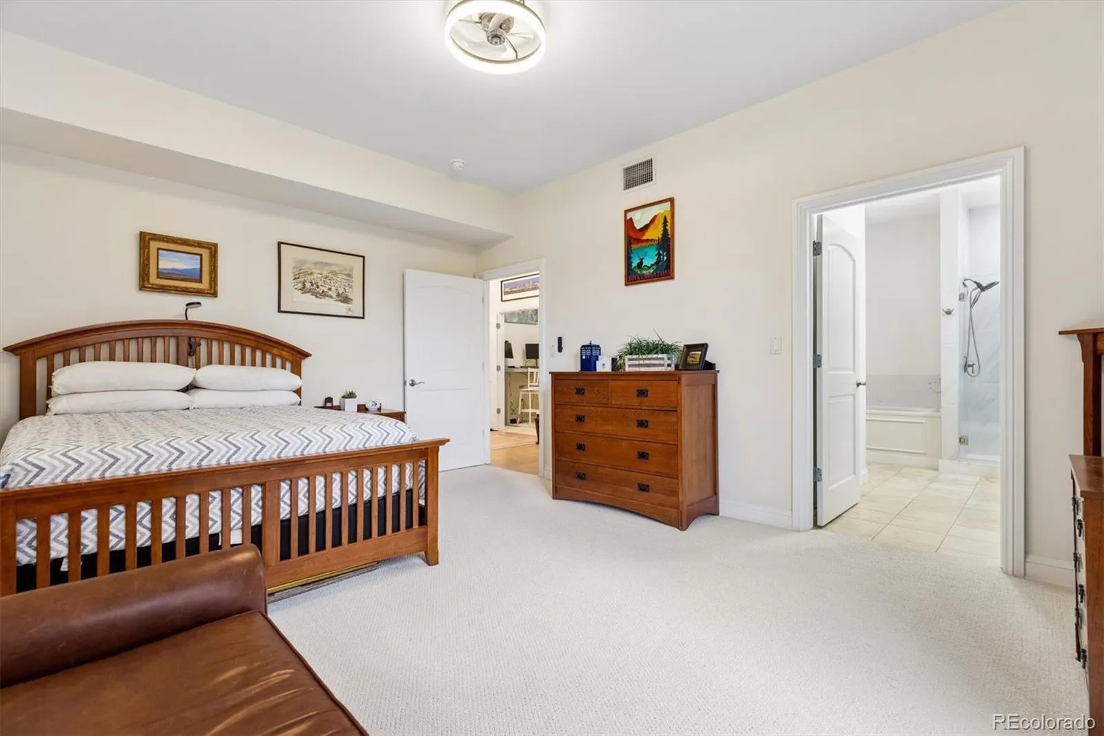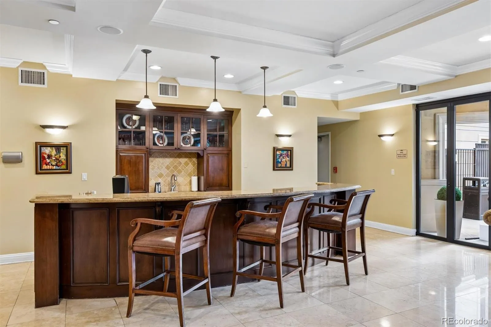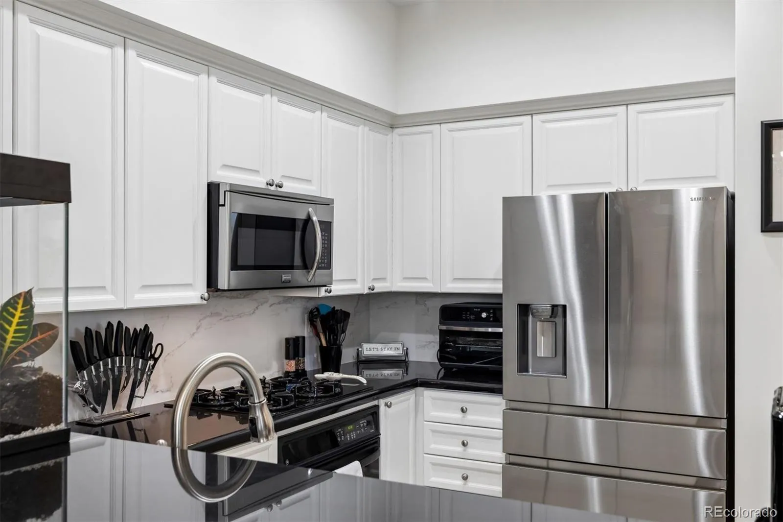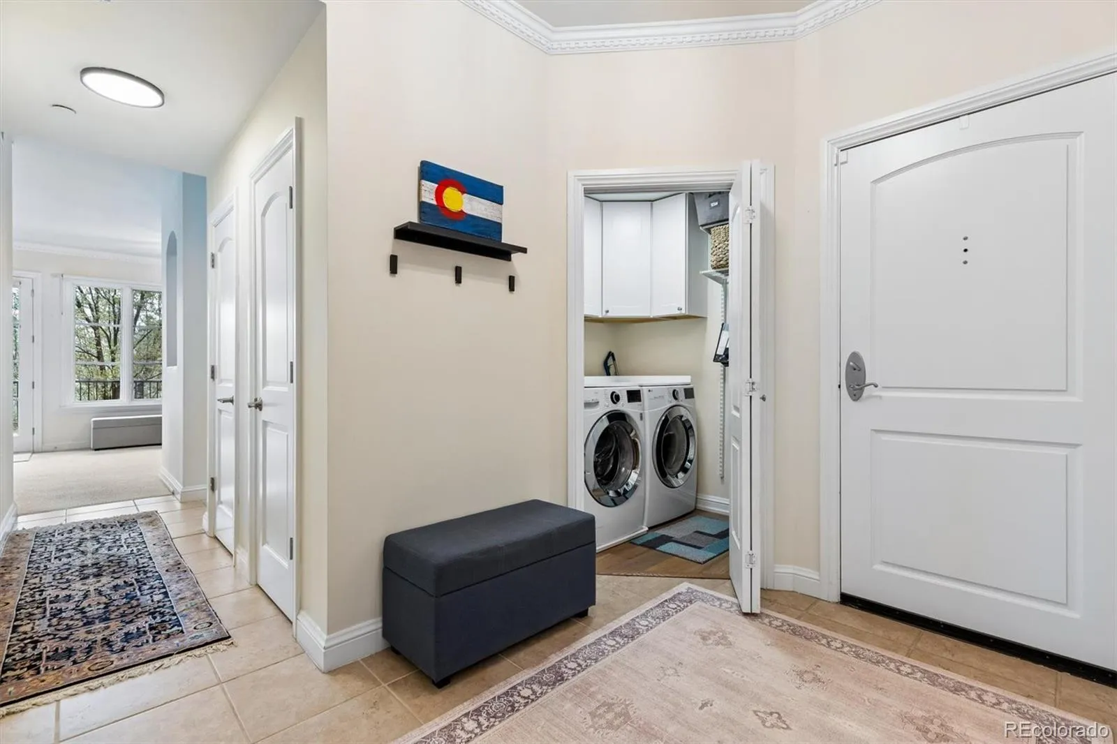 Welcome to your new paradise in the trees! This is an updated and upgraded, two full bath one-bedroom plus a study corner unit on the south bank of Cherry Creek with north and western views. Nine-foot ceilings with crown molding throughout the home and walls of windows in the Living and Dining Room with French doors leading to the charming balcony are graced with automated shades including both solar and blackout on the West window. In the primary bedroom with a 5-piece, ensuite bath, newly tiled shower, the West window has both manually operated solar shades as well as linen black-out curtains. New carpet in the den, living room, and dining room in 2024. Fresh paint throughout (2025) and a new closet system in the master closet (2024). New kitchen backsplash (granite countertops!) and bathroom faucets, bathroom sinks, and new lighting, including an upscale hotel back-lit mirror. Appliance upgrades boast a Samsung 4-door counter-depth refrigerator, a Samsung dishwasher, and an LG washer and dryer. Enjoy the new designer lighting throughout. Portico amenities include a Social Room with fireplace and kitchen, a fitness facility, a hot tub and pools (year-round use!), and a spa with steam room, sauna, and massage room. 2 parking spaces at the foot of the East stairs and across from the elevators. You will love living at the prestigious Portico just steps from Cherry Creek with awesome views of the Denver Country Club fireworks!!