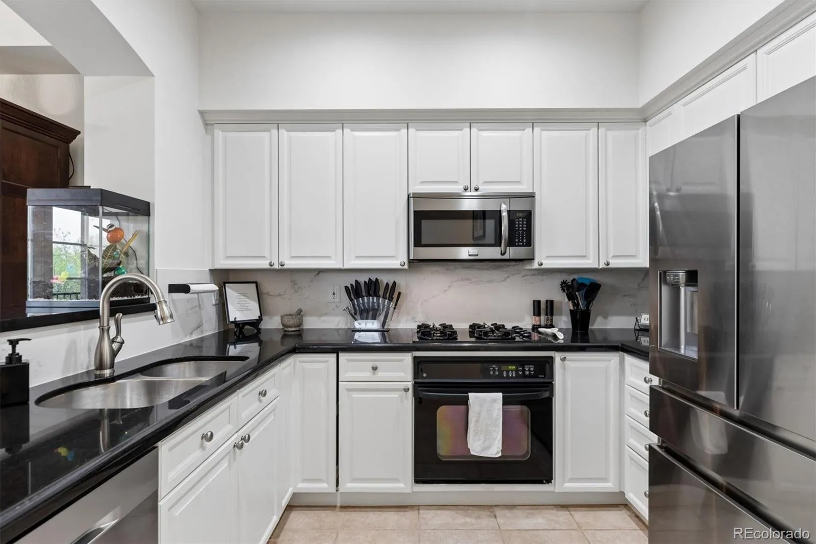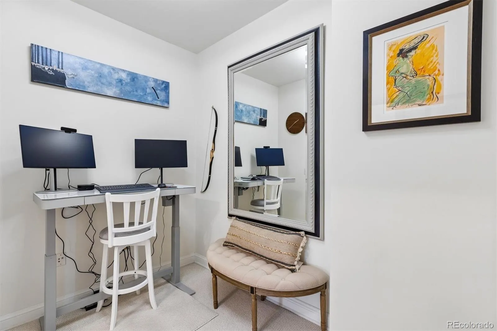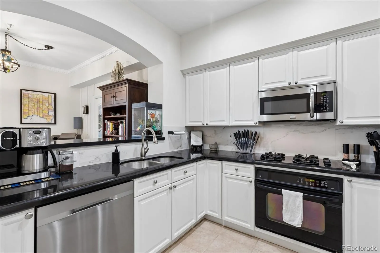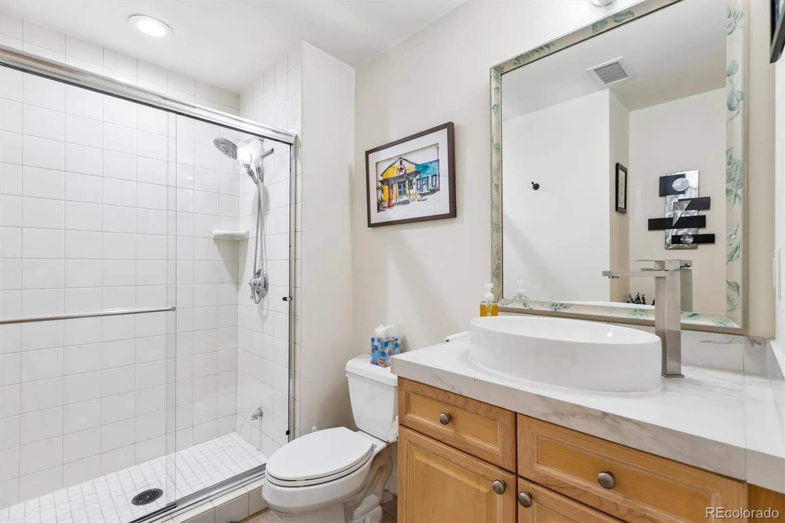 Welcome to your new paradise in the trees! This is an updated and upgraded, two full bath one-bedroom plus a study corner unit on the south bank of Cherry Creek with north and western views. Nine-foot ceilings with crown molding throughout the home and walls of windows in the Living and Dining Room with French doors leading to the charming balcony are graced with automated shades including both solar and blackout on the West window. In the primary bedroom with a 5-piece, ensuite bath, newly tiled shower, the West window has both manually operated solar shades as well as linen black-out curtains. New carpet in the den, living room, and dining room in 2024. Fresh paint throughout (2025) and a new closet system in the master closet (2024). New kitchen backsplash (granite countertops!) and bathroom faucets, bathroom sinks, and new lighting, including an upscale hotel back-lit mirror. Appliance upgrades boast a Samsung 4-door counter-depth refrigerator, a Samsung dishwasher, and an LG washer and dryer. Enjoy the new designer lighting throughout. Portico amenities include a Social Room with fireplace and kitchen, a fitness facility, a hot tub and pools (year-round use!), and a spa with steam room, sauna, and massage room. 2 parking spaces at the foot of the East stairs and across from the elevators. You will love living at the prestigious Portico just steps from Cherry Creek with awesome views of the Denver Country Club fireworks!!