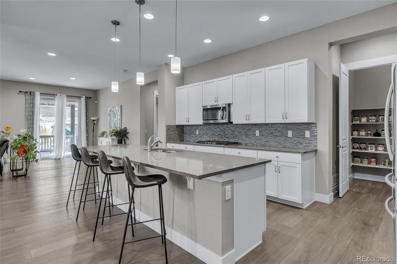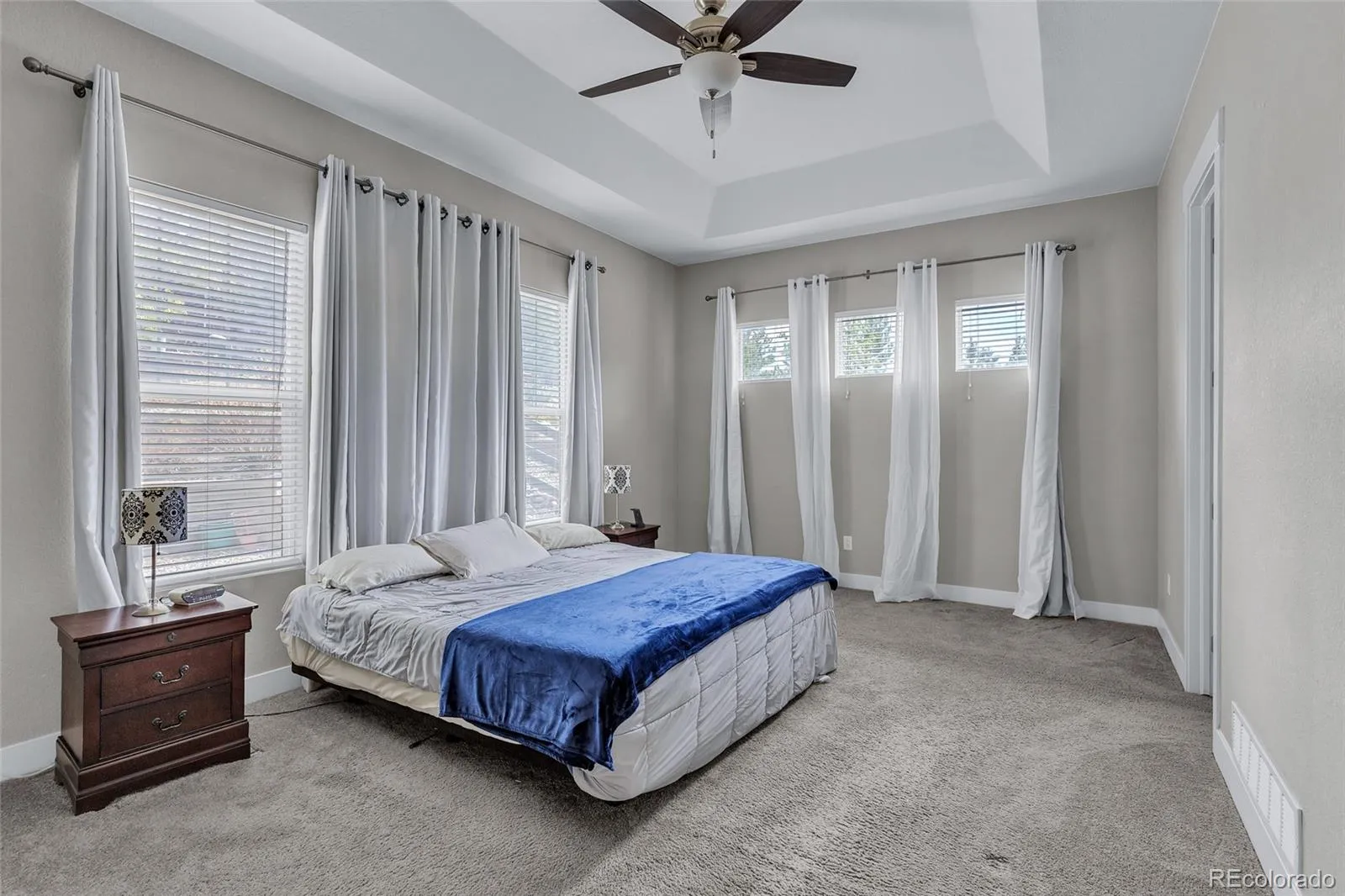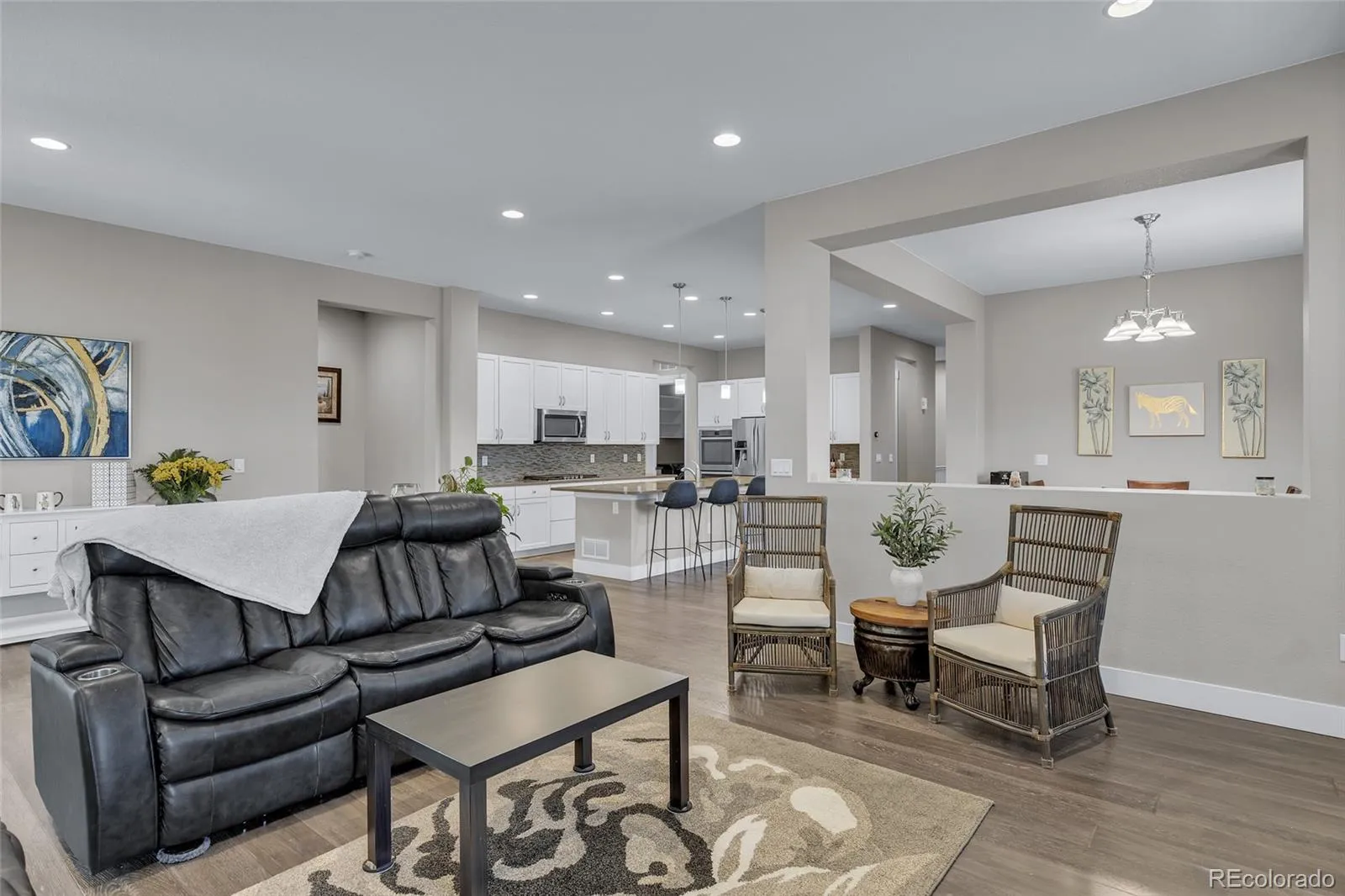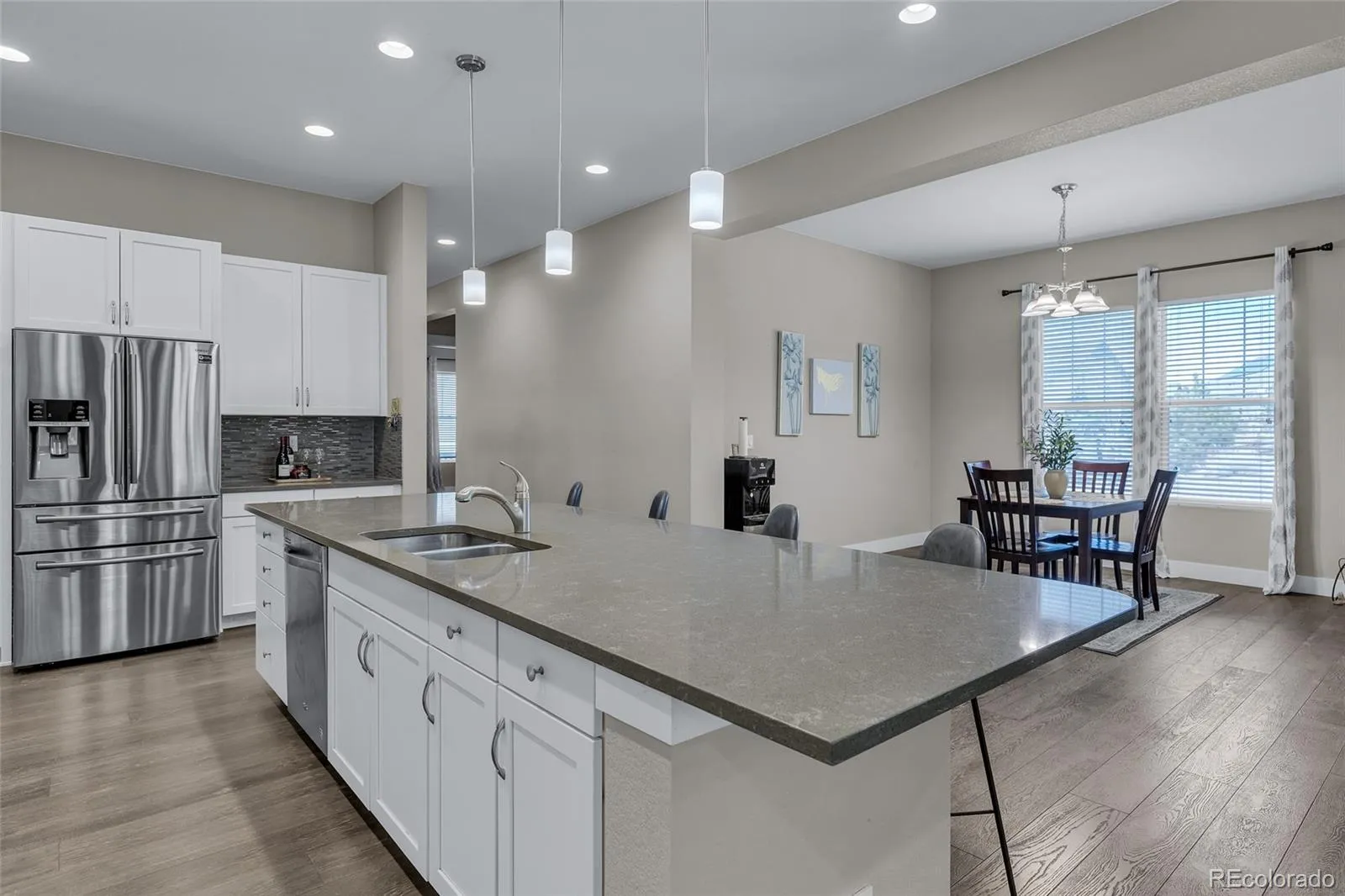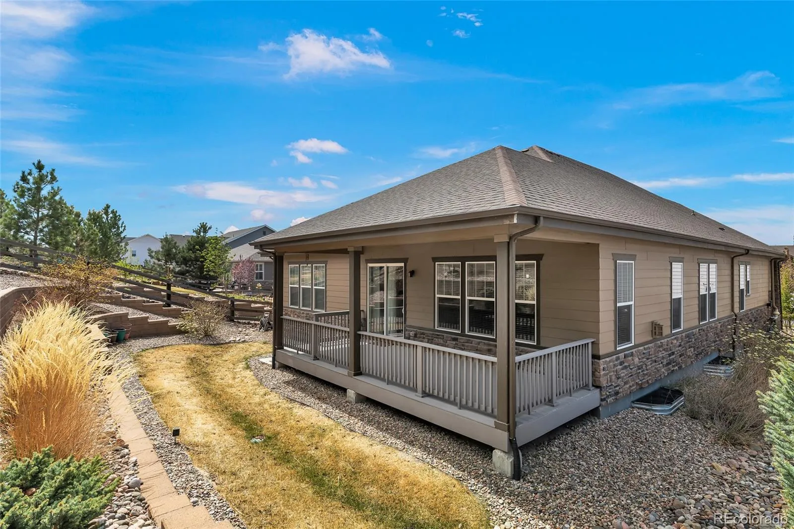 Beautifully designed ranch home offering the perfect blend of comfort, functionality, and modern living. The main level features three spacious bedrooms, including a luxurious primary suite complete with a spa-like en suite showcasing a soaking tub, glass-enclosed shower, dual vanities, and a generous walk-in closet. Two additional bedrooms are thoughtfully connected by a Jack-and-Jill bathroom with double vanities, providing both convenience and privacy. Just off the entry, a dedicated office with elegant double glass doors creates the ideal space for working from home or quiet retreat. The open-concept main living area is highlighted by soaring ceilings, abundant natural light, and a seamless flow between the family room, dining area, and kitchen…perfect for everyday living and effortless entertaining. The kitchen features a large center island and connects beautifully to the inviting family room with a cozy fireplace. Step outside to enjoy the expansive covered front porch or unwind on the oversized, covered back patio overlooking a private backyard with professionally designed and constructed terraced landscaping, an ideal setting for relaxing or hosting gatherings. The fully finished basement offers an incredible amount of flexible space, ready to be customized to fit your lifestyle, whether it’s a home theater, gym, game room, or additional living area. A fourth bedroom (non-conforming due to no closet) and full bathroom provide a perfect setup for guests. Additional highlights include a three-car garage with high ceilings and a set-back driveway that enhances privacy and curb appeal. Ideally located within the highly sought-after Cherry Creek School District and just minutes from miles of scenic trails, parks, and the shopping, dining, and entertainment options of Southlands Mall Area!