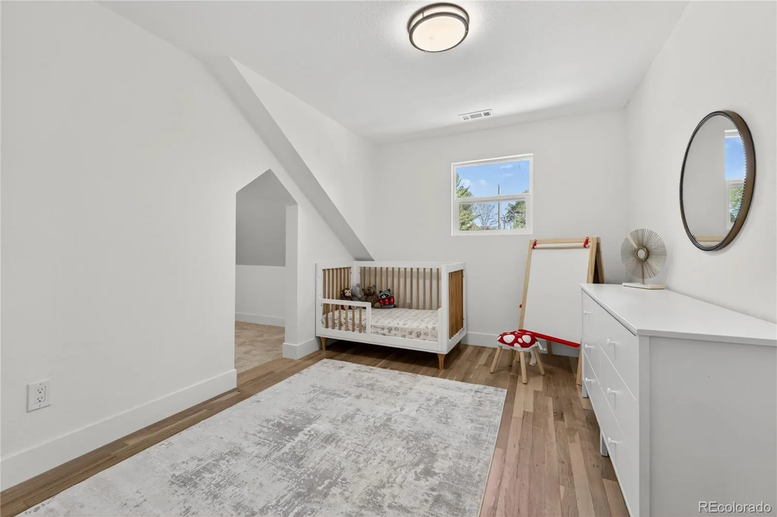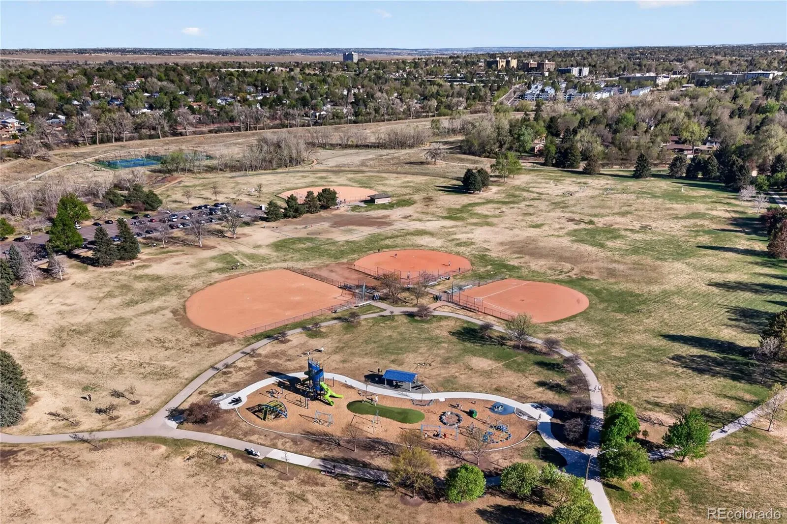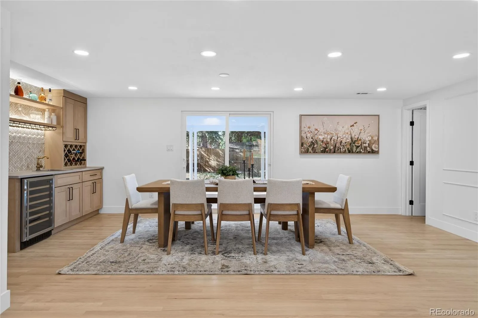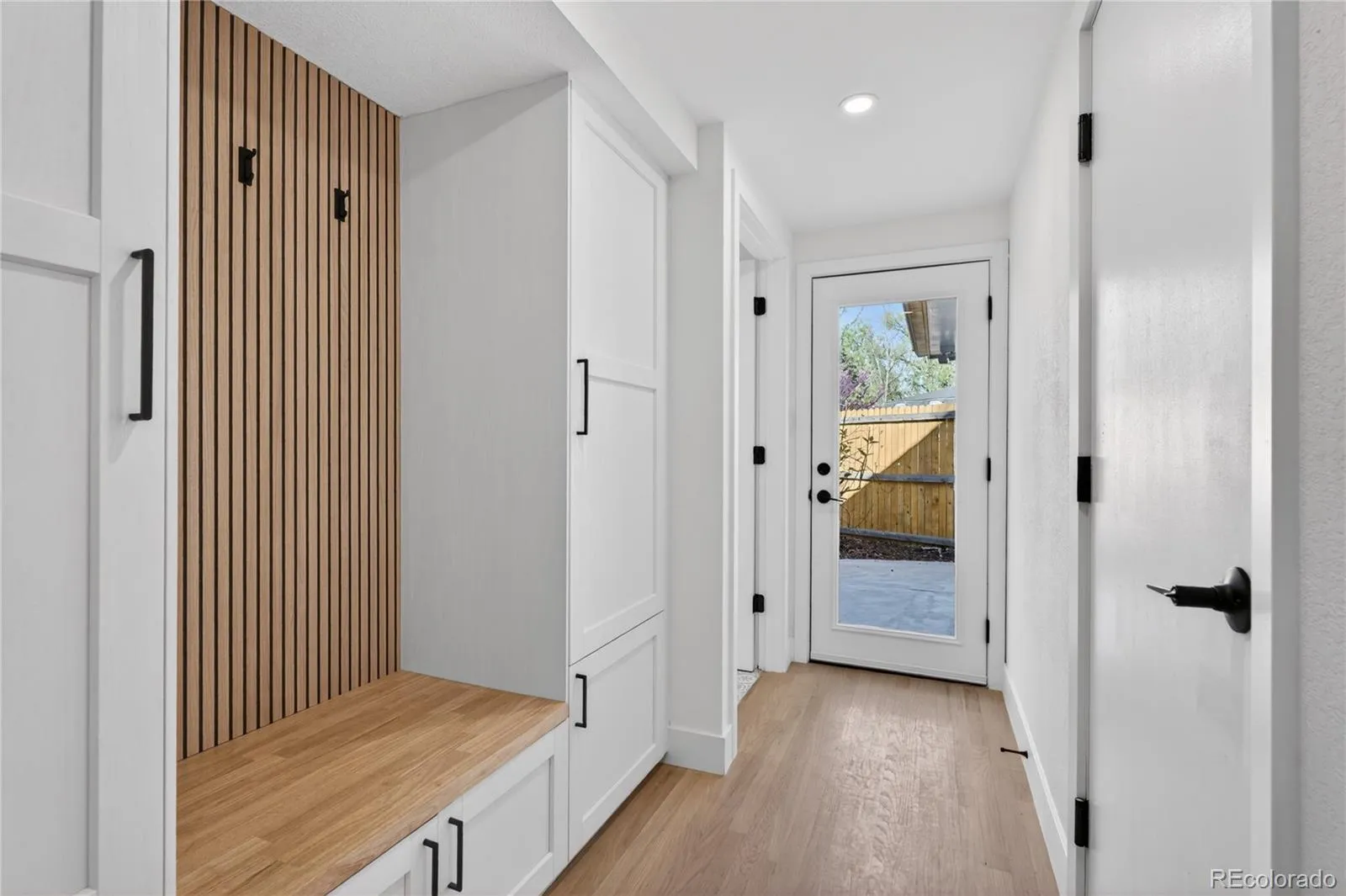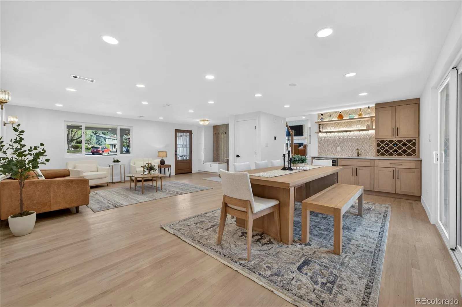 This stunning home in Holly Hills/Eastgate has been completely transformed with a full, high-end remodel reflecting exceptional craftsmanship and today’s most desirable design trends. Offering approximately 2,200 square feet above ground with four bedrooms plus a den on the second floor—an exceptionally rare find in this neighborhood—the home delivers both space and flexibility for modern living. Located in Holly Hills, ranked the #1 Best Place to Live in the Denver area by Niche, this property sits in one of the most sought-after communities. Set on a large, unique corner lot, the home’s unique angled architecture brings in natural light throughout the day, while mature trees and landscaping create a peaceful, private setting. Inside, the open-concept layout blends style and function. Hardwood flooring runs throughout, complemented by designer finishes. The gourmet kitchen features a quartz waterfall island, premium Bosch appliances including a 6-burner gas range with a custom hood, and sleek cabinetry. The adjacent living room showcases a linear gas fireplace with built-ins. The dining area sits just off the main living space and is enhanced by an elegantly designed wet bar with a beverage fridge—ideal for everyday living and entertaining. Upstairs offers four generously sized bedrooms, a versatile bonus room, beautifully designed bathrooms with high-end finishes, and a custom walk-in closet. The fully finished basement adds a large family room, private guest bedroom, and attached bath—ideal for visitors or multi-generational living. Outside, enjoy a landscaped backyard with a covered patio. All systems—including HVAC, water heater, roof, windows, and insulation—are brand new. Minutes to Bible Park and the High Line Canal Trail, with easy access to shopping and dining, this move-in-ready home offers luxury, comfort, and location.