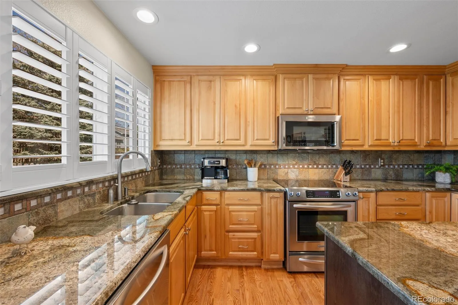 You picked the perfect time of year, and this home will be the fertile soil that will be where you grow your fondest memories. Lovingly cared for by the original owners, you’ll recognize it the moment you walk in. The floor plan is spacious and thoughtful with plantation shutters throughout adding charm and elegance. A light filled formal dining room with vaulted ceilings set the stage. It’s spacious enough for large family gatherings or you can use it for a living room/bonus room. From there, you move toward the well-designed kitchen with beautiful granite counters, ample storage plus island, stainless steel appliances, and a large eat-in area. With easy access to the back yard, you’ll enjoy the expansive, custom stamped concrete patio. The west facing back yard is protected from hot summer days by large shade trees just turning green. With multiple areas to relax, the backyard will surely be a staple for quiet enjoyment or perfect for entertaining friends and family. The family room offers a built-in dry bar area, fireplace and abundant light. Laundry and a half-bath complete the main level. The upper level has been recently remodeled with new luxury vinyl flooring and new baths. In total there are three bedrooms including primary en-suite. One bedroom has been converted into a home office. The basement is set up for a family room wired for sound plus study station and a ¾ bath. The location has so much to offer including close proximity to Mt. Carbon Elementary. Shopping, restaurants and everyday conveniences are all close by. Enjoy easy access to C-470 for mountain adventures, Bear Creek Lake Park, Chatfield, Meadows Golf Club and so much more. Come explore this exceptional home!