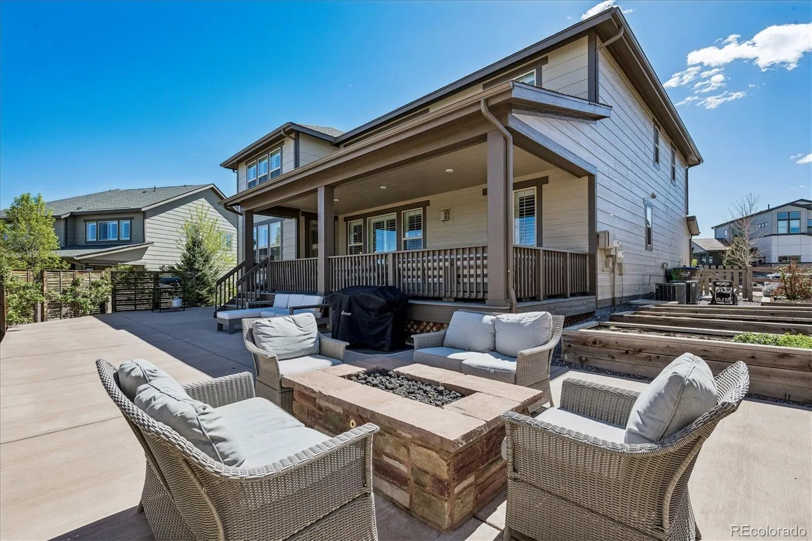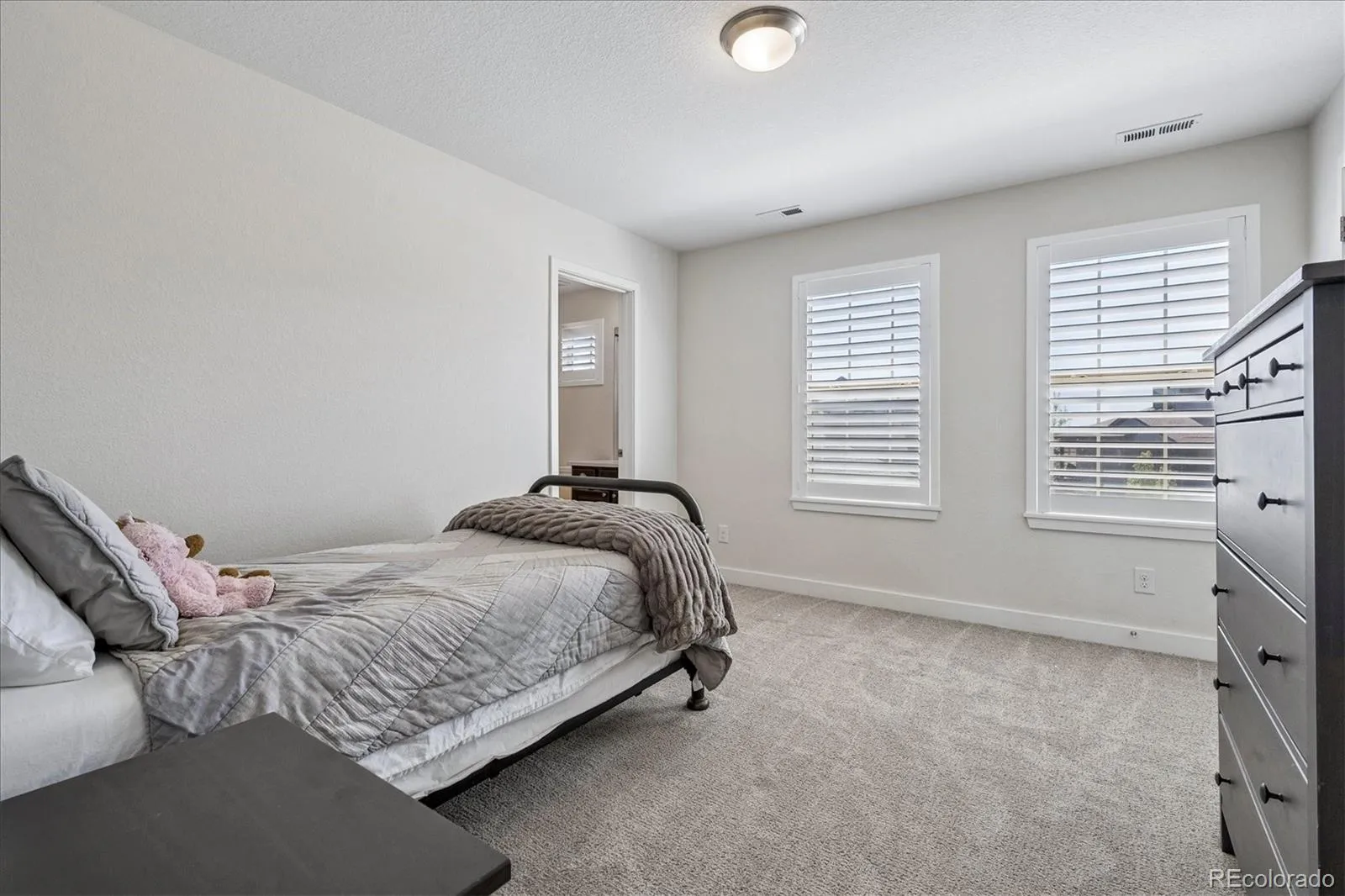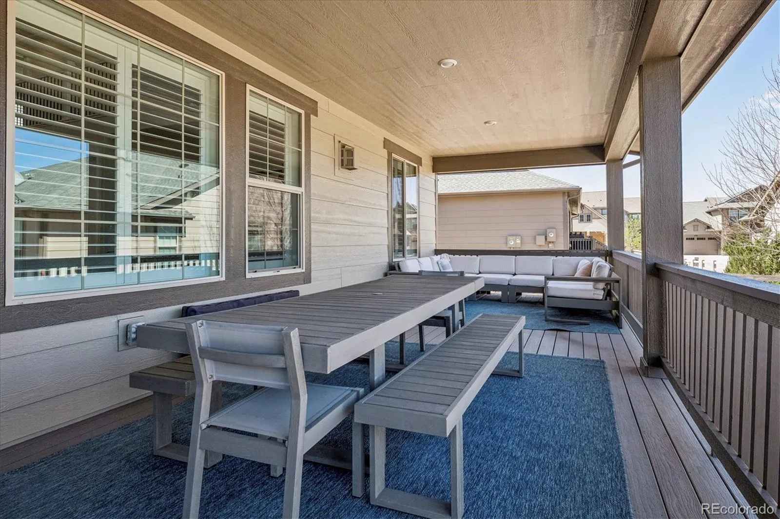 Immaculate 5 bedroom, 4 1/2 bath home in the desirable Sterling Ranch neighborhood. This home offers all of the upgrades you would ever want, including quartz countertops, “looks like wood” tile flooring on the main floor, shutters on all the windows, and upgraded stainless steel appliances. The carpet in the bedrooms, stairs, and upstairs hallways is new in early April. The expansive primary suite has beautiful views of the front range, a luxurious 5-piece bathroom with quartz countertops and tile floors, and a large walk-in closet. The secondary bedrooms upstairs each have walk-in closets and access to a private bathroom, with one of the bedrooms having an ensuite full bath and the other two bedrooms share a jack-n-jill full bath with separate sinks in their bedrooms outside of the bathroom. The main floor bedroom also has an ensuite full bath and new carpet. The home office workspace is impressive with room for multiple desks and work stations. If you need extra workspace, the basement office will provide you ample space for whatever office equipment you may desire. When it is time to relax, the outdoor living space can’t be beat. The covered deck provides a quiet place to enjoy the evening sunsets over the mountains while the large patio is a great gathering place around the firepit. If you are a gardener, the 4 planting boxes give you plenty of opportunity to exercise your green thumb.