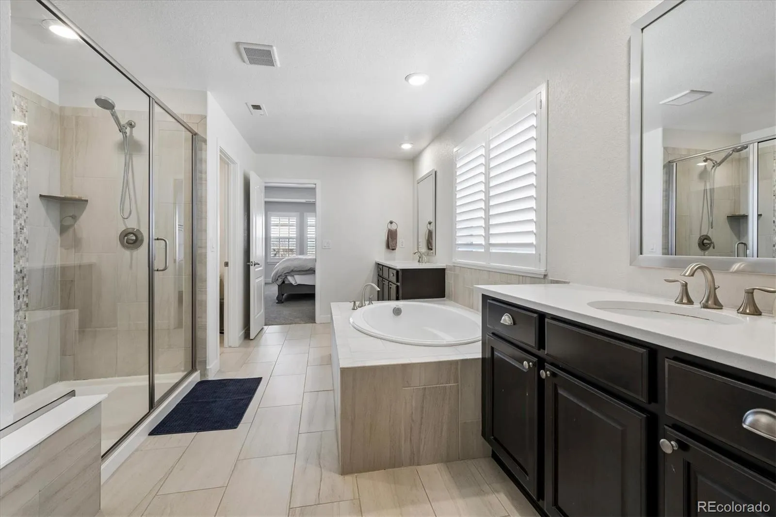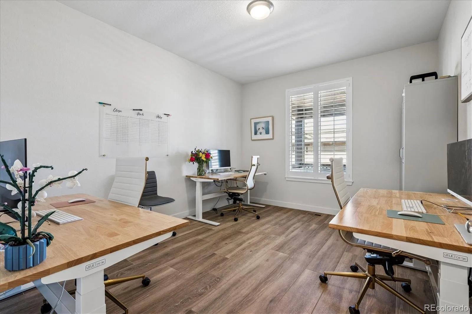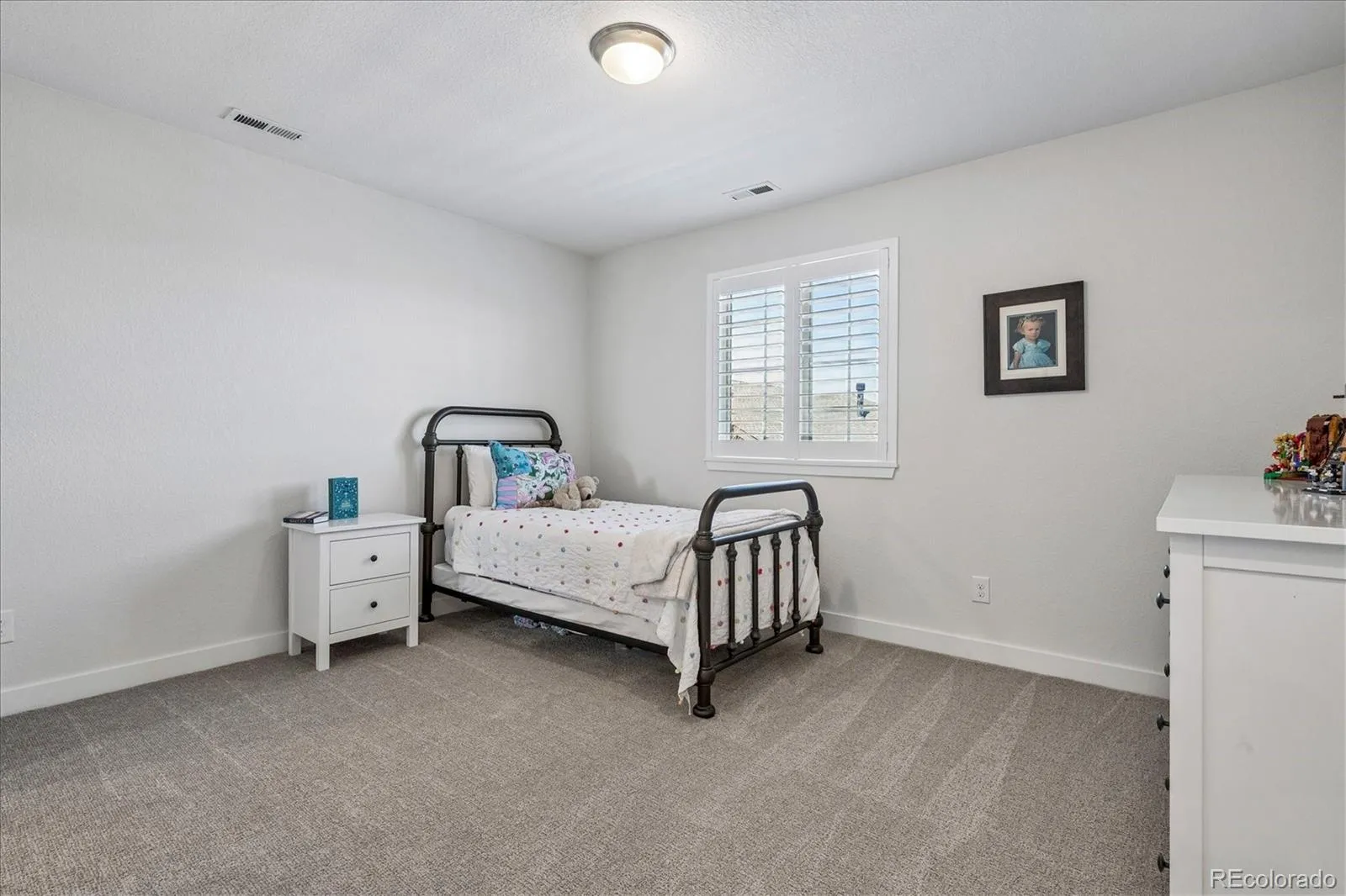 Immaculate 5 bedroom, 4 1/2 bath home in the desirable Sterling Ranch neighborhood. This home offers all of the upgrades you would ever want, including quartz countertops, “looks like wood” tile flooring on the main floor, shutters on all the windows, and upgraded stainless steel appliances. The carpet in the bedrooms, stairs, and upstairs hallways is new in early April. The expansive primary suite has beautiful views of the front range, a luxurious 5-piece bathroom with quartz countertops and tile floors, and a large walk-in closet. The secondary bedrooms upstairs each have walk-in closets and access to a private bathroom, with one of the bedrooms having an ensuite full bath and the other two bedrooms share a jack-n-jill full bath with separate sinks in their bedrooms outside of the bathroom. The main floor bedroom also has an ensuite full bath and new carpet. The home office workspace is impressive with room for multiple desks and work stations. If you need extra workspace, the basement office will provide you ample space for whatever office equipment you may desire. When it is time to relax, the outdoor living space can’t be beat. The covered deck provides a quiet place to enjoy the evening sunsets over the mountains while the large patio is a great gathering place around the firepit. If you are a gardener, the 4 planting boxes give you plenty of opportunity to exercise your green thumb.