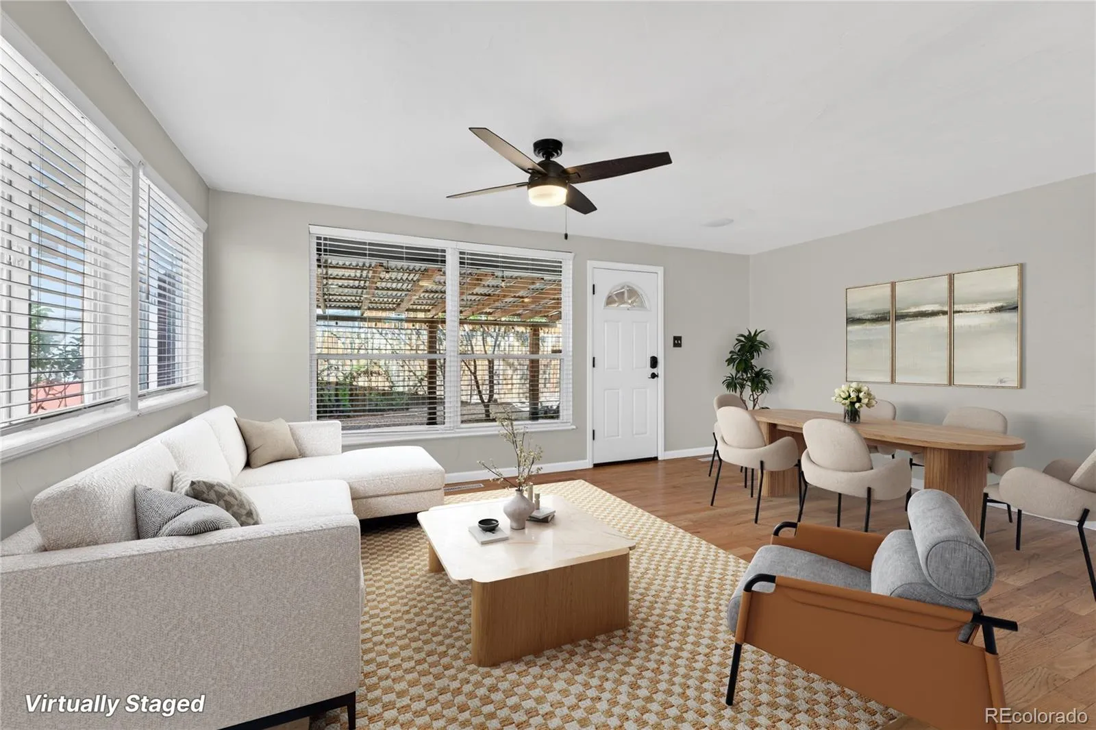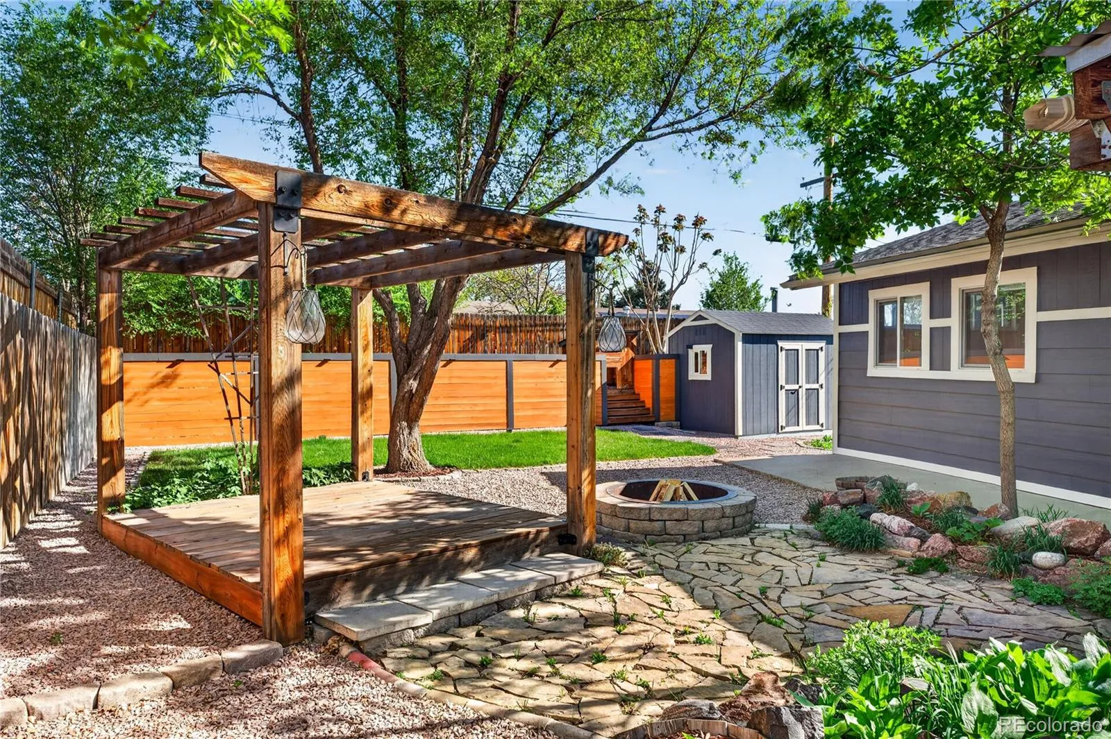 Charming ranch-style home nestled in a quiet, friendly community known for its great neighbors and peaceful atmosphere. This inviting home offers a bright, open floor plan with a spacious living room that flows seamlessly into a large kitchen, creating an ideal space for everyday living and entertaining. Beautiful hardwood floors extend through the living room and all three bedrooms, adding warmth and character throughout. The kitchen features ample warm wood cabinetry, generous counter space, and a center island with additional bar-height seating—perfect for casual meals or gathering with friends and family. Just off the living room, a door opens to an expansive covered patio where soft string lights create a relaxing ambiance, making it a perfect setting for outdoor dining or unwinding at the end of the day. The backyard is a true private oasis, thoughtfully designed with mature trees that provide shade, privacy, and a serene natural feel. Enjoy Colorado summers under the large covered patio or beneath the newer pergola, surrounded by beautifully maintained xeriscaping for low-water, easy-care living. Garden enthusiasts will appreciate the multiple planter beds ready for spring planting, along with extra space for a larger garden. A spacious shed offers excellent storage for tools and outdoor gear, and a built-in dog house adds a thoughtful touch for pet lovers. Recent updates include the pergola (5 years ago), landscaping and xeriscaping (2 years ago), and a newer roof (2 years ago), offering added value and peace of mind. Conveniently located just a few blocks from Sherrelwood Park, with quick access to Highway 36 and I-25, making commutes to Boulder or downtown Denver fast and easy. Welcome home!