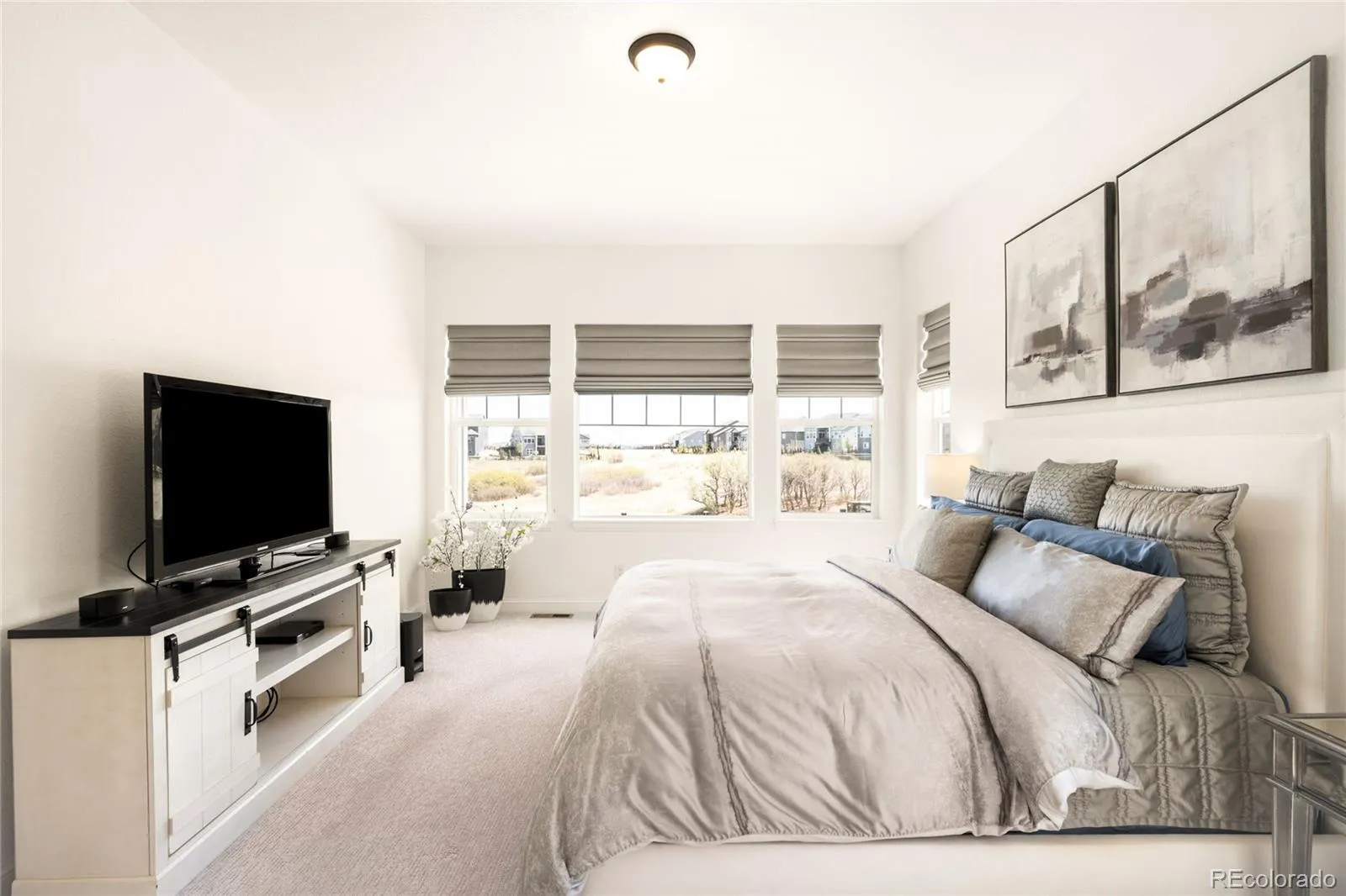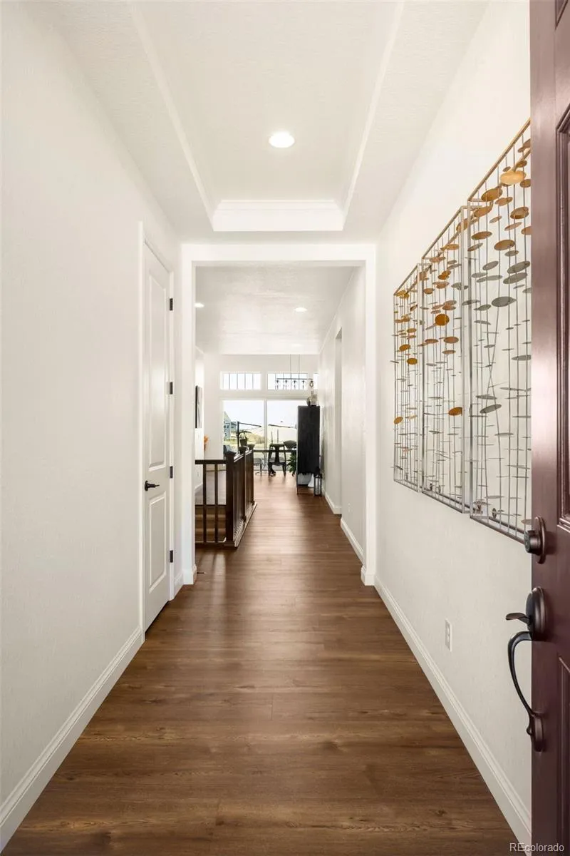 Exceptional ranch-style living unfolds on one of the most coveted homesites in the Mancata community. This Taylor Morrison residence showcases one of the builder’s most celebrated floorplans, elevated by rare lot positioning and thoughtful, high-quality upgrades. Designed for effortless main-level living, the home’s layout is both functional and refined, enhanced by structural upgrades selected during the original build. Highlights include a 4-car garage with a tandem extension, 8-foot doors throughout, elegant crown molding, and a tray ceiling that adds architectural interest. Since completion, the sellers have invested approximately $30,000 in curated improvements that further elevate the home, including an extended patio and walkway, custom window treatments, tinted windows, epoxy-coated garage flooring, and upgraded shower features in both the primary and guest baths. With only one direct neighbor, open space alongside, and a scenic ravine with a nature trail just beyond the backyard, the setting offers a level of privacy and natural connection seldom found in the community.