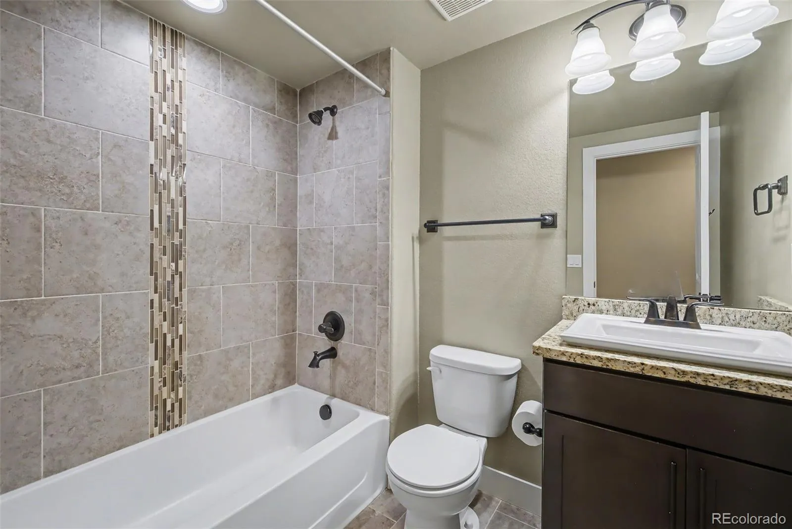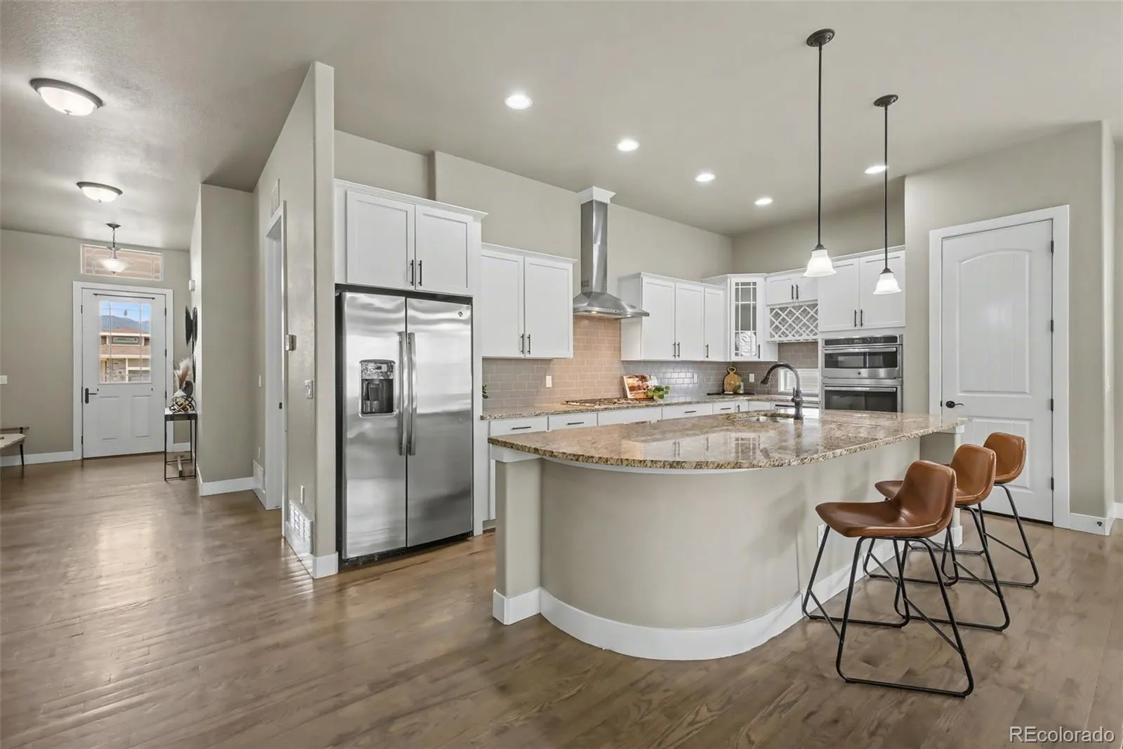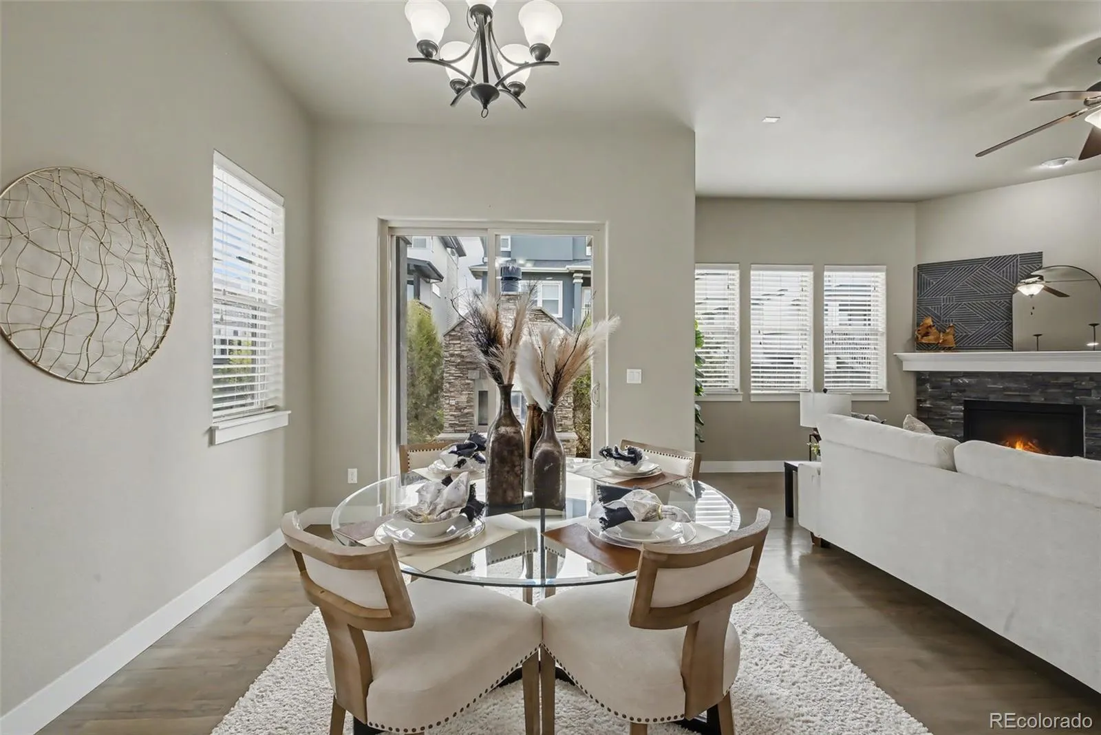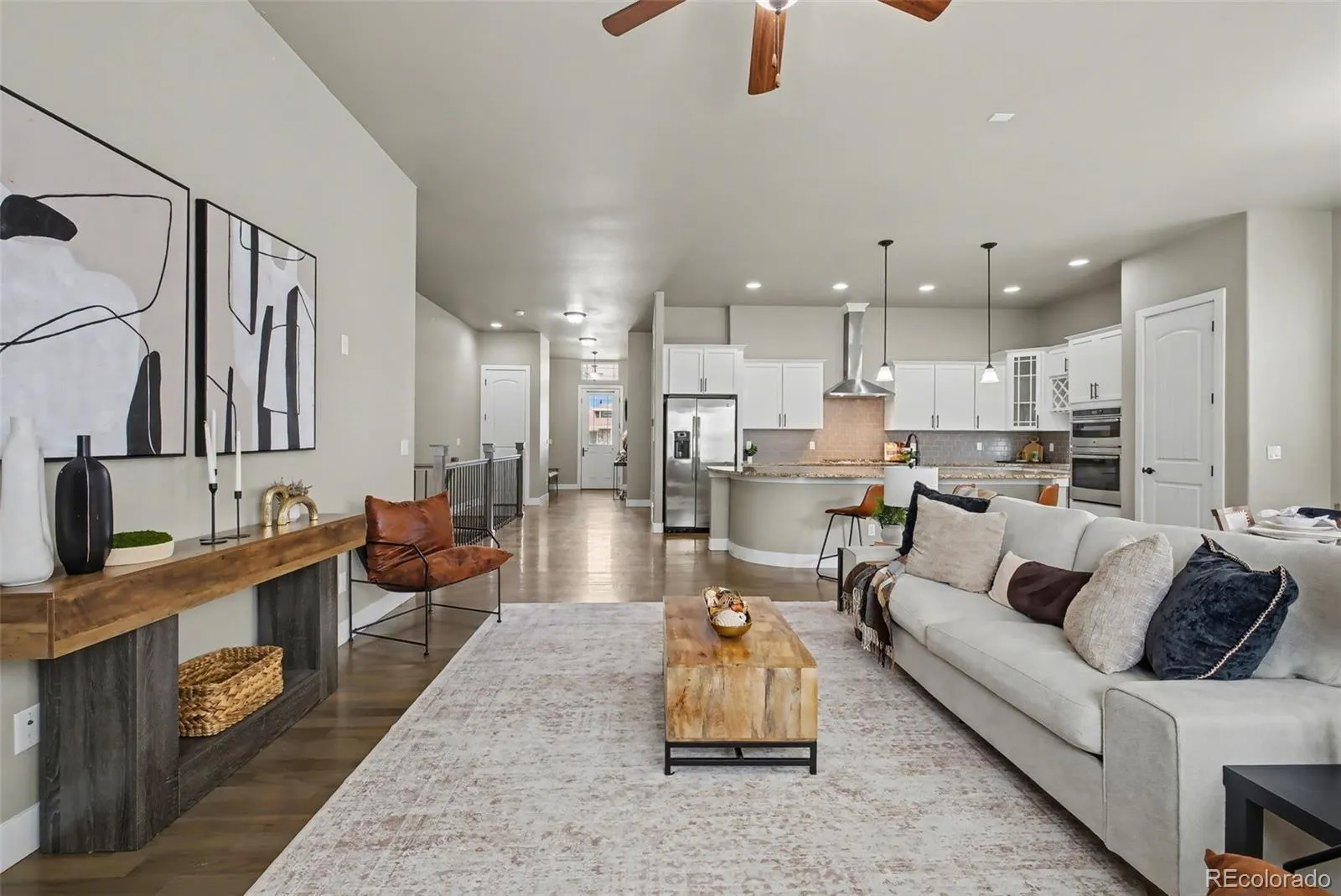 Welcome to this beautifully designed ranch-style home in the highly desirable community of The Farm, offering modern living, scenic views, and access to exceptional amenities. With 4 bedrooms, 3 bathrooms, and over 3,100 finished square feet, this home provides a spacious and functional layout for everyday living and entertaining. The main level features an open-concept design with 9-foot ceilings, natural wood flooring, and a gas fireplace, creating a warm and inviting atmosphere. The gourmet kitchen is thoughtfully designed with granite countertops, a large island, built in wine fridge, breakfast bar, pantry, and gas cooking, flowing seamlessly into the dining area and family room with walk-out access. The primary suite offers a private retreat featuring a tray ceiling with a walk-in closet and a luxurious 5-piece bath featuring a soaking tub, double vanity, and separate shower. A second main-level bedroom and convenient laundry room complete the main floor. The finished basement expands your living space with a large recreation room, two additional bedrooms, and a full bathroom—perfect for guests or multi-generational living as well as an unfinished room for storage, hobbies, or a game room. Situated on a level, fenced lot with mountain views, this home also includes central A/C and a two-car attached garage with added storage at the rear. Residents of The Farm enjoy access to outstanding amenities including a clubhouse, pool, fitness center, pond, parks, and trails, all within Academy District 20 and close to shopping, dining, and I-25. This home offers the perfect combination of space, comfort, and community living.