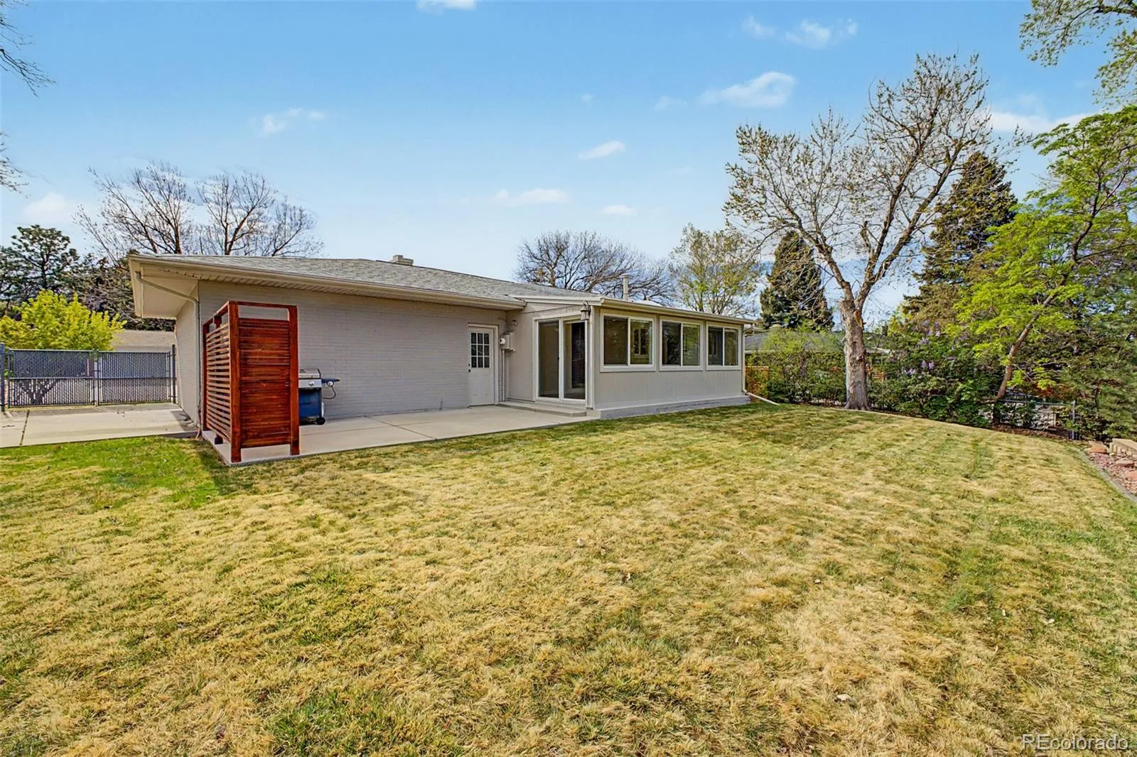 Welcome to 8413 E Kenyon, a meticulously maintained brick ranch that blends timeless character with thoughtful modern updates. From the moment you arrive, the standout curb appeal sets the tone for what’s inside.This 4-bedroom, 3-bath home offers a functional, easy-flow layout. The main level features three generously sized bedrooms, a bright and inviting living room, and a well-appointed kitchen with ample counter space. A dedicated home office and a spacious addition create a second living area, ideal for relaxing or entertaining. The finished basement adds valuable flexibility with a cozy family room featuring a fireplace, an additional bedroom and bathroom, and a laundry area. Step outside to a backyard that truly stands out—private, tree-lined, and perfect for enjoying Colorado evenings. A two-car garage adds everyday convenience. Perfectly located between Denver Tech Center and Cherry Creek, with easy access to Cherry Creek Reservoir and just minutes from Whole Foods.