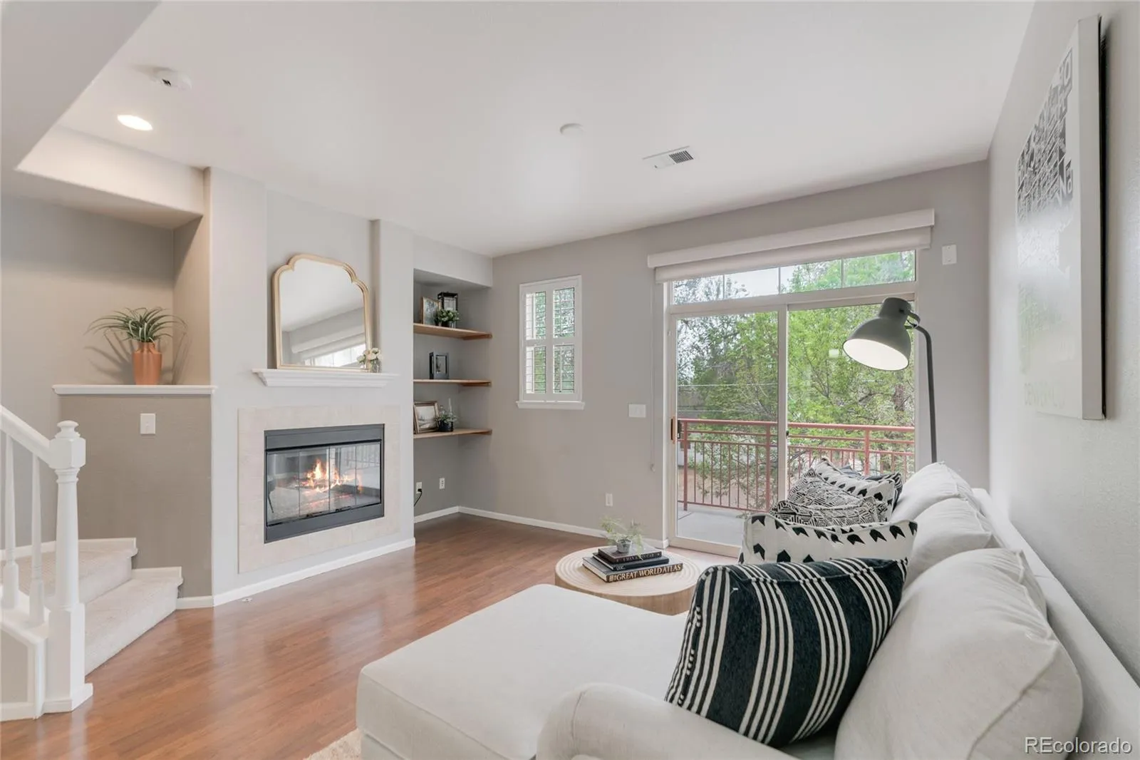 From the moment you enter, you’re welcomed by a light-filled, OPEN-CONCEPT design, anchored by a warm and inviting living room with a cozy gas FIREPLACE and access to a PRIVATE BALCONY, an ideal setting for morning coffee or evening unwinding. The space flows seamlessly into the dining area and a beautifully UPDATED, EAT-IN KITCHEN, featuring STAINLESS STEEL appliances, generous cabinetry, and expansive QUARTZ COUNTER space, designed for both everyday living and effortless entertaining. You will also appreciate the versatile space off the kitchen, perfectly suited for a home office, fitness area, or reading nook.