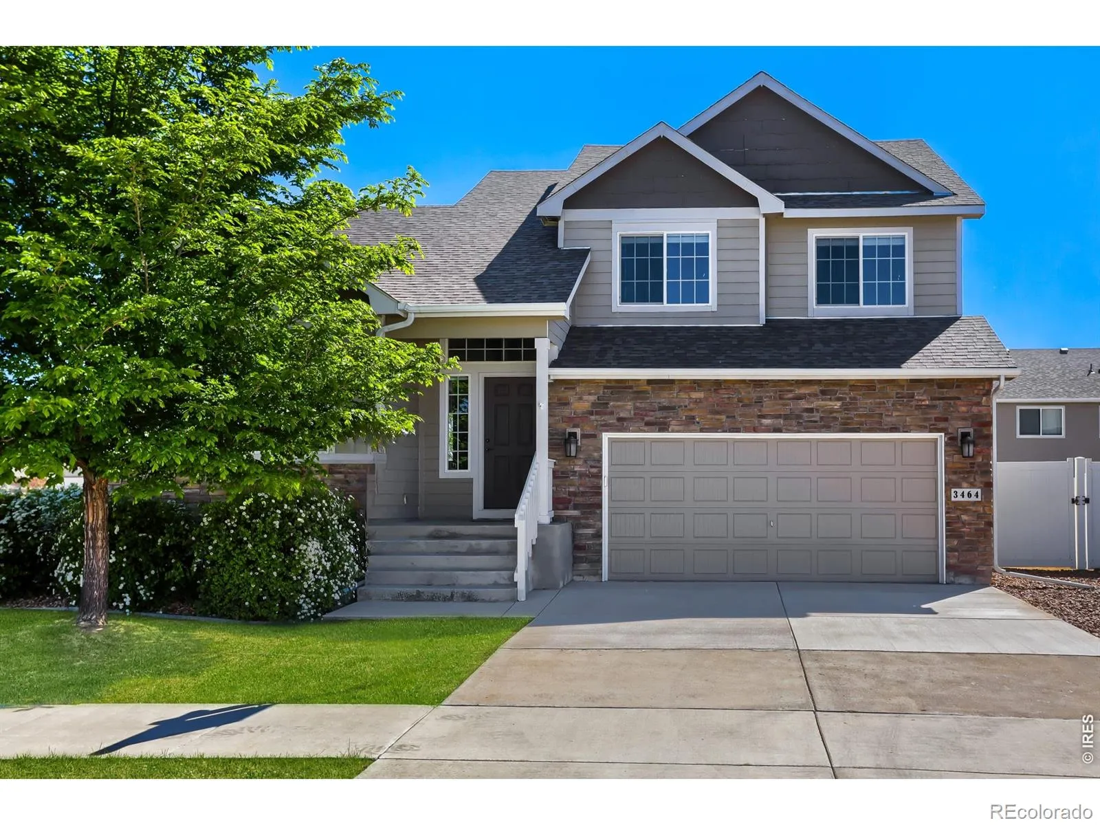 Tucked into a charming neighborhood just minutes from downtown Berthoud, this inviting home offers beautiful mountain and foothill views-and no metro tax district. With 3 bedrooms and over 2,400 square feet, this contemporary two-story home features a spacious living and dining area that flows seamlessly into a bright, well-appointed kitchen, along with a generous family room that opens directly to the backyard. Upstairs, you’ll find three spacious bedrooms, including a luxurious primary suite, convenient laundry, and ample closet space. The unfinished basement and 3-car tandem garage–with 220V service, provide abundant storage and excellent potential for additional bedrooms, recreation space, or a workshop. The kitchen is equipped with stainless steel appliances, a gas range, pantry, and breakfast bar-perfect for both everyday living and entertaining. Step outside to a fenced backyard with a concrete patio, offering a private retreat with easy access to the nearby pocket park. Move right in and enjoy fresh interior paint, along with a newly poured front driveway and walkway. Ideally located near the renowned TPC Golf Course and close to parks, trails, restaurants, and schools in both Berthoud and south Loveland, this home blends comfort, convenience, and Colorado lifestyle.