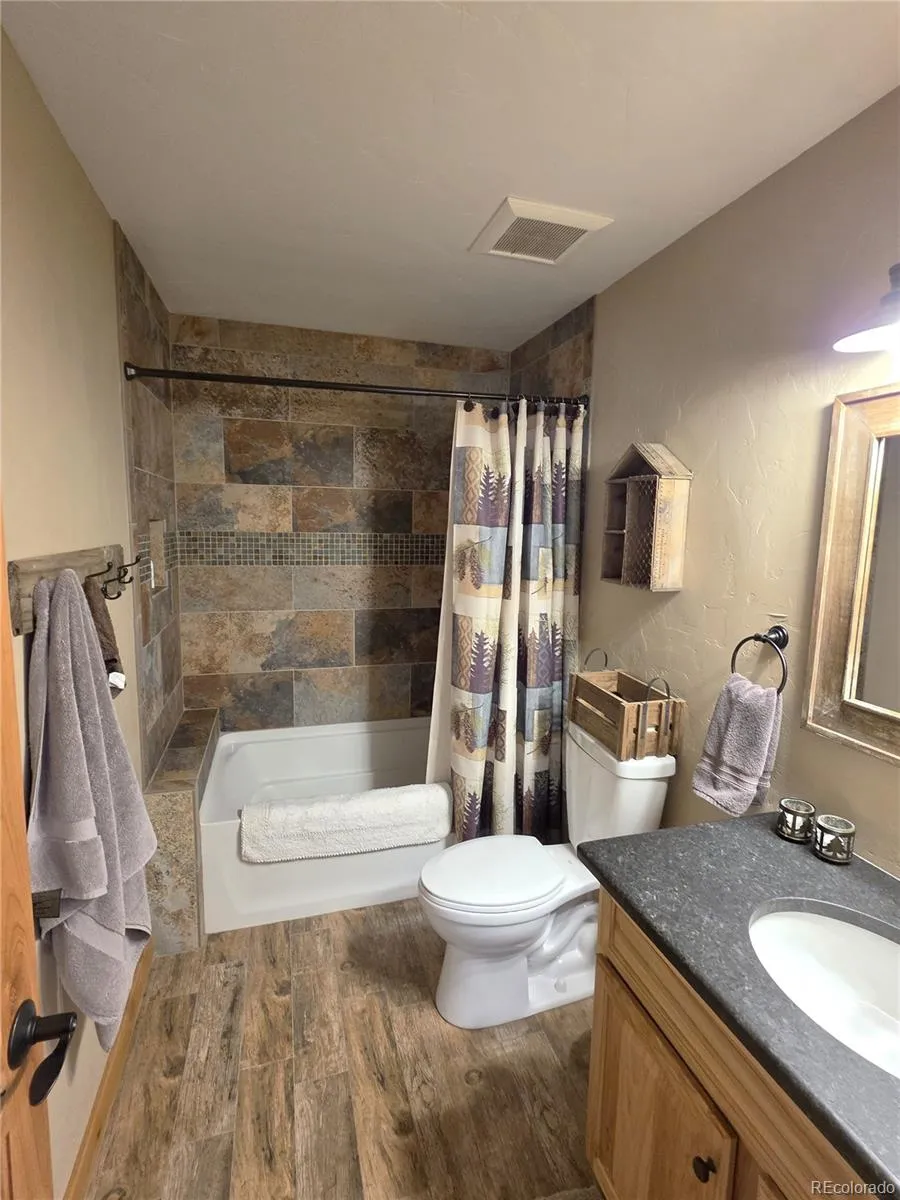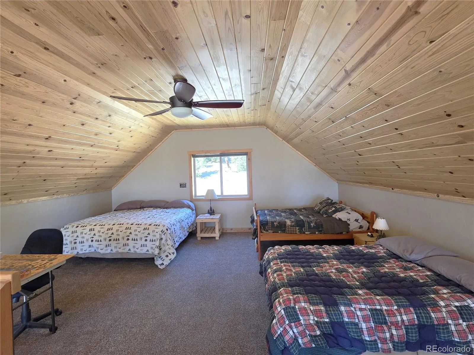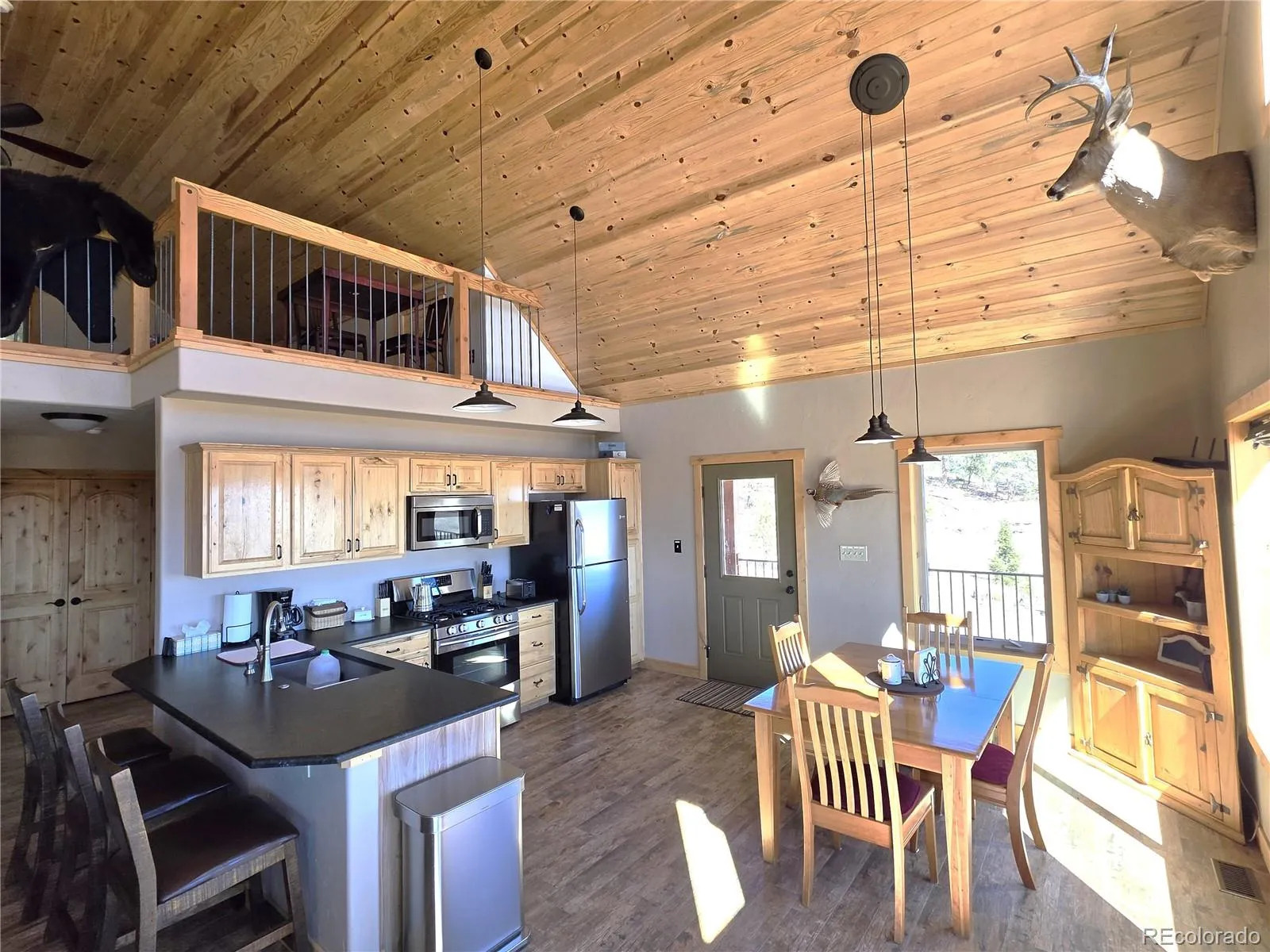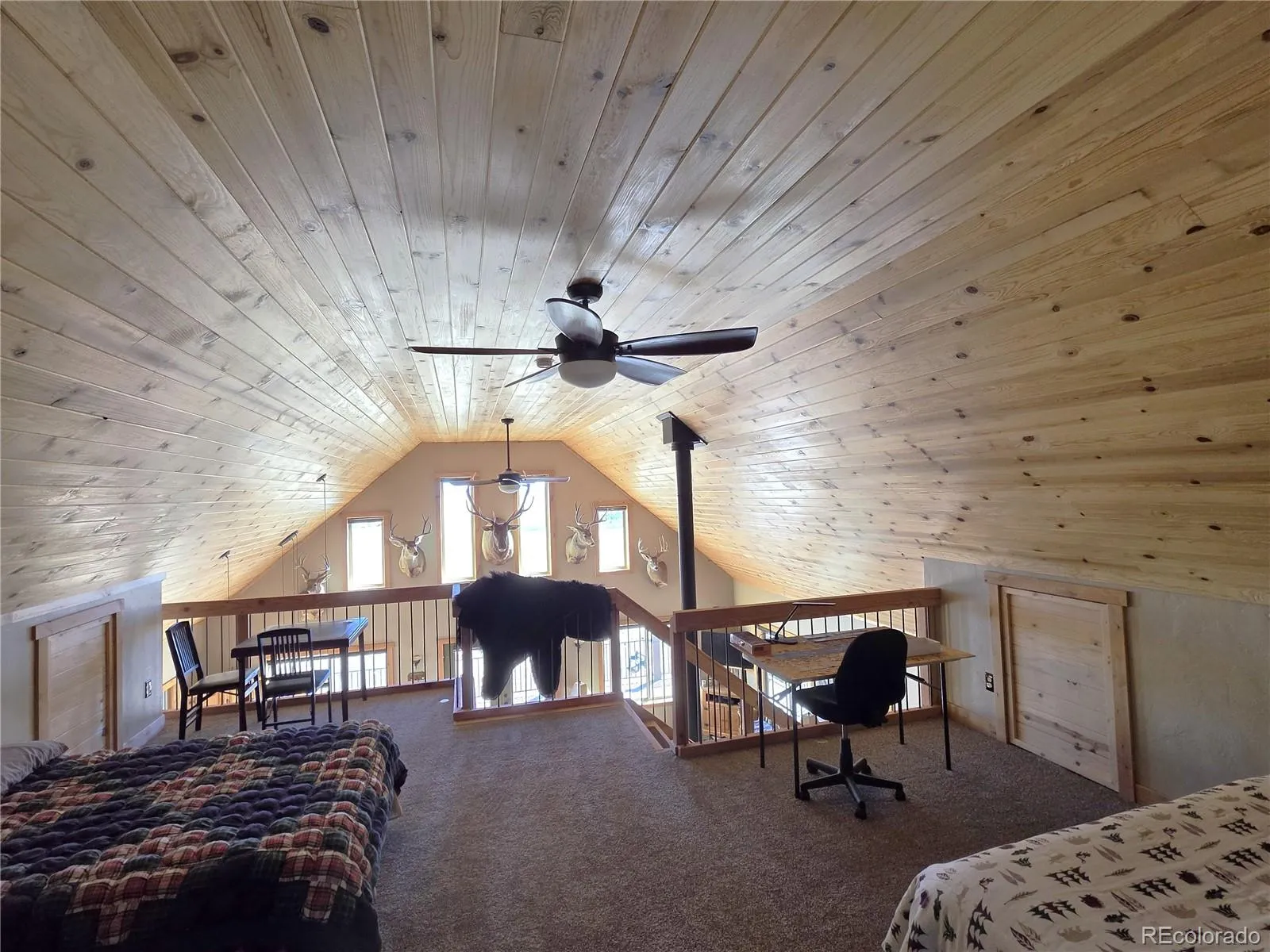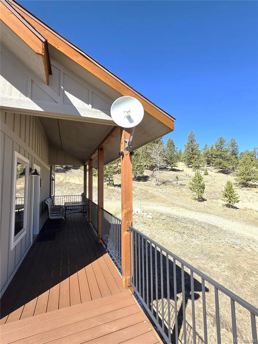 Welcome to 1007 Hereford Drive—an off-grid recreational home located in the highly desirable Ranch of the Rockies Subdivision. Tucked away near the back of the subdivision, this property offers exceptional privacy and direct access to a lightly used section of National Forest, making it a rare find for those seeking true Colorado mountain seclusion. Ideal as a seasonal getaway, hunting basecamp, or off-grid retreat. This off-grid mountain cabin-style home offers 1,544 square feet of well-designed main living space, featuring 2 bedrooms and bathrooms, along with a spacious loft that provides excellent flexibility for additional sleeping quarters, a home office, or guest accommodations. The open-concept main living area seamlessly connects the kitchen and living room, with multiple walk-outs leading to a wraparound deck that expands the living space outdoors and takes full advantage of the surrounding mountain setting. Comfort is ensured year-round with a propane forced-air heating system, complemented by a wood-burning stove in the living room that delivers that classic mountain cabin ambiance. The kitchen is well-appointed with granite countertops and generous space for a full dining setup, making it both functional and inviting for gatherings. The lower level adds approximately 500 square feet of finished living space, featuring large French doors that bring in natural light and enhance usability. The remaining basement area serves as storage, workshop space, and utilities, providing practical functionality for full-time or recreational use. A well-designed solar power system supports the home and is fully expandable, with capacity for additional battery storage and solar panels, allowing for future energy independence. The property also includes a 2,600-gallon cistern, providing a reliable off-grid water storage solution. The home has also operated successfully as a seasonal hunting lodge, creating potential for supplemental income