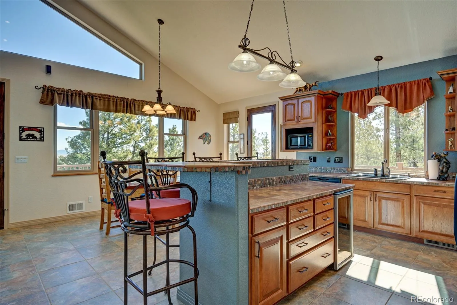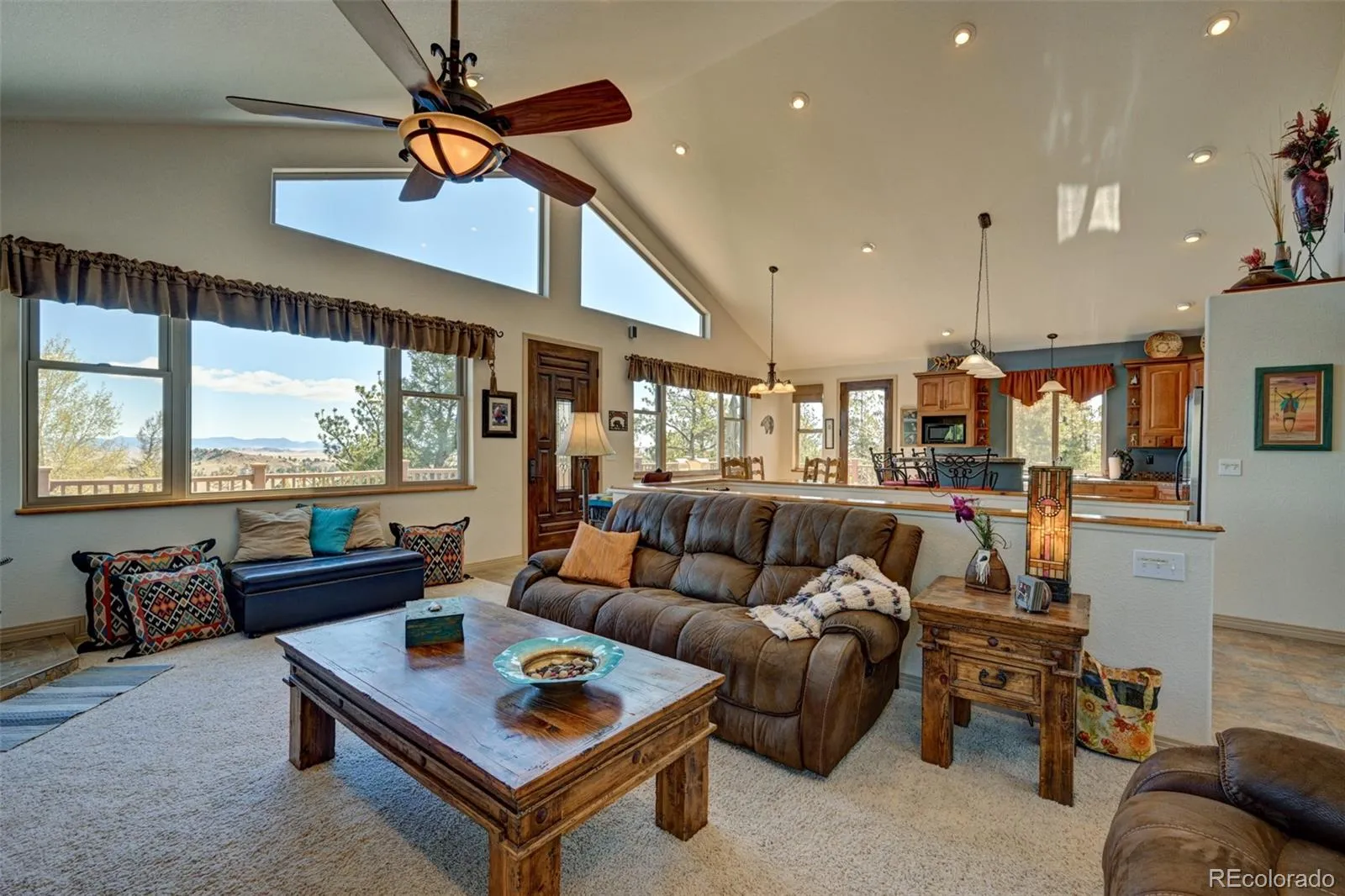 Beautiful furnished home hidden in the trees with everything you are looking for! Stucco exterior, metal roof, and composite decking provide for low maintenance and longevity. The kitchen has hardwood cabinets, island, stainless steel appliances, and tile counters along with a separate wine fridge. You will notice the large, vaulted ceilings and the cozy propane heating stove in the living room. The bedrooms have an abundance of natural light and ceiling fans for comfort. The jetted tub in the main bathroom is great for relaxing. The forced air propane furnace is efficient, and you will love the built-in insulated 2 car garage and workshop area. Enjoying the outdoor space is easy with all of the aspen and pine trees that cover this 2.65-acre lot. There is an abundance of wildlife that frequently roams the property including mule deer, bear, bobcat, rabbits, squirrels, and lots of birds. Ranch of the Rockies provides amenities like a pavilion, RV storage & dump station, trash service, horse pasturing, dog run, on-site fire protection, Park County year-round road maintenance, and a 22-acre private reservoir that is stocked with trout. Easy access to both Colorado Springs and Denver. Buena Vista is 15 miles down the road from the top of Trout Creek Pass. This is a true legacy property that has everything you are looking for. Come check it out.”