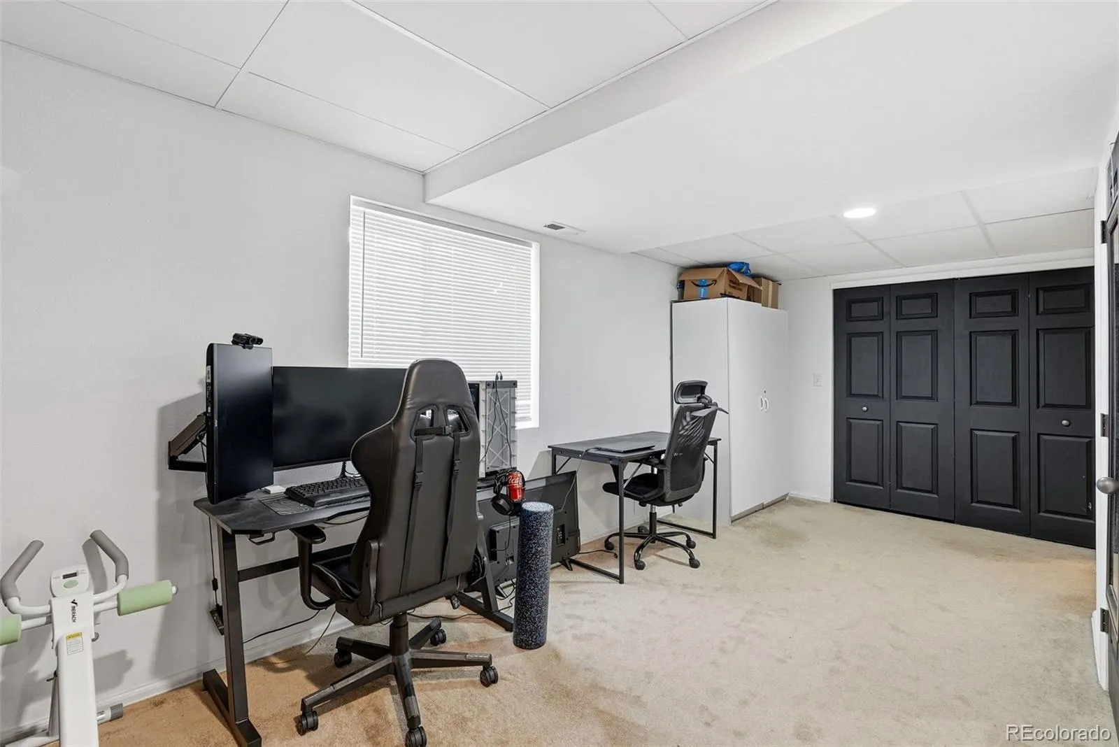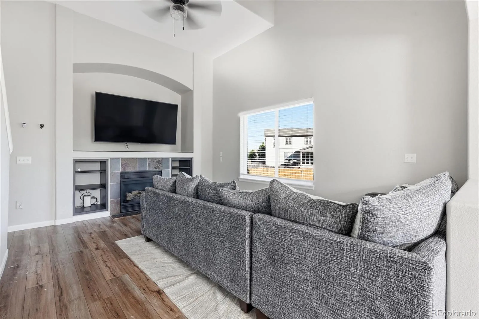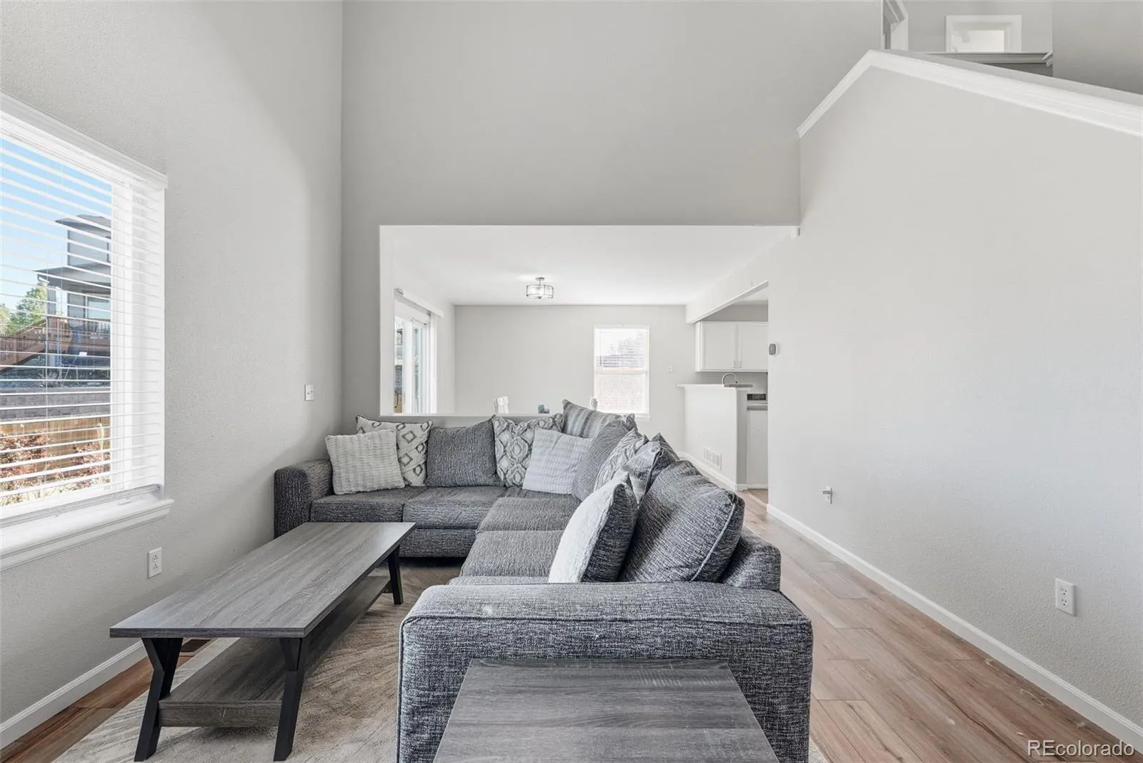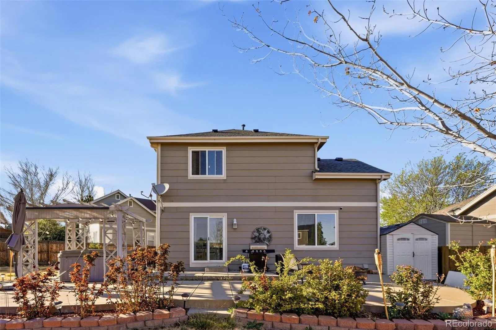 Updated home located on a quiet cul-desac within the Cherry Creek School District boundary. The kitchen features white cabinetry, stainless steel appliances, and luxury vinyl plank flooring, with an adjacent dining area offering access to the backyard through a sliding glass door. The family room includes vaulted ceilings and a gas fireplace, creating an open and functional living space. Recent interior improvements include updated paint, carpet, doors, trim, lighting, and window coverings. The primary bedroom offers a walk-in closet and a remodeled bathroom with updated flooring, fixtures, and finishes. An upstairs loft provides flexible space suitable for a variety of uses such as a home office or study area. The finished basement adds additional living space, including a secondary living area with an electric fireplace, a nonconforming bedroom, and a bathroom. Major system updates include a roof replacement in 2023 and a recently installed furnace, air conditioning system, and humidifier with an active warranty. Additional improvements include updates to the sprinkler system with a new control unit and components. The backyard includes a patio area, hot tub, and gazebo, offering outdoor living potential. The attached garage includes built-in workbench and cabinet storage. Additional features include a recently replaced garage door opener, washer and dryer, and a hardwired security system (service subscription may be required).