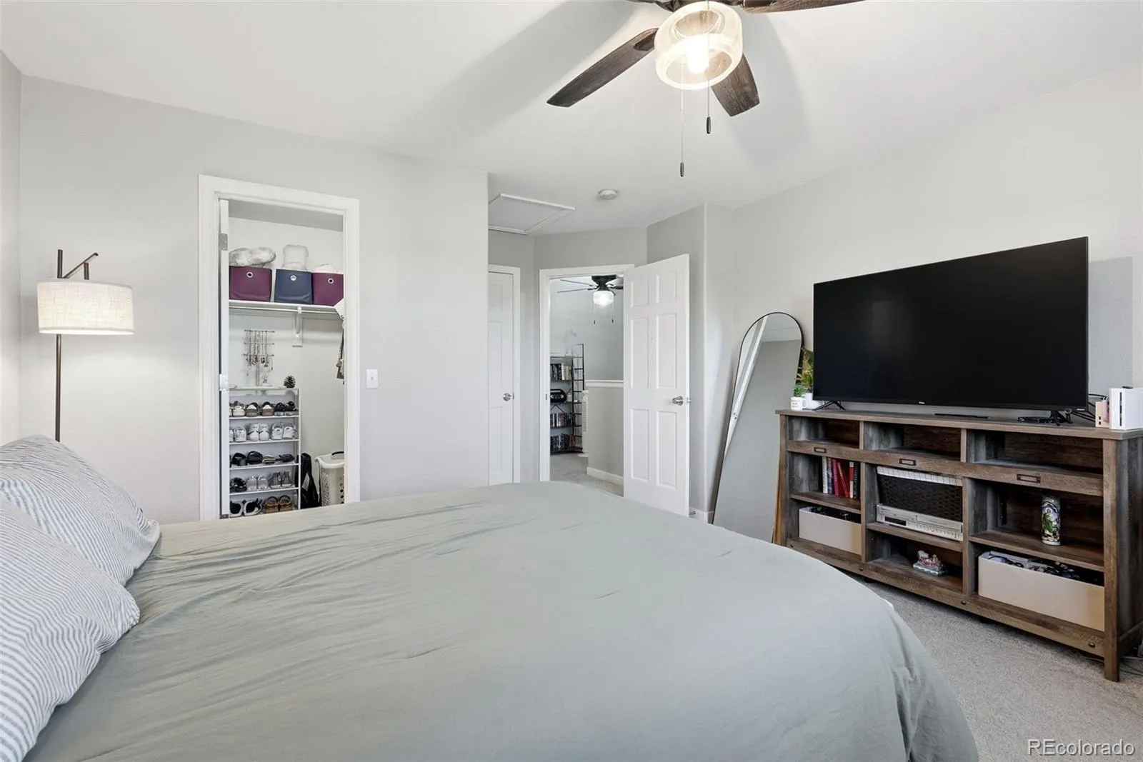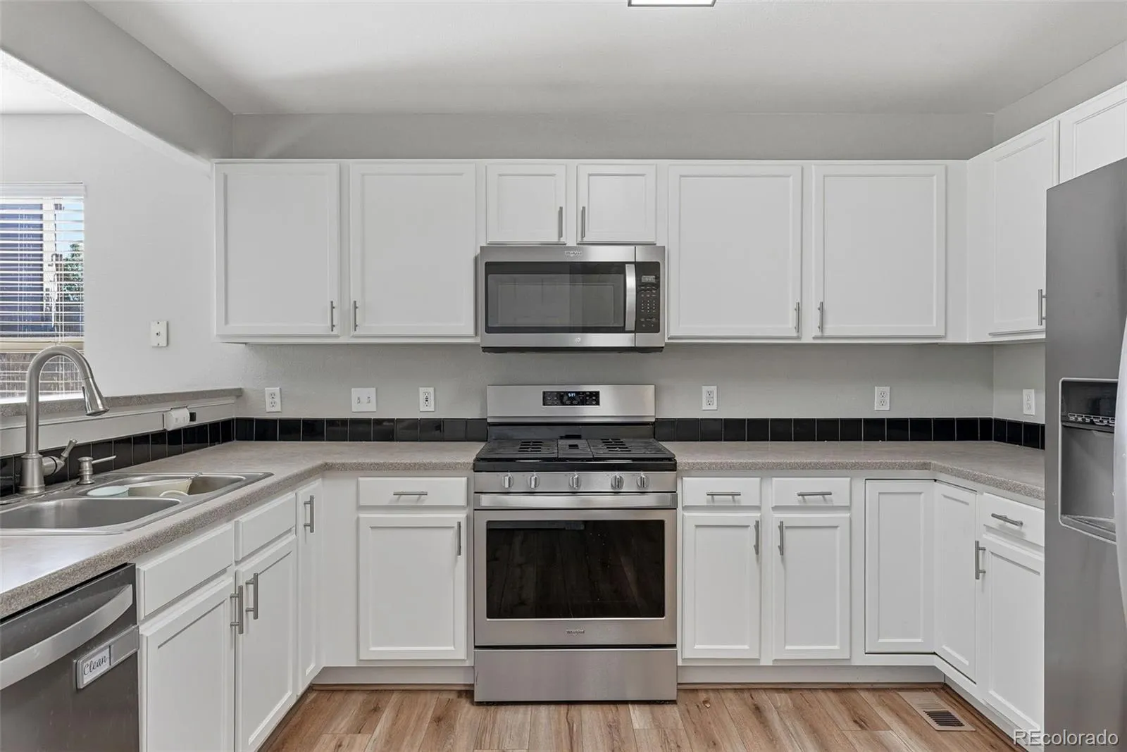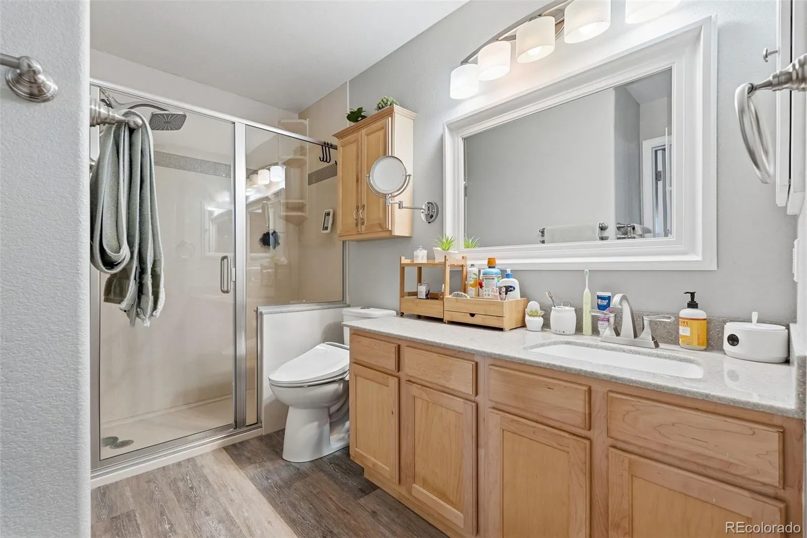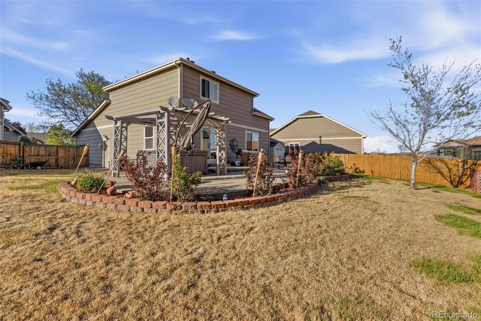 Updated home located on a quiet cul-desac within the Cherry Creek School District boundary. The kitchen features white cabinetry, stainless steel appliances, and luxury vinyl plank flooring, with an adjacent dining area offering access to the backyard through a sliding glass door. The family room includes vaulted ceilings and a gas fireplace, creating an open and functional living space. Recent interior improvements include updated paint, carpet, doors, trim, lighting, and window coverings. The primary bedroom offers a walk-in closet and a remodeled bathroom with updated flooring, fixtures, and finishes. An upstairs loft provides flexible space suitable for a variety of uses such as a home office or study area. The finished basement adds additional living space, including a secondary living area with an electric fireplace, a nonconforming bedroom, and a bathroom. Major system updates include a roof replacement in 2023 and a recently installed furnace, air conditioning system, and humidifier with an active warranty. Additional improvements include updates to the sprinkler system with a new control unit and components. The backyard includes a patio area, hot tub, and gazebo, offering outdoor living potential. The attached garage includes built-in workbench and cabinet storage. Additional features include a recently replaced garage door opener, washer and dryer, and a hardwired security system (service subscription may be required).