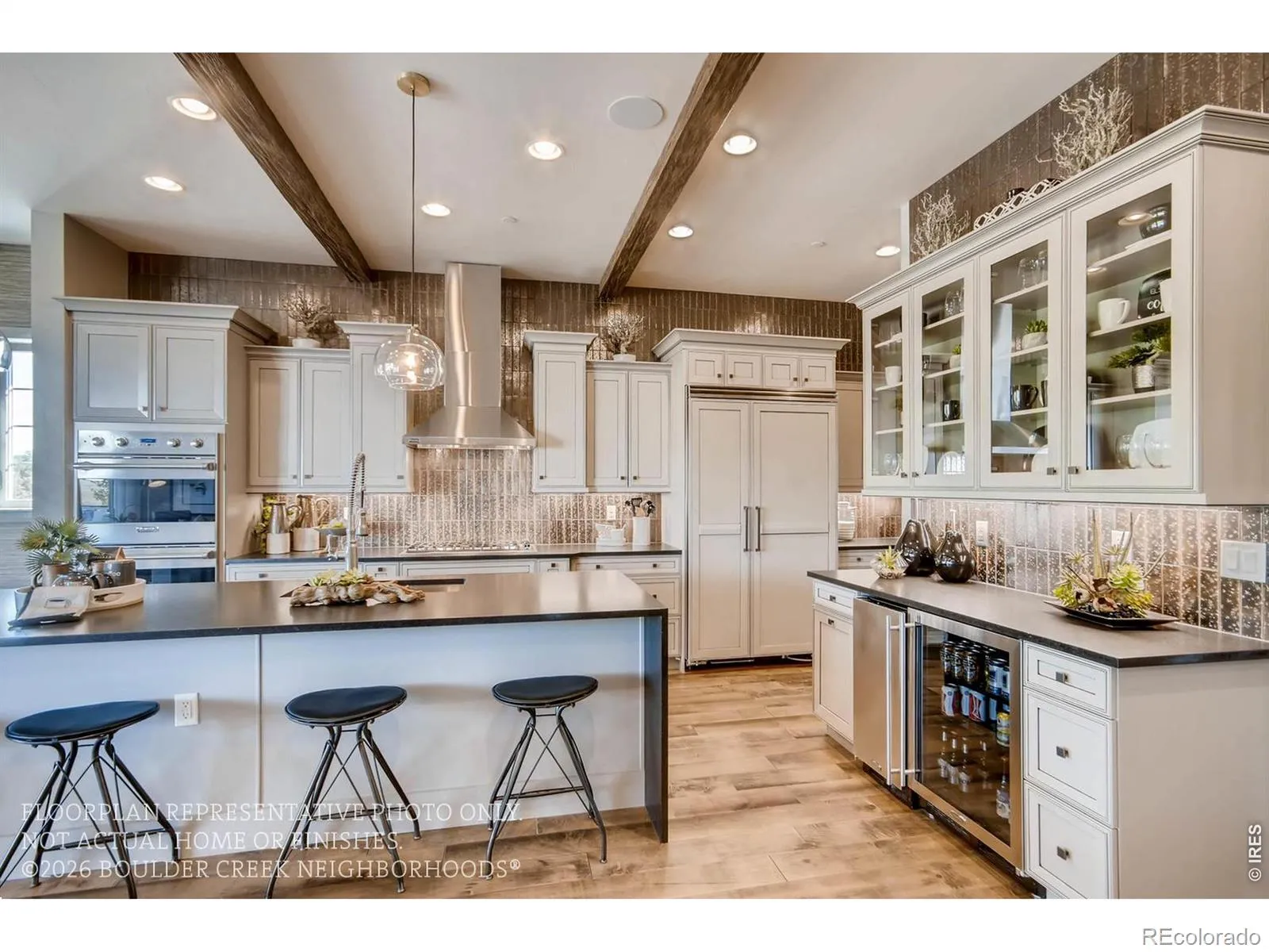 Come see this lower maintenance ranch home with 3 private suites! This home can be summed up with two words. Entertainer’s Dream! Whether it’s your friends, family, or your new neighbors, your new entertainers kitchen is going to be the envy of your guests. With a built-in beverage center with a separate ice maker, Thermador appliance package with a48″ paneled/built-in fridge, two dishwashers, double ovens, and drawer microwave, you’ll quickly fall in love with the kitchen of your dreams. After dinner, gather your friends on the oversized 400sqft patio, or the massive rec room in your finished lower level! Don’t forget the 4th Bedroom downstairs that features as yet another bedroom suite with walk in closet and private bath. Learn more about Boulder Creek’s newest patio home neighborhood in Broomfield but don’t be surprised when you are hosting this get-togethers in your new home! This small enclave of only 21 homes will go quickly so don’t wait! Set up a time to come out and learn more about how Boulder Creek is making homeownership easy again. Photos of Model offsite. Move in July 2026.