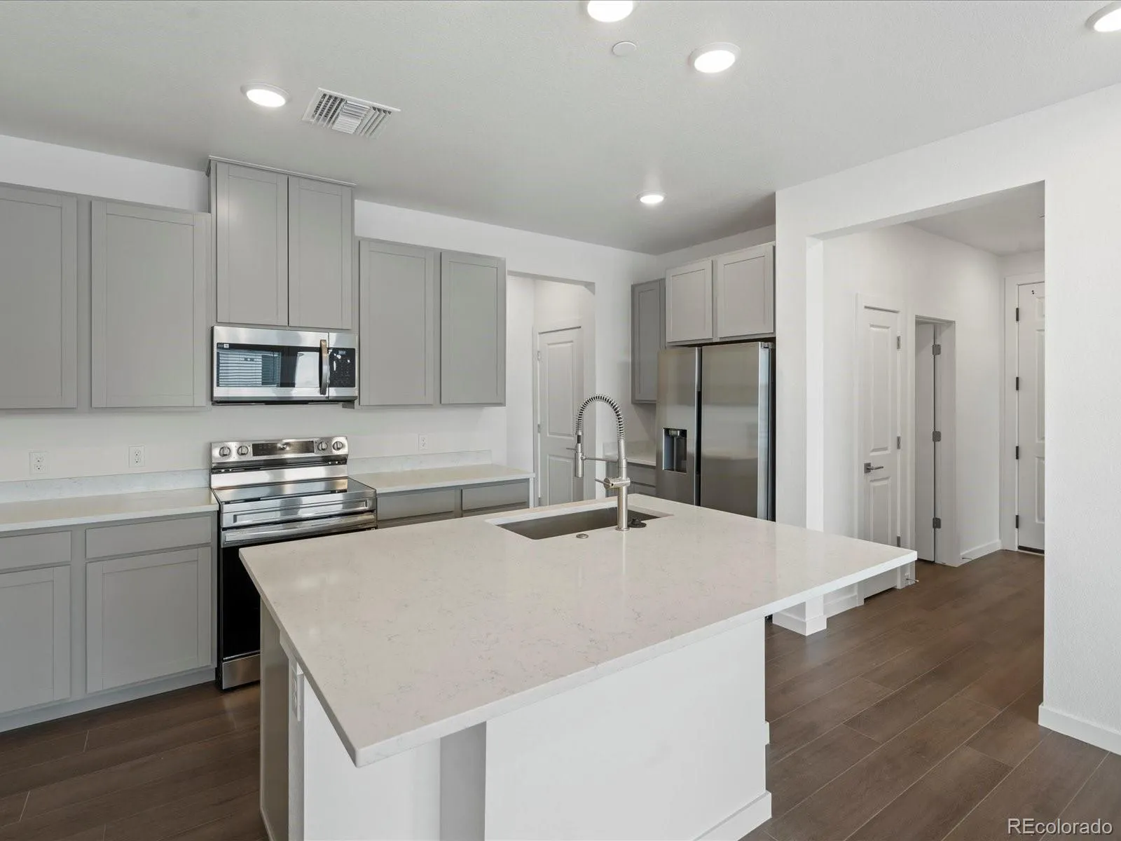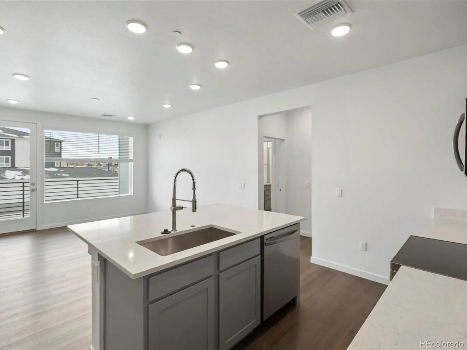 Top-floor Vyktorea II condo in Gateway Commons offering 3 bedrooms and 2 bathrooms with a bright, open-concept layout designed for comfortable everyday living. Ideally located in Denver near Denver International Airport, Gaylord Rockies Resort, I-70, and E-470, this home provides convenient access to major employment hubs, travel, and entertainment. The spacious kitchen features quartz countertops, center island seating, Samsung stainless steel appliances, Kohler fixtures, soft-close cabinetry, and hard-surface flooring, seamlessly connecting to the light-filled great room and private south-facing patio that brings in abundant natural light. The primary suite offers a walk-in closet and a spa-inspired bathroom with dual vanities and a large walk-in shower. Two additional bedrooms, a full bathroom, and a dedicated laundry area provide flexibility for guests, home office space, or additional living needs. Located within the Gateway Commons community and close to Waller Elementary, Trevista at Horace Mann Middle School, and Ridge View Academy High School, this low-maintenance home combines modern finishes with easy access to DIA, Gaylord Rockies, and Denver’s major commuter routes.