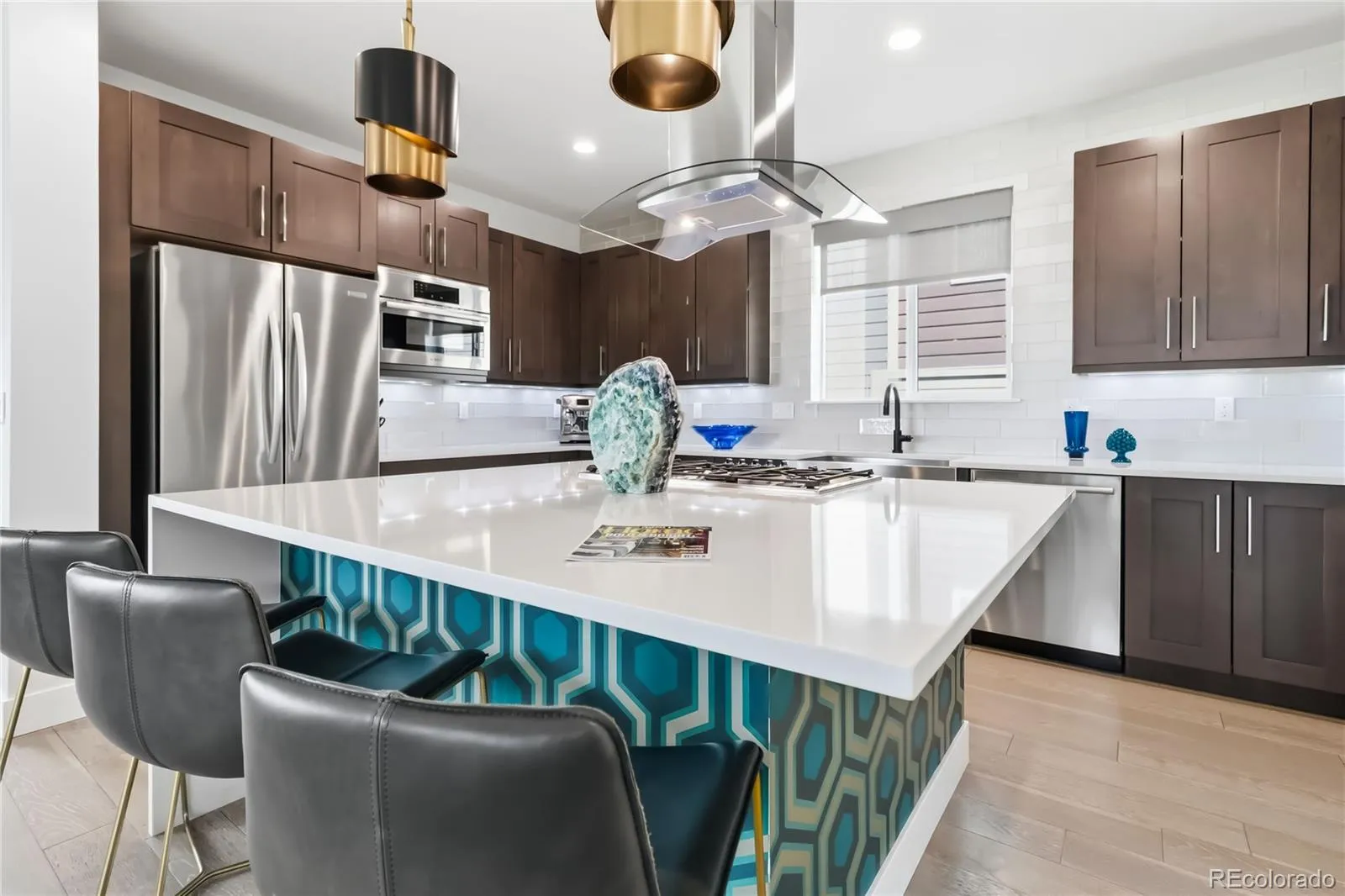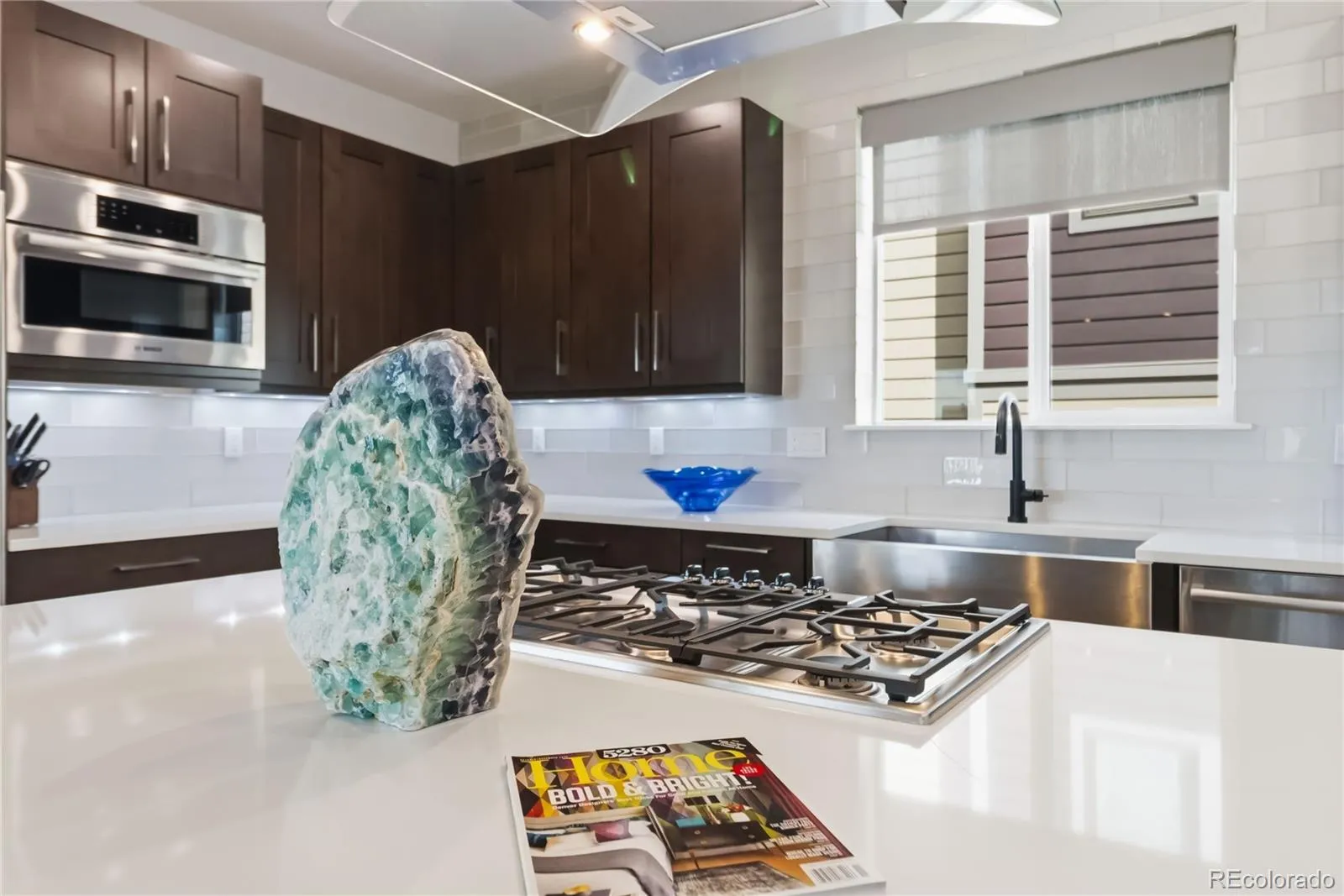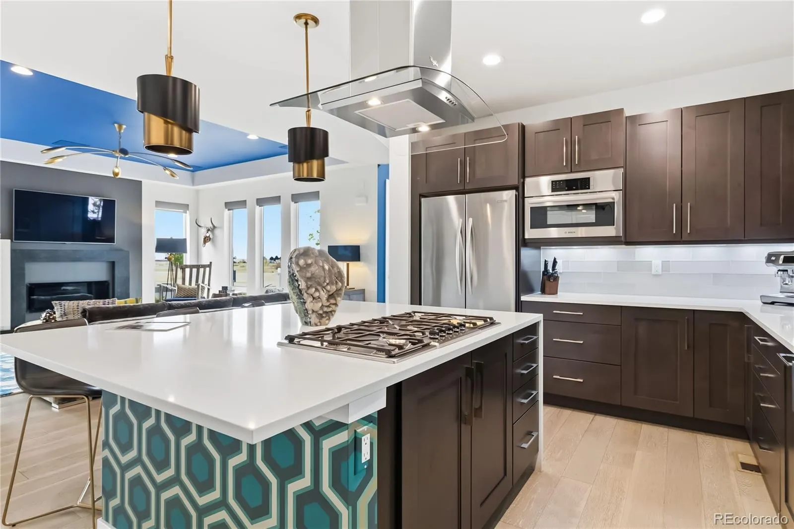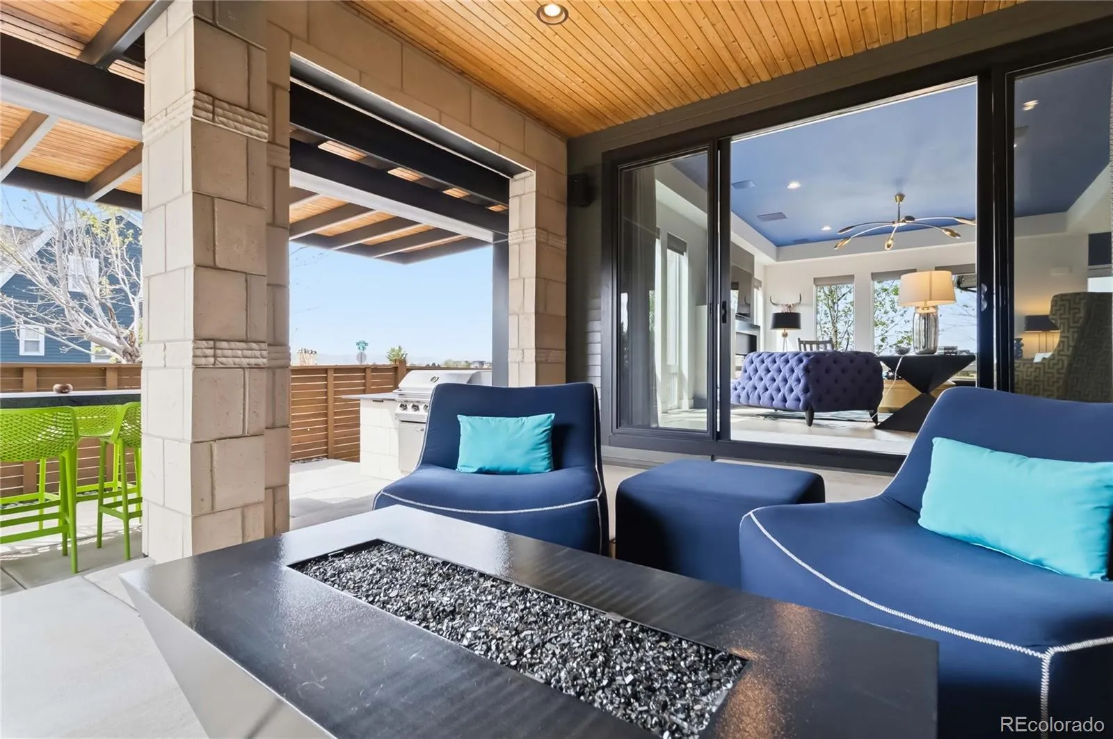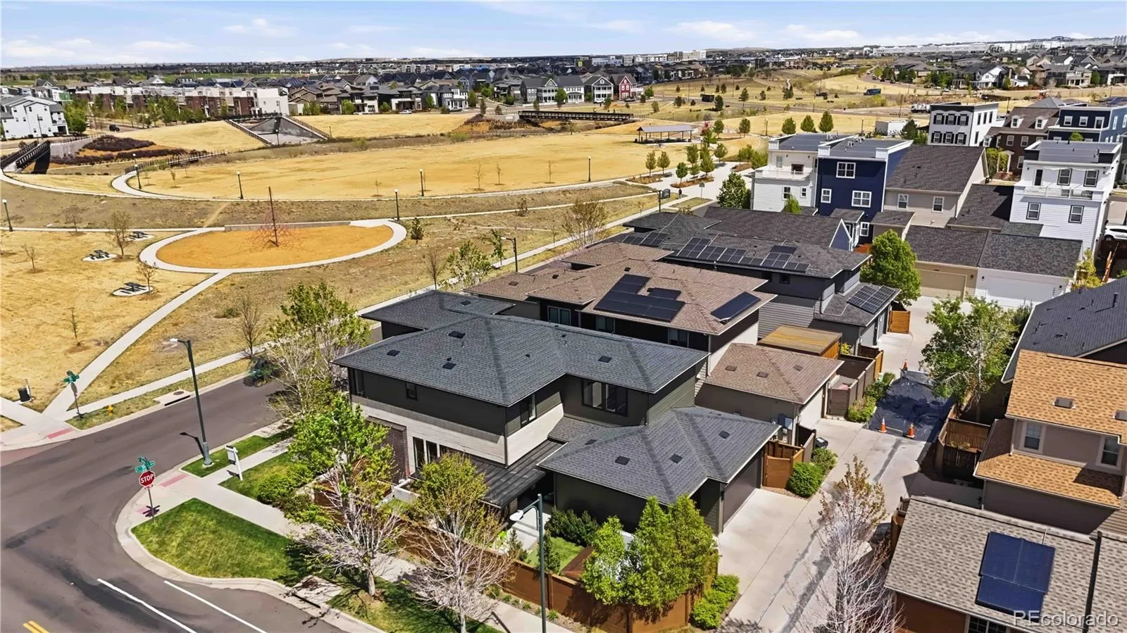 Sophisticated living meets effortless technology in this exceptional Central Park home where every detail has been curated for the discerning buyer. Featured in 5280 Magazine this home has one of the best locations in Northfield, directly across the street from the park with beautiful mountain views! A rare 3-car attached garage will set the tone from arrival, while inside, hand-troweled wall finishes and custom lighting throughout create an atmosphere of quiet refinement. The kitchen is designed to impress and perform: quartz countertops, a generous island, upgraded tile backsplash, and double ovens make entertaining and everyday living equally seamless. The spacious living room is anchored by a fireplace wrapped in custom tile, a striking focal point and architectural elegance. Whole-home integration is handled by a Control4 system that unifies lighting, multi-room audio, televisions, and garage access all from a single, intuitive interface. Nest cameras and smart thermostats add a layer of security and efficiency, controllable from anywhere via app. Custom built-in cabinetry in the walk-in closet rounds out the interior with storage that’s as beautiful as it is functional. Step outside and discover a backyard retreat that evokes resort living, an investment of over $100k that shows. The extended covered dining area flows to an outdoor grilling station built for serious entertaining, while a sunken hot tub, crackling fire pit, and professionally installed raised garden beds on drip irrigation complete an outdoor living space you’ll never want to leave. This is not just a home. It’s a lifestyle. **Don’t forget to View the Virtual Tours**