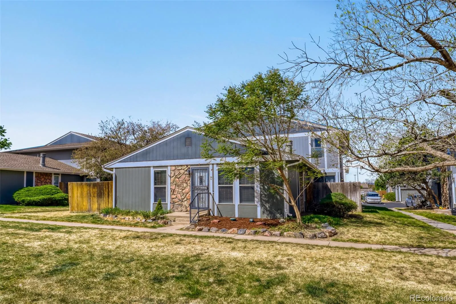 Well maintained, one story end unit in Raintree East. The home has been freshly painted, new kitchen appliances, new countertops, new lighting fixtures. This particular unit is rare due to the fact that it backs to open space and is filled with lots of natural light. New mulch has been spread throughout the front and side of the property. This home has a new sewer line with clean outs, new hot water heater installed in 2024, new Furnace and AC unit installed in 2020. The community offers tennis courts for homeowners, playground area, and pool for summer fun. Conveniently located within the highly regarded Cherry Creek School District, minutes to shopping, dining, parks, and commuter routes.