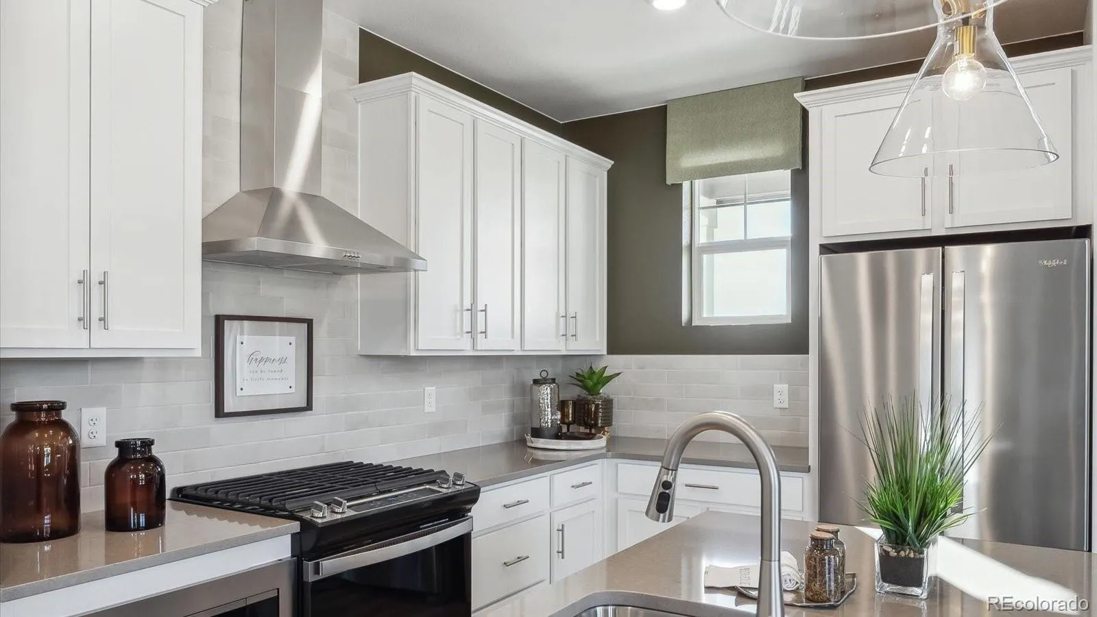 Stunning, low maintenance home in Settlers Crossing! Located on a corner lot, the Muirfield floor plan offers 3 bedrooms plus a roomy 2nd level living area. The open-concept kitchen features granite slab counters, white cabinets with crown moulding, pendant lights over the large island, subway tile backsplash and Stainless Steel appliances. The primary bedroom is spacious, and connects to an ensuite bathroom with quartz countertops, 2 undermount sinks and tile floors and shower walls. This Smart Home includes keyless entry with keypad, video doorbell, smart thermostat, wi-fi enabled garage door opener, wall-mounted touch screen panel, and more. Plug and play light switches and tankless water heater are also included in this home! ***Photos are representative and not of actual property***