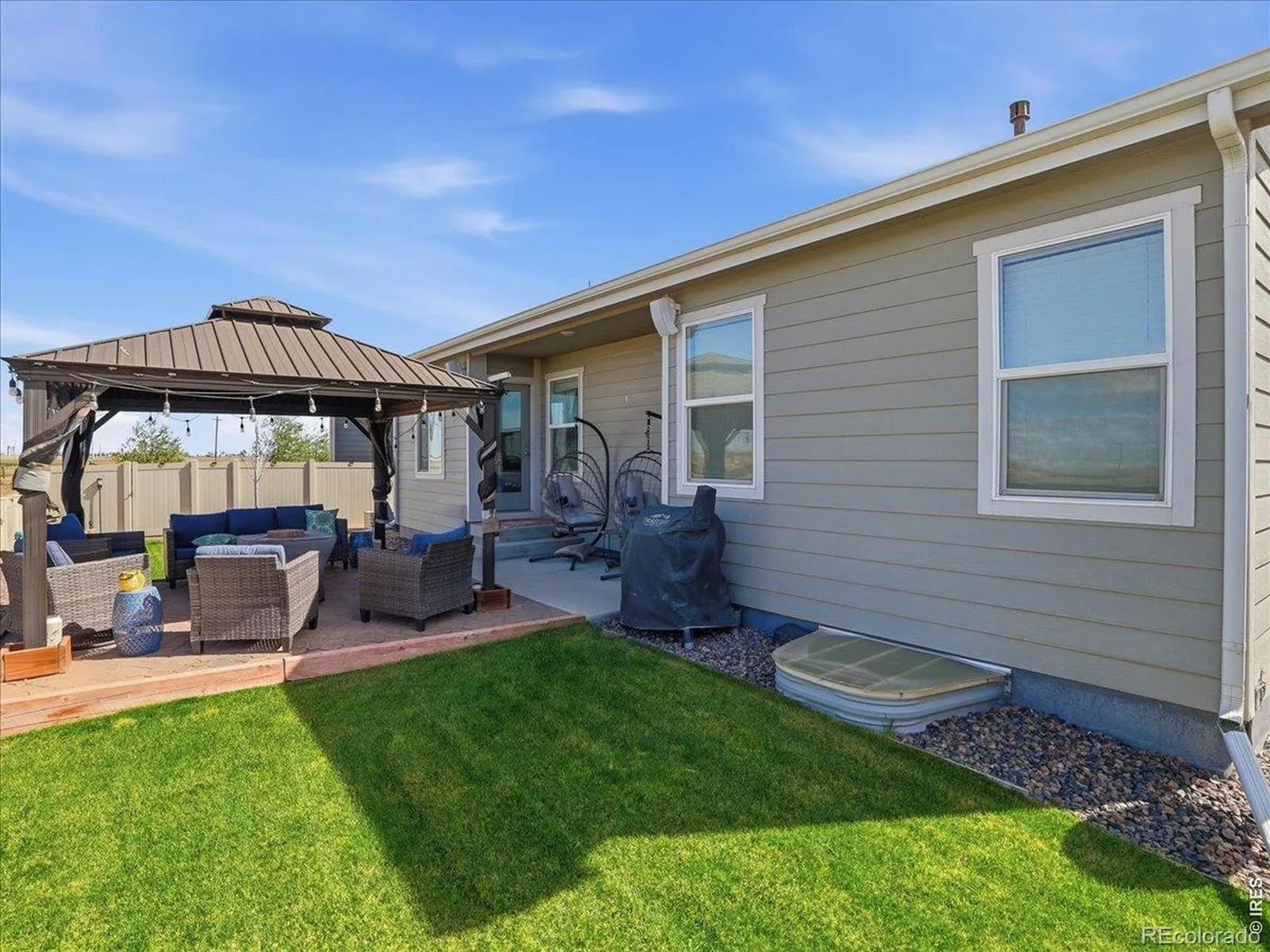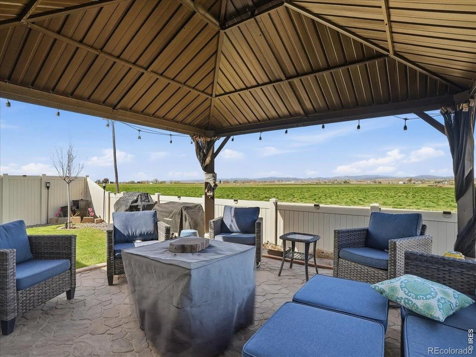 Beautifully maintained ranch-style home in the desirable Conestoga community of Ault, where wide-open views and thoughtful upgrades come together for comfortable, everyday living. Perfectly positioned on a quiet street and backing to farmland, this 3 bedroom, 3 bath home offers unobstructed mountain views and a level of privacy that’s getting harder to find. From the moment you arrive, the inviting curb appeal and well-kept exterior set the tone for what’s inside. The main level features an open-concept layout with vaulted ceilings and abundant natural light. The kitchen is both functional and stylish, complete with quartz countertops, stainless steel appliances, a spacious pantry, and a breakfast bar ideal for casual dining or entertaining. The seamless flow into the living and dining areas makes hosting easy while still feeling cozy for everyday living. The primary suite offers a peaceful retreat with ample space, while additional bedrooms provide flexibility for guests, hobbies, or a home office. Downstairs, the professionally finished basement expands your living space with a large recreation area, additional bedroom, and full bathroom. Step outside to a fully landscaped and fenced backyard designed for low maintenance and maximum enjoyment. The included gazebo creates the perfect outdoor gathering space, and the Bose outdoor speaker system elevates everything from quiet evenings to weekend get-togethers. With its combination of indoor comfort and outdoor lifestyle, plus those hard-to-beat Colorado mountain views, this home offers a rare opportunity to enjoy both space and scenery-without sacrificing convenience.