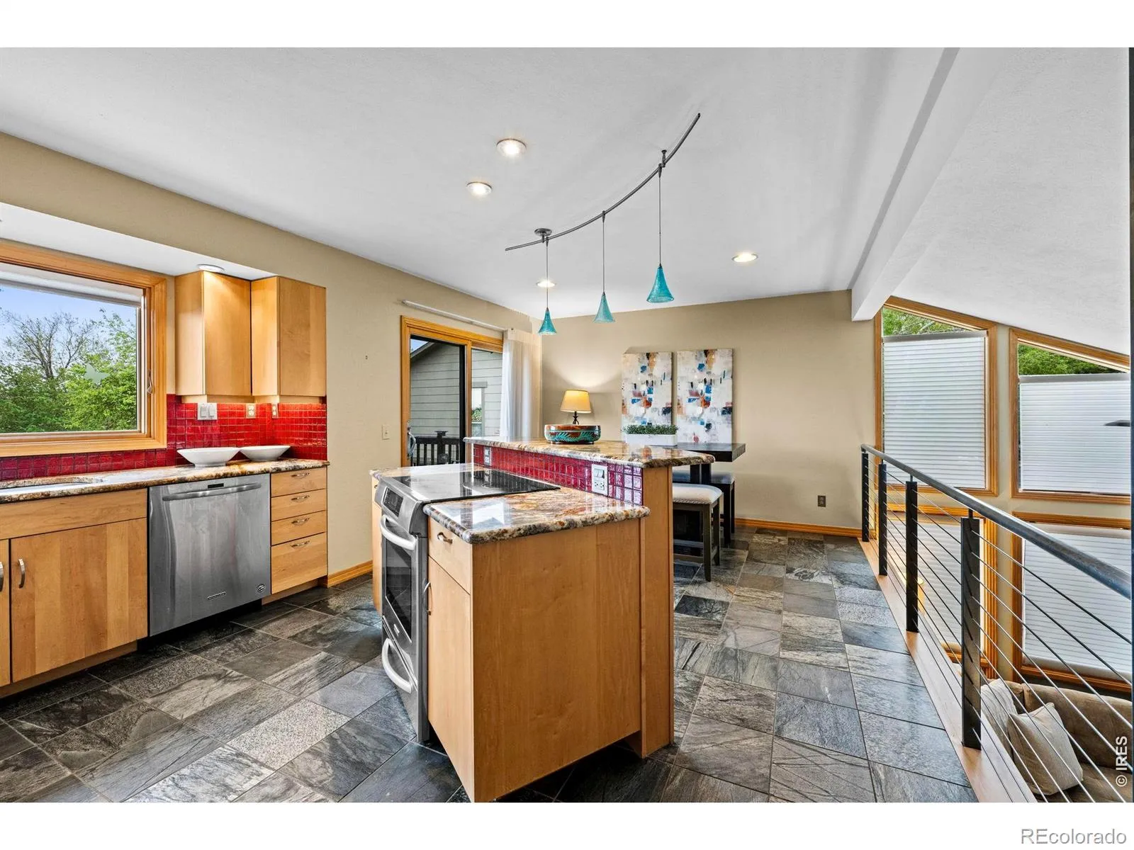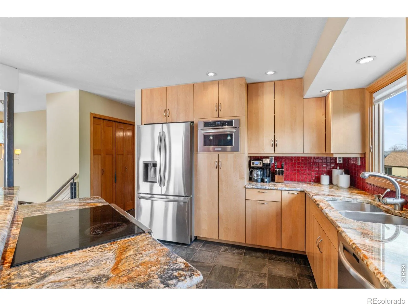 Backing to open space, this exceptional home captures the best of South Boulder living with sweeping views and immediate access to nature. Ideally located near top-rated schools, neighborhood parks, trail systems, and Boulder’s robust bus services, this Artisan-built residence blends refined design with an active outdoor lifestyle. The renovated kitchen anchors the open floor plan and is designed for both daily living and entertaining, featuring soft-close maple cabinetry, golden ray granite countertops, a modern glass tile backsplash, and high-end stainless-steel appliances. A spacious island bar with elegant pendant lighting flows seamlessly into the dining area. The light-filled two-story living room is a standout, with dramatic floor-to-ceiling windows framing Flatiron views and a welcoming gas fireplace. The walkout lower level offers a cozy family room – perfect for movie nights or casual gatherings – with direct access to the private backyard. Four generously sized bedrooms provide comfortable accommodations, complemented by two updated bathrooms with granite countertops and soft-close redwood cabinetry. Custom details throughout include updated wood trim, solid cedar doors, a striking custom steel & cable-railed staircase, newer windows with custom Hunter Douglas coverings, and hot-water radiant in-floor heating on all three levels – no radiators or forced air. Outdoor living is equally inviting, with a full-length sandstone patio overlooking open space and a peaceful neighborhood known for mature landscaping, gardens, and parks. A two-car garage provides excellent storage with overhead racks and pulley systems, plus additional off-street parking. A rare opportunity to enjoy timeless craftsmanship, modern comfort, and the lifestyle that defines South Boulder.