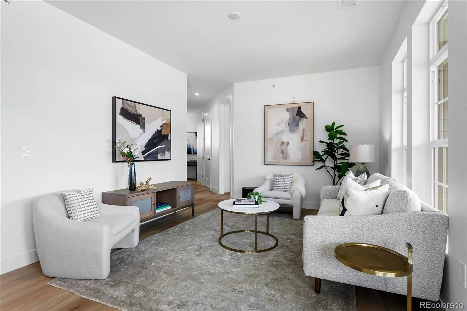 Experience truly exceptional living in this newly constructed, design-forward condominium, where unobstructed views of the Flatirons take center stage. Perfectly positioned to capture Colorado’s iconic landscape, the expansive west-facing balcony—finished with durable Trex decking—offers a front-row seat to breathtaking sunsets and year-round mountain beauty. Inside, modern sophistication meets everyday comfort. Soaring 9-foot ceilings, luxury vinyl plank flooring, recessed lighting, and 8-foot doors create a bright, open atmosphere with a refined architectural feel. The thoughtfully designed kitchen features sleek European full-overlay cabinetry, 3cm quartz countertops, a full-height tile backsplash, and GE/Profile stainless steel appliances—ideal for both entertaining and daily living. The spa-inspired primary suite is complete with dual vanities, a zero-step entry shower, and curated designer finishes including premium tile, lighting, and plumbing fixtures. This residence also offers the rare advantage of a detached, fully finished 2-car garage, EV-ready for modern convenience. Additional highlights include all-electric, solar-ready construction, smart home features, integrated fire suppression, private entry access from a shared courtyard, and efficient storage throughout. A seamless blend of elevated design, lock-and-leave ease, and unparalleled Flatiron views—this is Colorado living at its finest. Set within The Village on the Broadlands, a vibrant community rich with parks, trails, playgrounds, and a pool, this residence offers effortless access to shopping, dining, and major thoroughfares—delivering both connection and convenience.