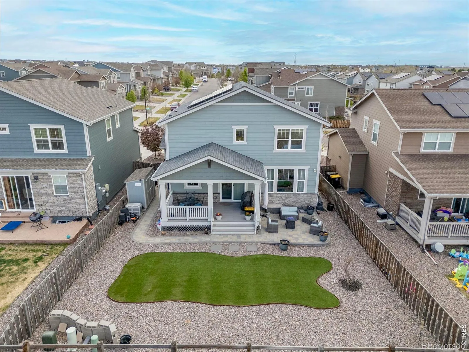 Upgrades galore in this beautifully enhanced Lennar 2-story in Adonea! This home is wired for the modern lifestyle with CAT 6A wiring throughout, a Vivint security system, SOLAR, and efficient 2×6 exterior walls for added comfort and energy savings. Whole house water softener and reverse osmosis at kit sink and frig! Inside, you’ll love the LVP flooring on the main level and the new instant hot water heater that keeps everyday living easy and efficient. The thoughtful floor plan features 3 bedrooms upstairs plus a conveniently located laundry room on the same level, and all appliances – including washer and dryer – are included for a true move-in-ready experience. The full unfinished basement offers incredible potential for future expansion, whether you envision an additional bedroom, rec room, home gym, or extra storage. Step outside to an entertainer’s dream yard showcasing an extended back deck, paver patio, astro turf yard for low-maintenance green all year, and a large shed for your tools and toys. Gemstone eave lighting adds a stunning year-round decorative accent, making holidays and special occasions pop with the touch of a button, and the home backs to a greenbelt with eastern exposure so you can start each day with gorgeous Colorado sunrises. You’ll also love the Adonea neighborhood lifestyle, with nearby parks, walking trails, and a community clubhouse and pool that offer plenty of options for recreation, relaxation, and connecting with neighbors.