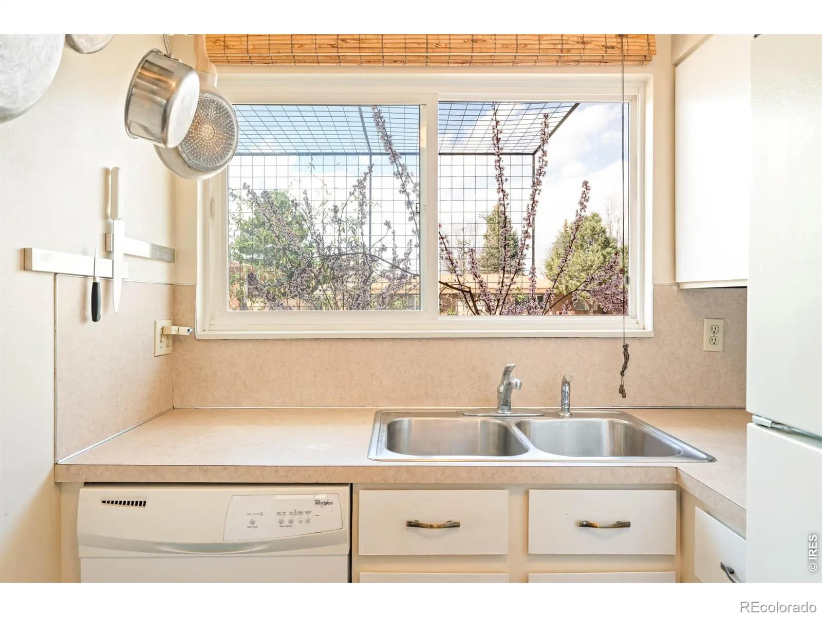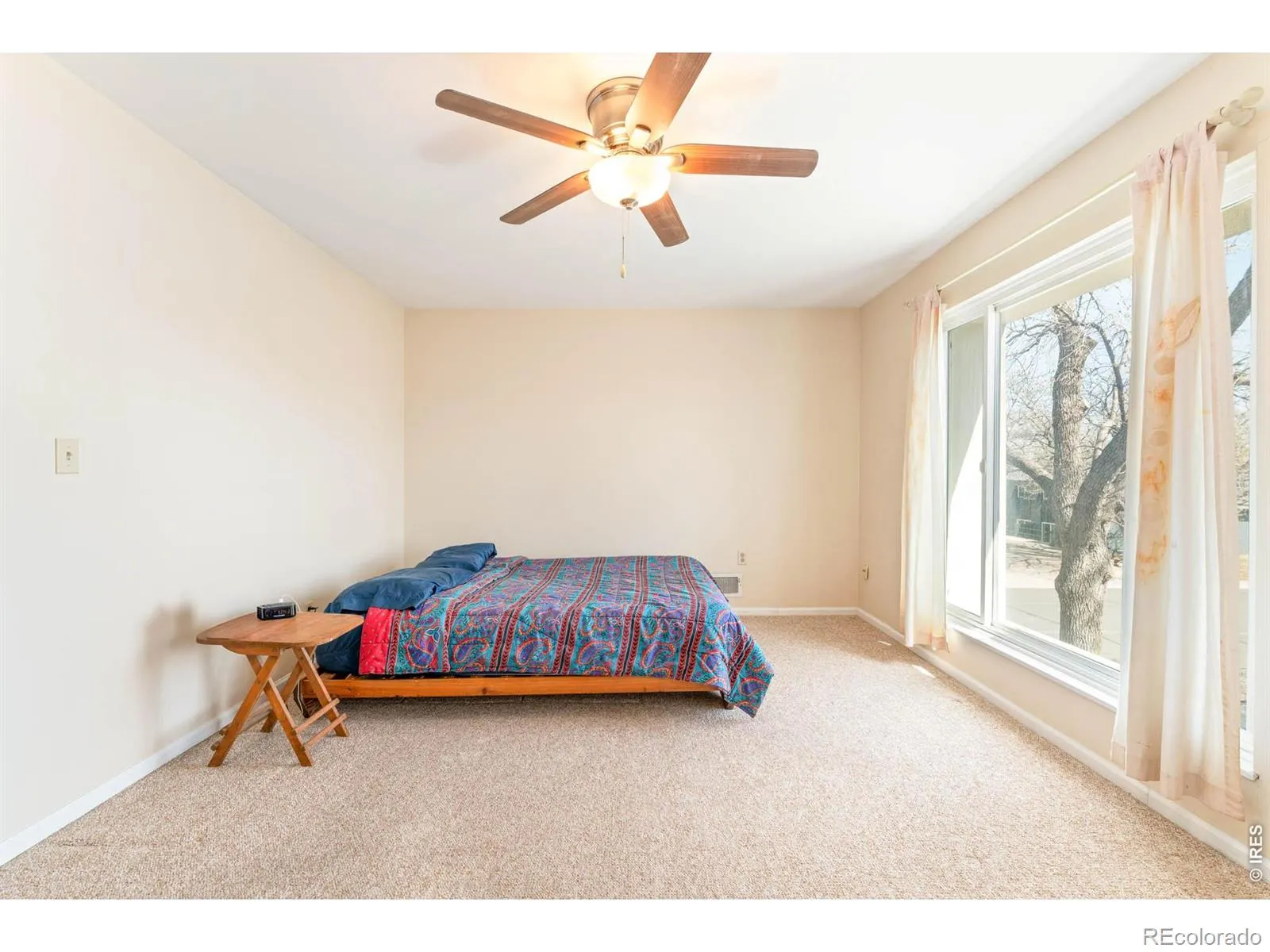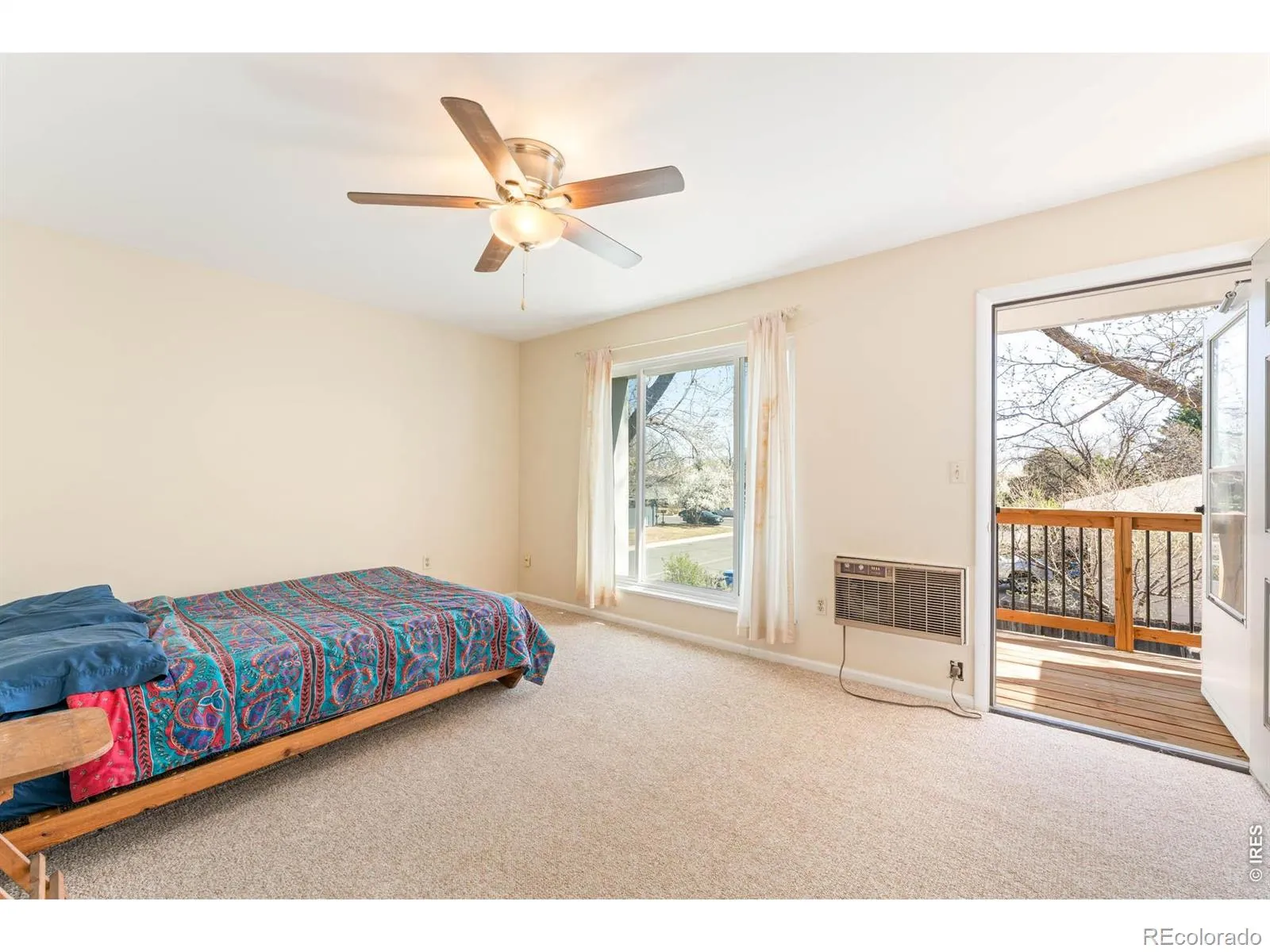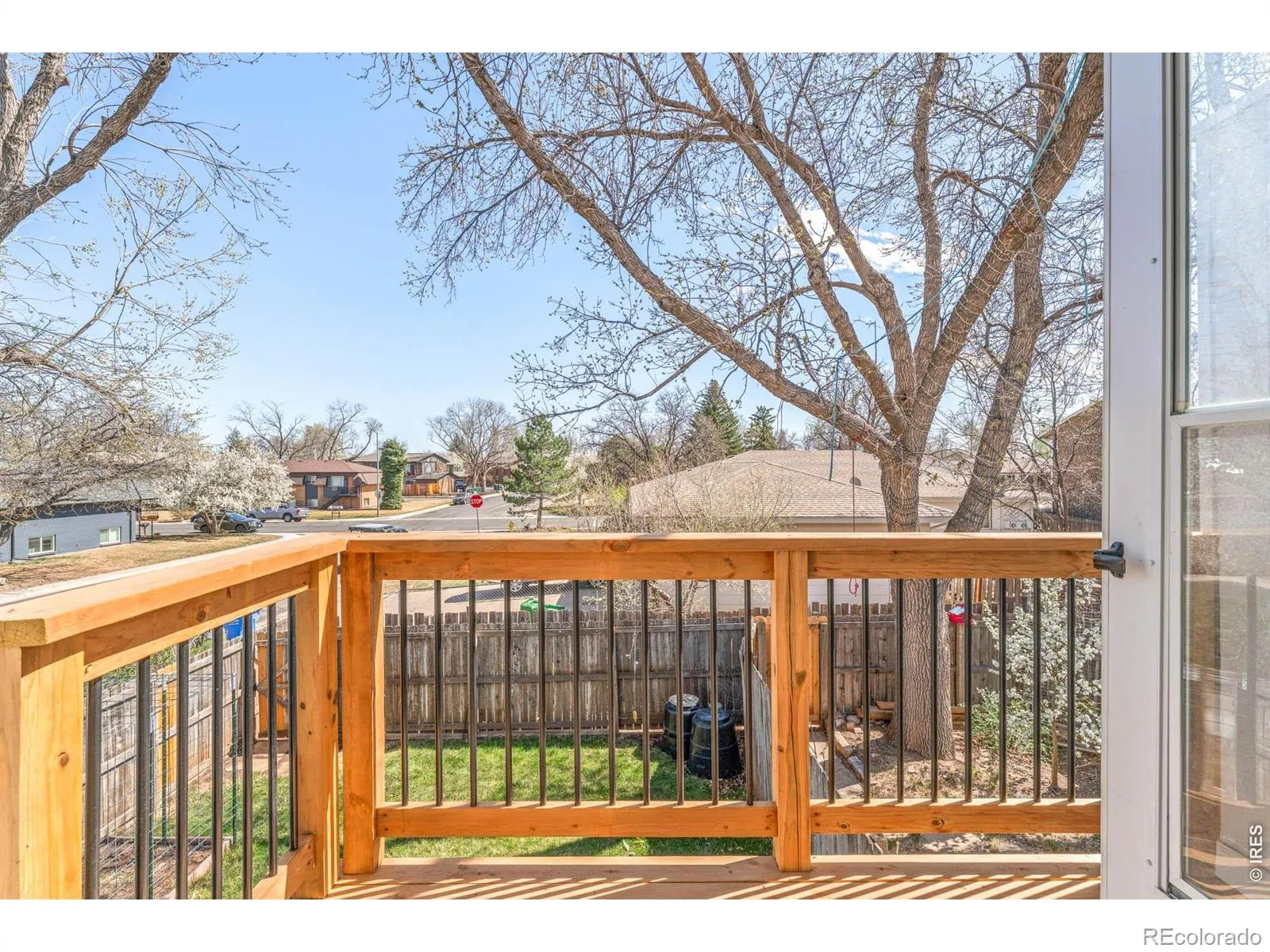 This inviting end-unit residence at Westwood Condos offers a seamless balance of privacy, thoughtful design and outdoor living. Tongue-and-groove ceilings with exposed wooden beams elevate the open living and dining area. Natural light pours in through sliding glass doors, creating a seamless connection to a private, fenced backyard. The bright kitchen features generous cabinetry and new flooring, while all appliances – including the washer and dryer – are included for true move-in-ready ease. Upstairs, the primary bedroom opens to a newly built private deck, creating a peaceful retreat above the garden. The custom-fabricated steel trellis system is efficiently designed to frame the front entry with an overhead canopy and extend into the backyard as a vertical garden wall within raised planters, complete with drip irrigation. With two convenient parking spaces, outdoor storage and a prime end-unit location, this residence offers both function and welcoming charm in Fort Collins.