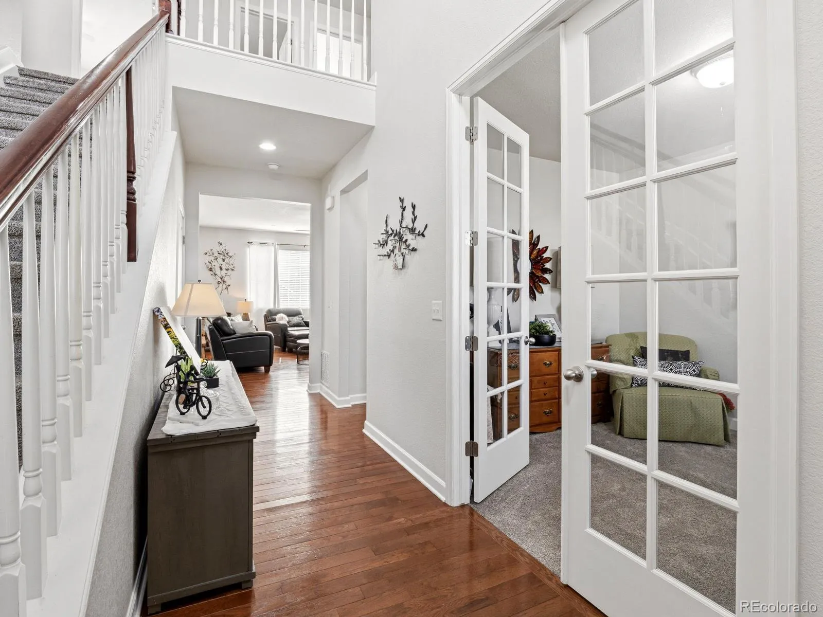 Welcome to 1375 Morningview Ln, a beautifully maintained two story home nestled in The Meadows, one of Castle Rock’s most sought after communities. This spacious residence offers 5 bedrooms, 4 bathrooms, and a fully finished basement, providing plenty of room to live, work, entertain and separation for everyone. From the moment you step inside, you’re greeted by a stunning entryway and a thoughtfully designed main level that includes a dedicated office, perfect for working from home or a quiet study space. The inviting living room features a cozy fireplace, creating the ideal setting for relaxing evenings or gatherings. The kitchen has an open design with function and style including granite countertops, maple cabinetry with crown molding, stainless steel appliances, double ovens, a gas range, a large center island, and a generous pantry. The dining area flows seamlessly to the outdoor patio, making indoor outdoor entertaining effortless. Upstairs, the private primary suite offers a peaceful retreat complete with a soaking tub and double sink vanity. The 3 upper secondary provide additional space for everyone. The finished basement expands your living options with a guest bedroom, bathroom, and a versatile flex space perfect for a media room, playroom, or home gym. Located in The Meadows, residents enjoy access to incredible amenities including parks, playgrounds, miles of trails, open space, a beautiful community pool, and a vibrant clubhouse known as The Grange, all designed to support an active Colorado lifestyle. With close proximity to schools, shopping, dining, and downtown Castle Rock, this home delivers the space, location, and lifestyle buyers are searching for.
