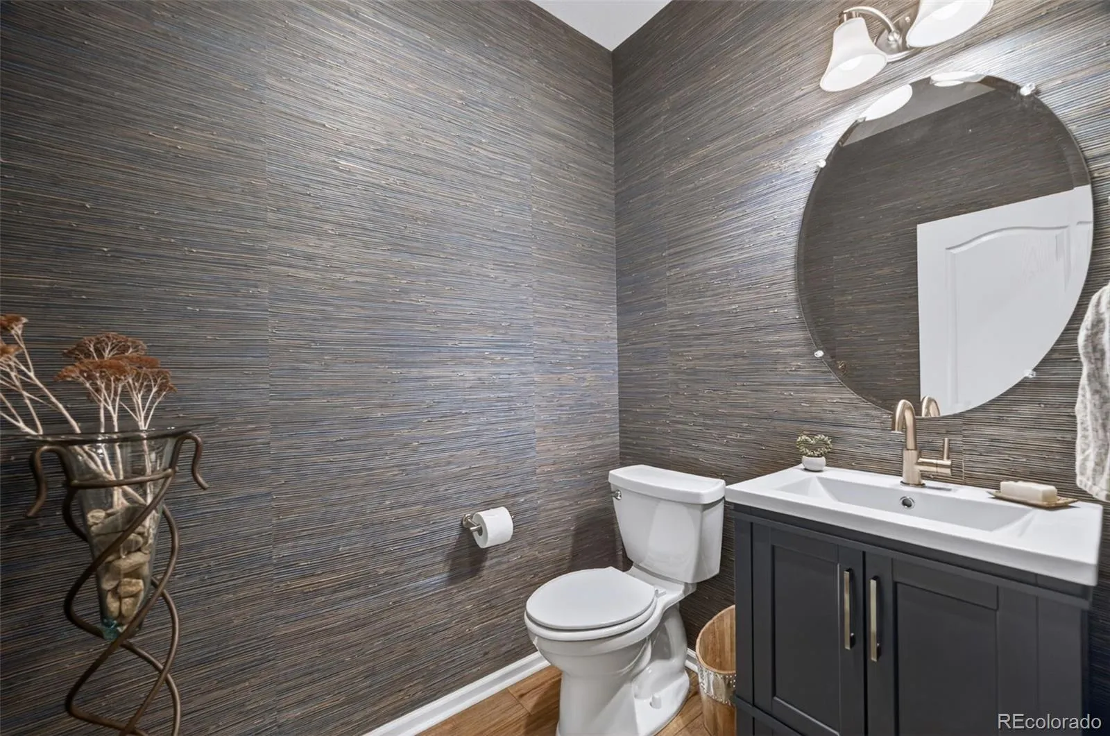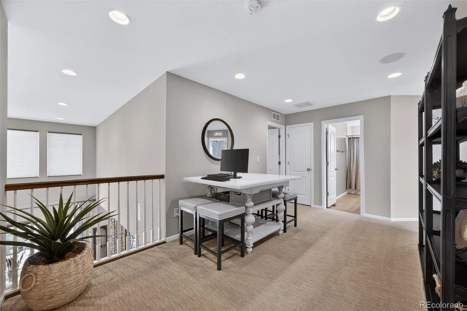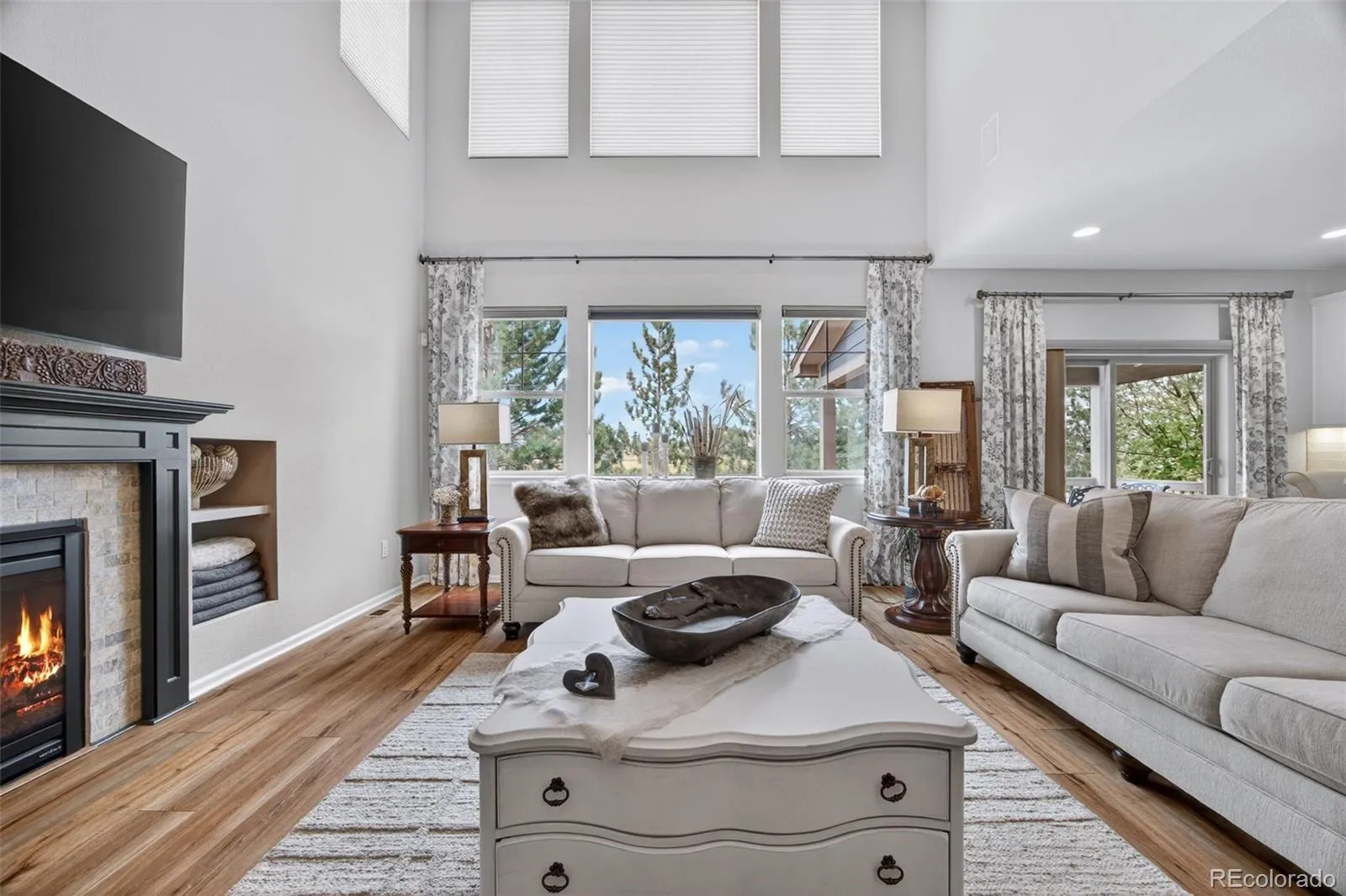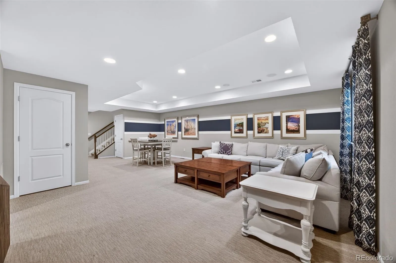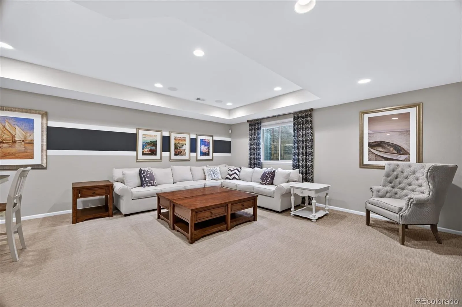 Welcome to 7045 S Robertsdale Way, a former model home in Southshore where thoughtful design, modern finishes, and everyday functionality come together in a bright, open layout. Just inside, a versatile front room offers space for a home office, sitting area, or flex space, enhanced by elegant wainscoting, along with black accent finishes and updated flooring (2022). The kitchen is a true standout featuring granite countertops, subway tile backsplash, abundant cabinetry, and a full suite of Samsung Bespoke appliances in striking navy blue stainless steel. The sleek glass front refrigerator includes an interior beverage center for both style and convenience, all flowing seamlessly into the main living and dining spaces. A mudroom just off the garage adds everyday ease, while the powder bath showcases a grasscloth wall treatment for a coastal-inspired touch. Upstairs, the spacious primary suite offers a walk-in closet and linen storage, complemented by well-appointed secondary bedrooms, including a guest room with a shiplap accent wall. A versatile loft provides space for a home office or additional living area, and the laundry room includes extra cabinetry for added function. The finished basement expands your living space with a large rec area, a guest bedroom with 8.8-foot ceilings, a full bathroom, and a 220V outlet—ideal for a home gym or workshop. Step outside to a low-maintenance backyard with turf and professionally designed landscaping, enhanced by Kichler exterior lighting controlled by an app. The home backs to open space with direct trail access to the Aurora Reservoir, nearby parks, and Southshore’s two community clubhouses—the Lakehouse and Lighthouse. With resort-style amenities, an oversized 2-car garage, and a whole-home lighting control system, this home offers a rare combination of design, convenience, and Colorado lifestyle.