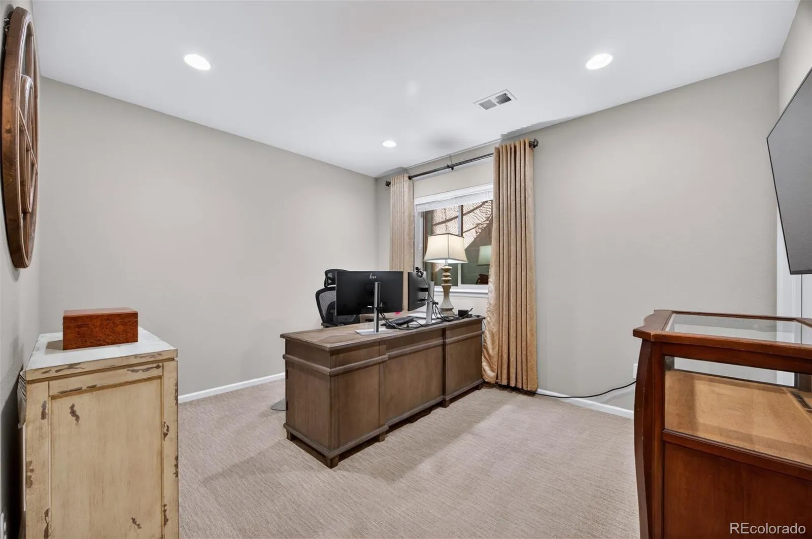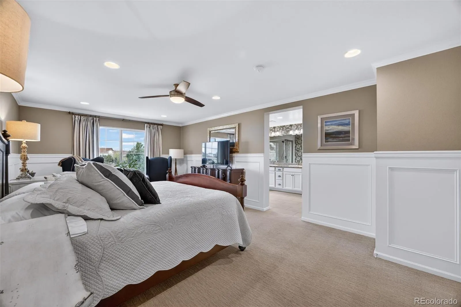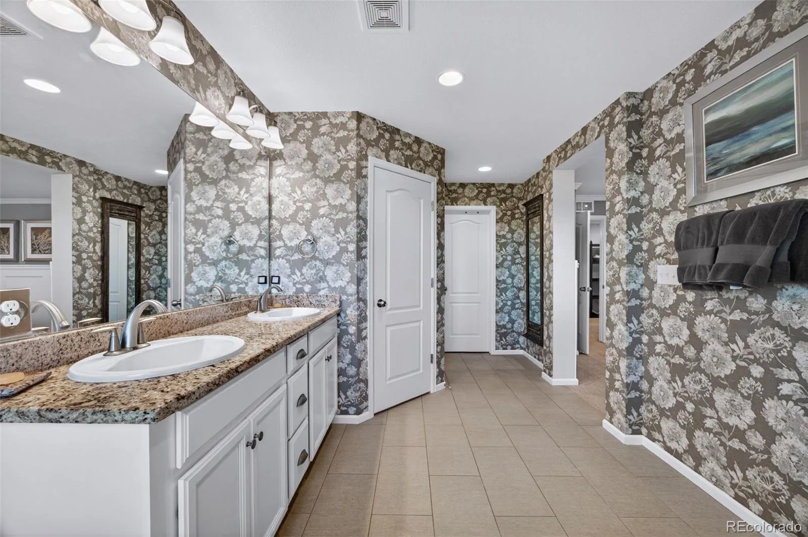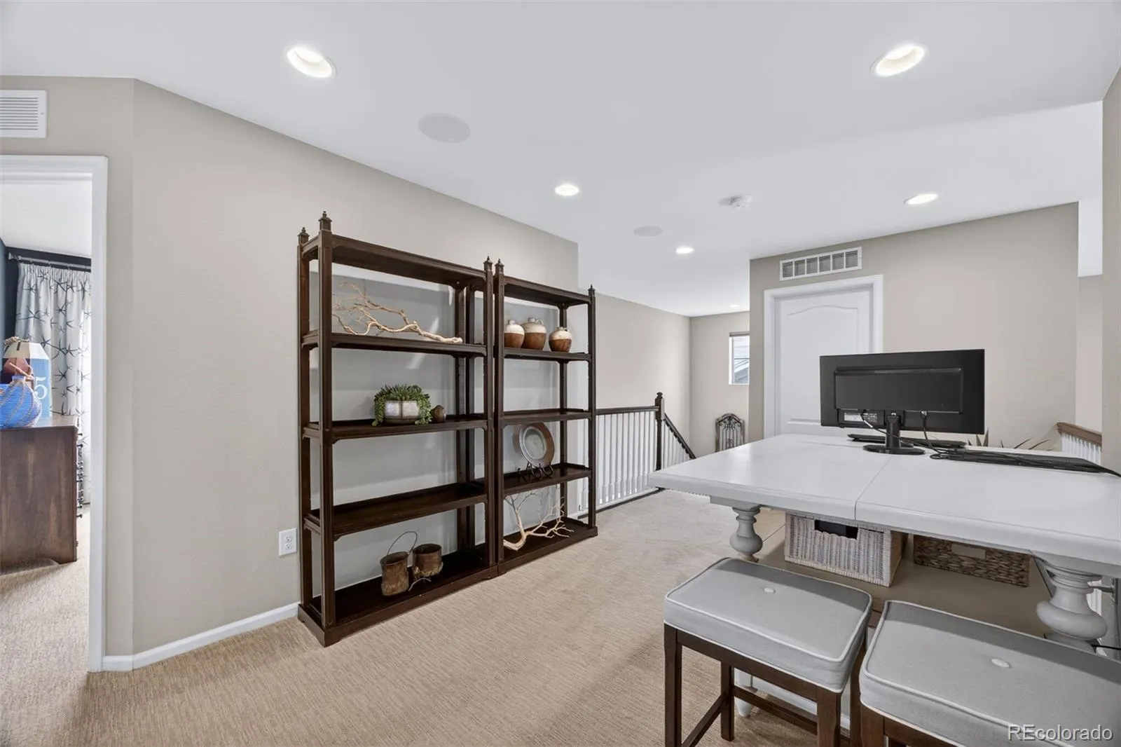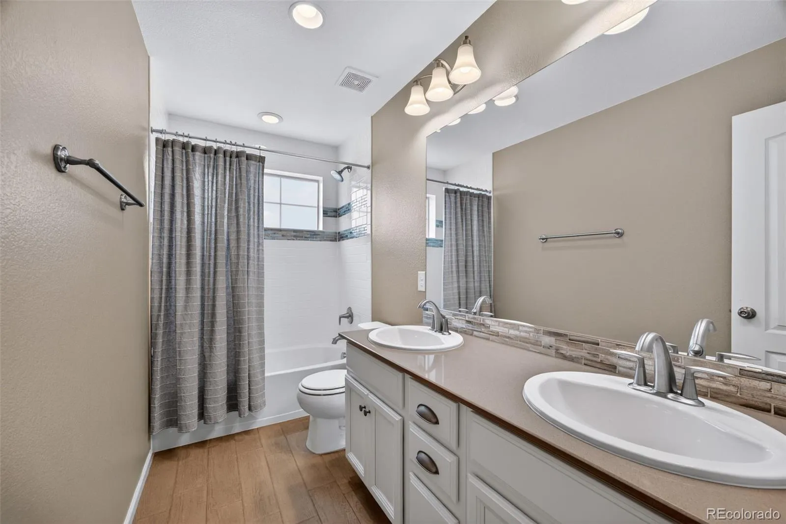 Welcome to 7045 S Robertsdale Way, a former model home in Southshore where thoughtful design, modern finishes, and everyday functionality come together in a bright, open layout. Just inside, a versatile front room offers space for a home office, sitting area, or flex space, enhanced by elegant wainscoting, along with black accent finishes and updated flooring (2022). The kitchen is a true standout featuring granite countertops, subway tile backsplash, abundant cabinetry, and a full suite of Samsung Bespoke appliances in striking navy blue stainless steel. The sleek glass front refrigerator includes an interior beverage center for both style and convenience, all flowing seamlessly into the main living and dining spaces. A mudroom just off the garage adds everyday ease, while the powder bath showcases a grasscloth wall treatment for a coastal-inspired touch. Upstairs, the spacious primary suite offers a walk-in closet and linen storage, complemented by well-appointed secondary bedrooms, including a guest room with a shiplap accent wall. A versatile loft provides space for a home office or additional living area, and the laundry room includes extra cabinetry for added function. The finished basement expands your living space with a large rec area, a guest bedroom with 8.8-foot ceilings, a full bathroom, and a 220V outlet—ideal for a home gym or workshop. Step outside to a low-maintenance backyard with turf and professionally designed landscaping, enhanced by Kichler exterior lighting controlled by an app. The home backs to open space with direct trail access to the Aurora Reservoir, nearby parks, and Southshore’s two community clubhouses—the Lakehouse and Lighthouse. With resort-style amenities, an oversized 2-car garage, and a whole-home lighting control system, this home offers a rare combination of design, convenience, and Colorado lifestyle.