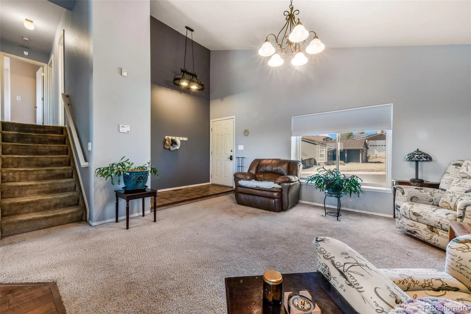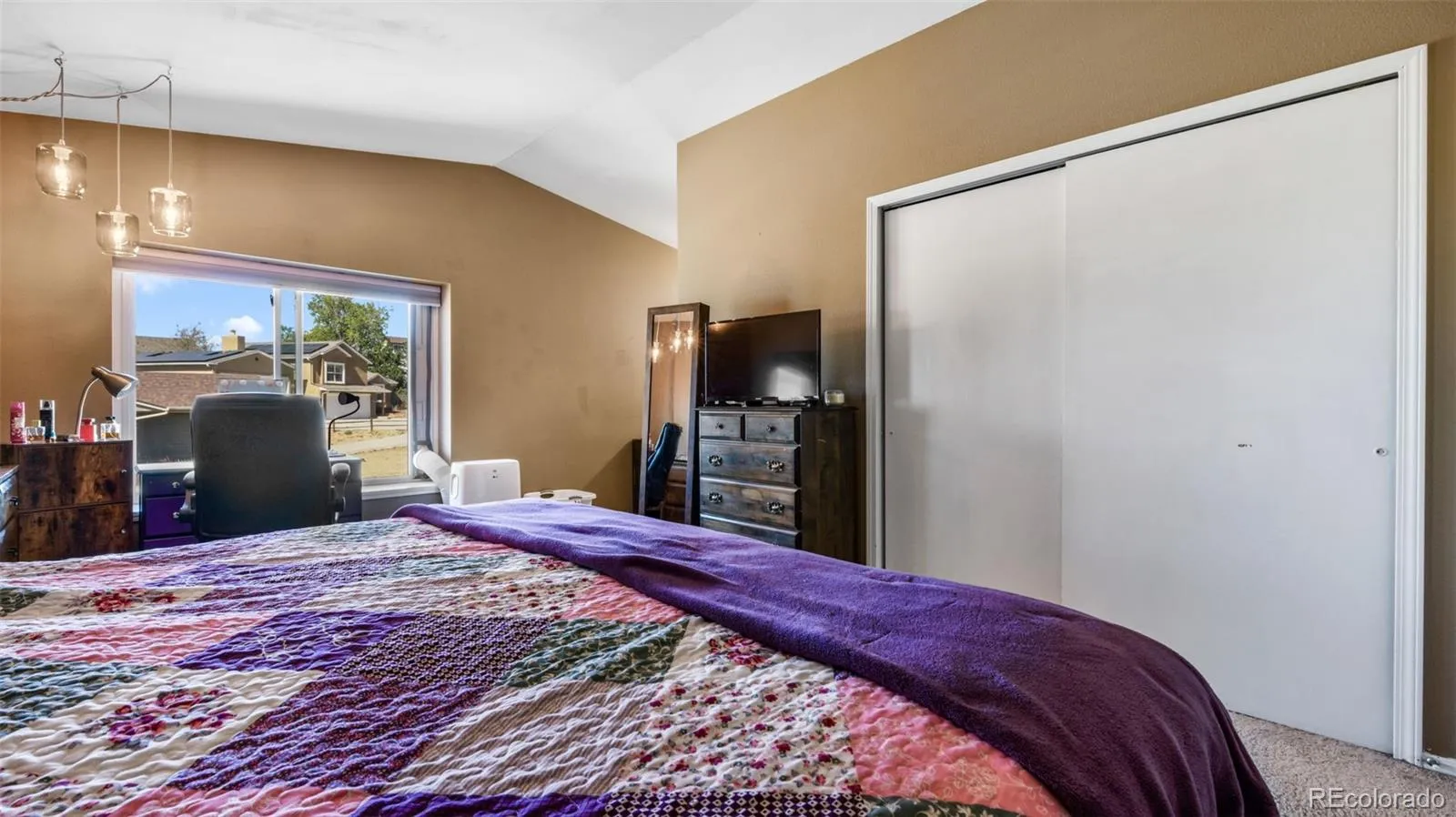 Welcome to this beautifully maintained four-level home in the highly sought-after District 20 area, offering space and functionality both inside and out. Step inside to a bright and open main level featuring vaulted ceilings and a seamless flow between the living, dining, and kitchen spaces. The kitchen offers a breakfast bar and adjoining dining area. Upstairs, the primary suite provides a comfortable retreat with an attached 3/4 bath, while two additional bedrooms and a full hall bathroom offer flexibility for family or guests. The lower level features a spacious family room anchored by a cozy wood-burning fireplace. This level also includes a versatile addition with an office showcasing Pikes Peak views, along with a flexible space ideal for a playroom, sunroom, or additional living area. The basement level adds even more functionality with two additional flex rooms, a 3/4 bathroom, and a dedicated laundry and storage area. As an added bonus, the home includes an owned solar system designed to efficiently support household energy needs, offering long-term savings and sustainability. With its flexible layout, thoughtful updates, and prime location, this home is move-in ready and offers the perfect opportunity to enjoy comfortable Colorado living.