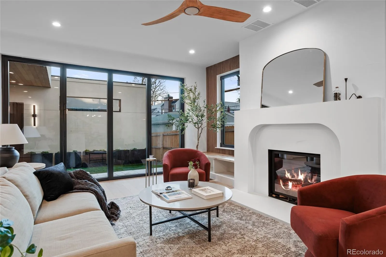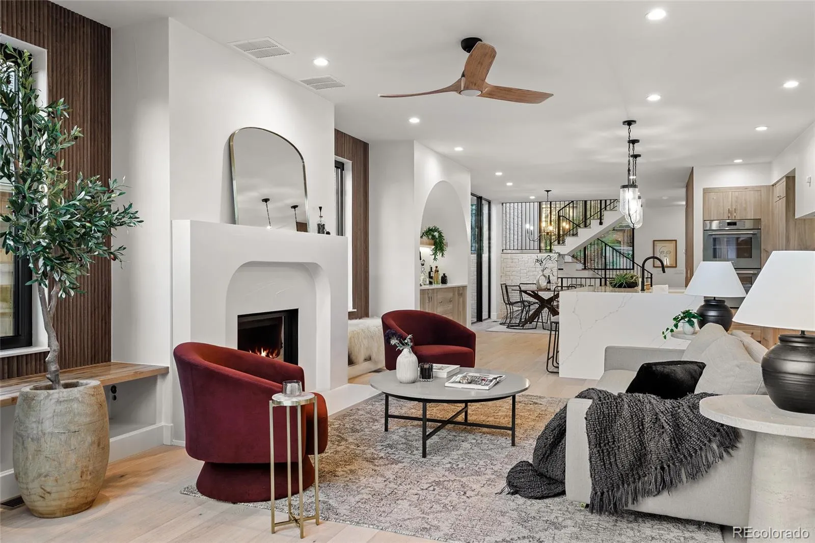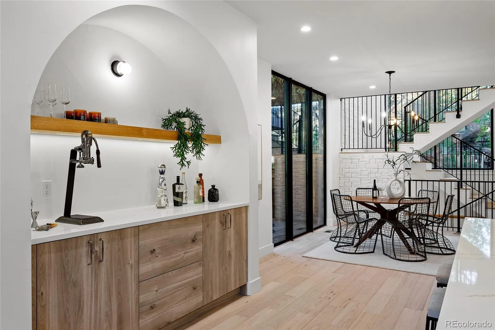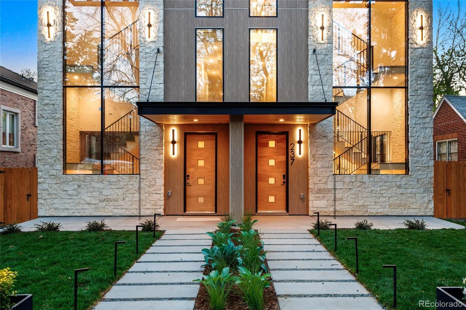 A striking statement in contemporary luxury, this architecturally curated Cherry Creek duplex embodies PBG’s relentless pursuit of design excellence and craftsmanship. Less than a 2-block walk from premier dining and boutiques, this 4-bed, 5-bath residence blends organic textures with elevated interiors. Spruce Nichiha long lasting fiber cement siding (30YR warranty), Cream Cooperstone ledger stone, and a striking 20-foot aluminum window are composed within crisp architectural lines, creating a commanding exterior. Inside, wide-plank engineered white oak flooring and PBG-exclusive European triple-pane windows flood the home with natural light, creating a bright, refined interior. The living space is defined by walnut tambour paneling and full-height stone accent walls that carry continuity from the exterior. The kitchen pairs form and function with custom American-built cabinetry in Nordic white wood, integrated Thermador appliances, and a (waterfall island) for entertaining. Arched openings with integrated cabinetry and built-in bench seating add character. Upstairs, the primary suite features a stone and Kenridge Ribbon Maple Brown tile-wrapped fireplace and a walk-in closet finished in greige Castello oak custom cabinetry. The spa-inspired bath offers a freestanding soaking tub, triple-head shower, and heated floors. A secondary en-suite bedroom and laundry room complete the level. The rooftop level includes a flexible bedroom/office with attached sunroom, ¾ bath, wet bar, and a deck with city/mountain views. The finished basement with 10-foot ceilings expands the home with a recreation area, wet bar, full bath, and additional bedroom. Backyard with covered walkway to garage, custom party wall, & gas hookup extends the indoor-outdoor lifestyle. The detached two-car garage includes 220V capability and optional overhead storage. PBG’s 2-year builder warranty and 8-year structural warranty included. Prewired for speakers | No HOA | Buyer to verify all details.