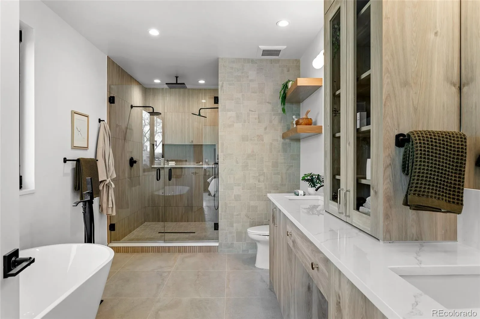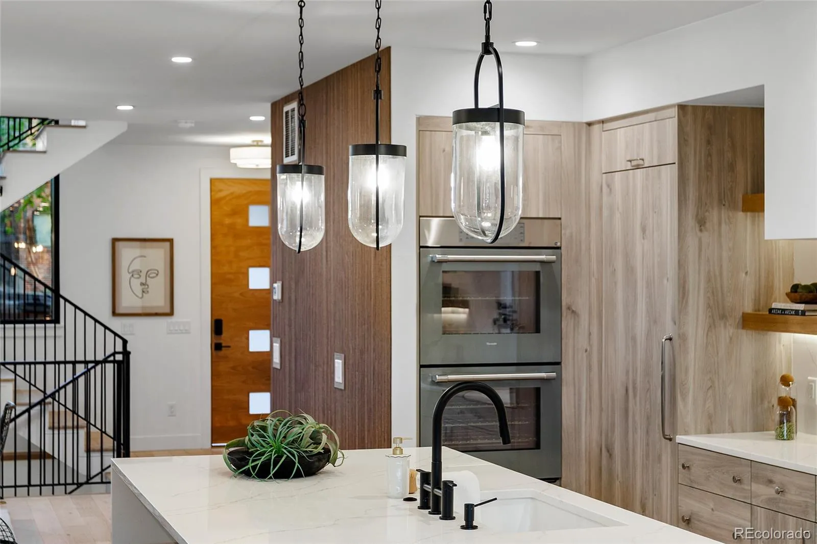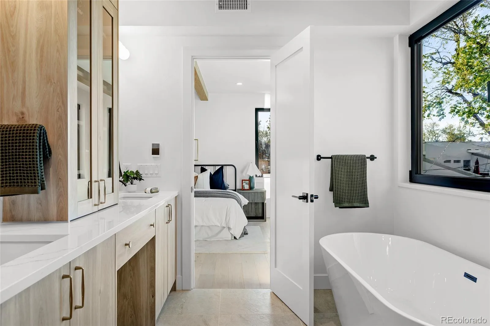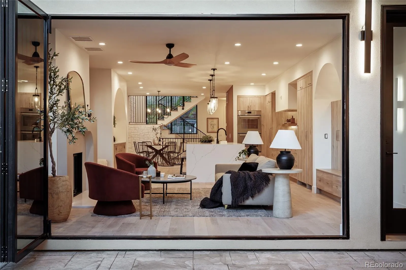 A striking statement in contemporary luxury, this architecturally curated Cherry Creek duplex embodies PBG’s relentless pursuit of design excellence and craftsmanship. Less than a 2-block walk from premier dining and boutiques, this 4-bed, 5-bath residence blends organic textures with elevated interiors. Spruce Nichiha long lasting fiber cement siding (30YR warranty), Cream Cooperstone ledger stone, and a striking 20-foot aluminum window are composed within crisp architectural lines, creating a commanding exterior. Inside, wide-plank engineered white oak flooring and PBG-exclusive European triple-pane windows flood the home with natural light, creating a bright, refined interior. The living space is defined by walnut tambour paneling and full-height stone accent walls that carry continuity from the exterior. The kitchen pairs form and function with custom American-built cabinetry in Nordic white wood, integrated Thermador appliances, and a (waterfall island) for entertaining. Arched openings with integrated cabinetry and built-in bench seating add character. Upstairs, the primary suite features a stone and Kenridge Ribbon Maple Brown tile-wrapped fireplace and a walk-in closet finished in greige Castello oak custom cabinetry. The spa-inspired bath offers a freestanding soaking tub, triple-head shower, and heated floors. A secondary en-suite bedroom and laundry room complete the level. The rooftop level includes a flexible bedroom/office with attached sunroom, ¾ bath, wet bar, and a deck with city/mountain views. The finished basement with 10-foot ceilings expands the home with a recreation area, wet bar, full bath, and additional bedroom. Backyard with covered walkway to garage, custom party wall, & gas hookup extends the indoor-outdoor lifestyle. The detached two-car garage includes 220V capability and optional overhead storage. PBG’s 2-year builder warranty and 8-year structural warranty included. Prewired for speakers | No HOA | Buyer to verify all details.