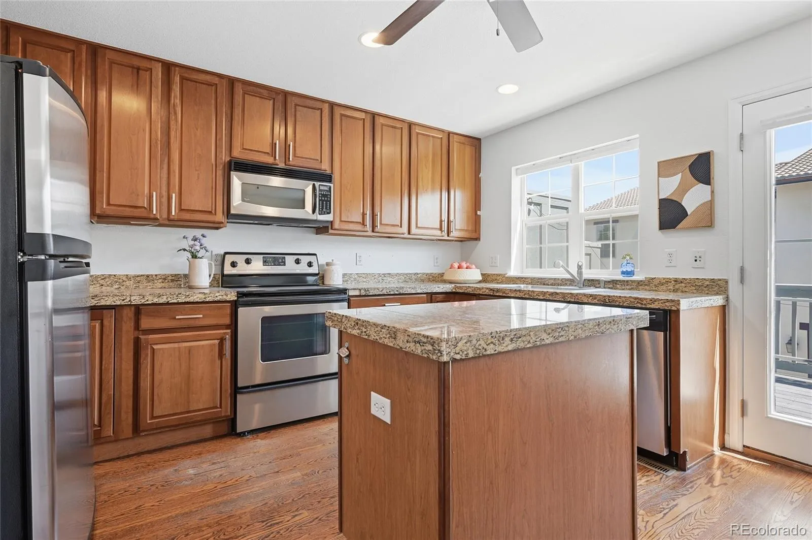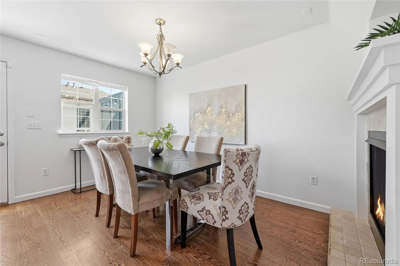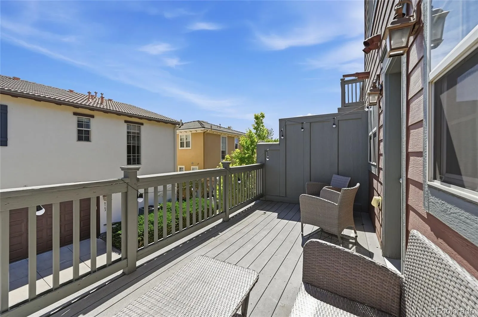Open house this Saturday 11-1. A classic Central Park Row Home. 3-bedroom, 3-bathroom townhouse, with a 2-car garage and perfectly positioned in a quiet courtyard within the bustling Central Park neighborhood. Just a 2-minute walk from the expansive Central Park, offering 80 acres of outdoor adventure and community spirit. Conveniently located near an array of dining and shopping at Central Park Town Center, Eastbridge Town Center, and Stanley Marketplace. Enhanced with prime grocery conveniences, this home is a mere 2-minute walk to Natural Grocers and a brief 5-minute drive from a selection of supermarkets and Stores. High ceilings and abundant natural light complement the cozy double-sided fireplace and spacious living areas. The primary suite features a bay window, large walk-in closet, and a 5-piece bathroom. Additional bedrooms are generously sized, with convenient second-floor laundry. The oversized garage provides ample storage. Off of the kitchen is your private patio, strategically positioned away from the hustle of busy streets, offering a peaceful retreat for morning coffee or evening BBQs. This is a perfect home for those who cherish both the energy of the city and the tranquility of parks and open spaces and bike trails everywhere!