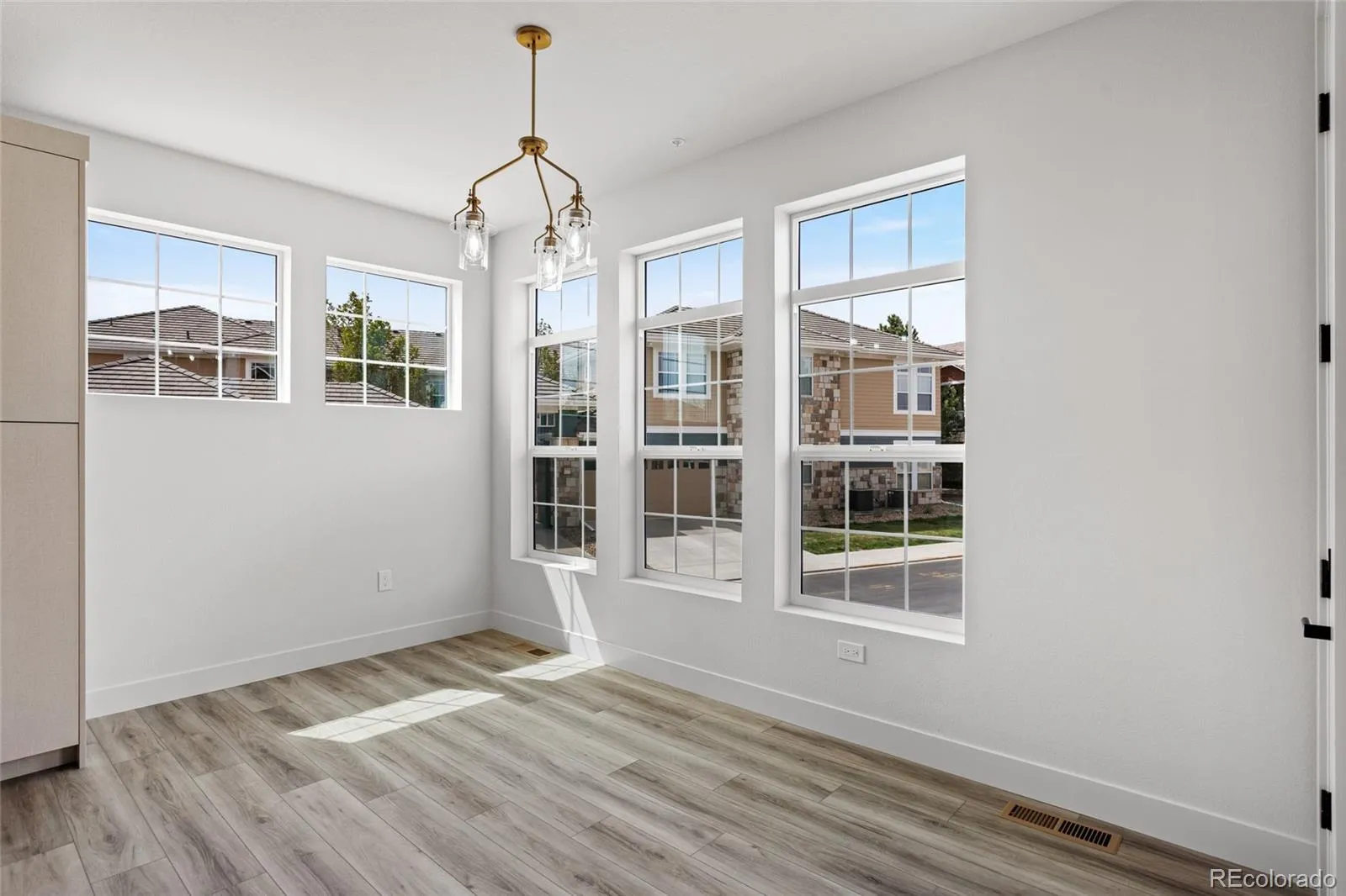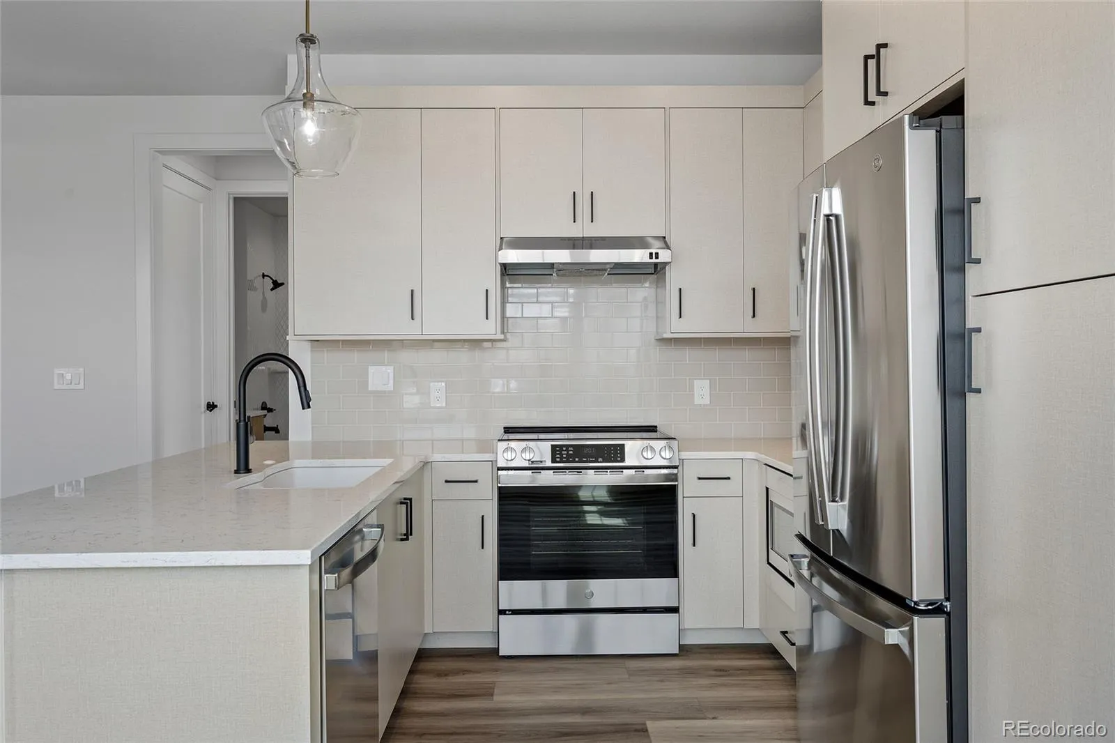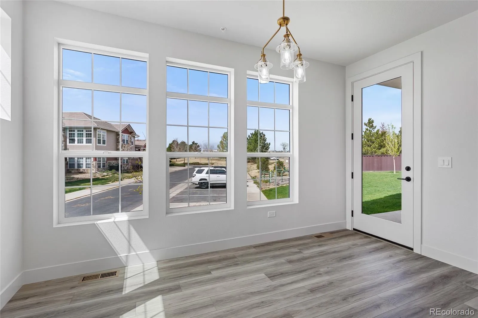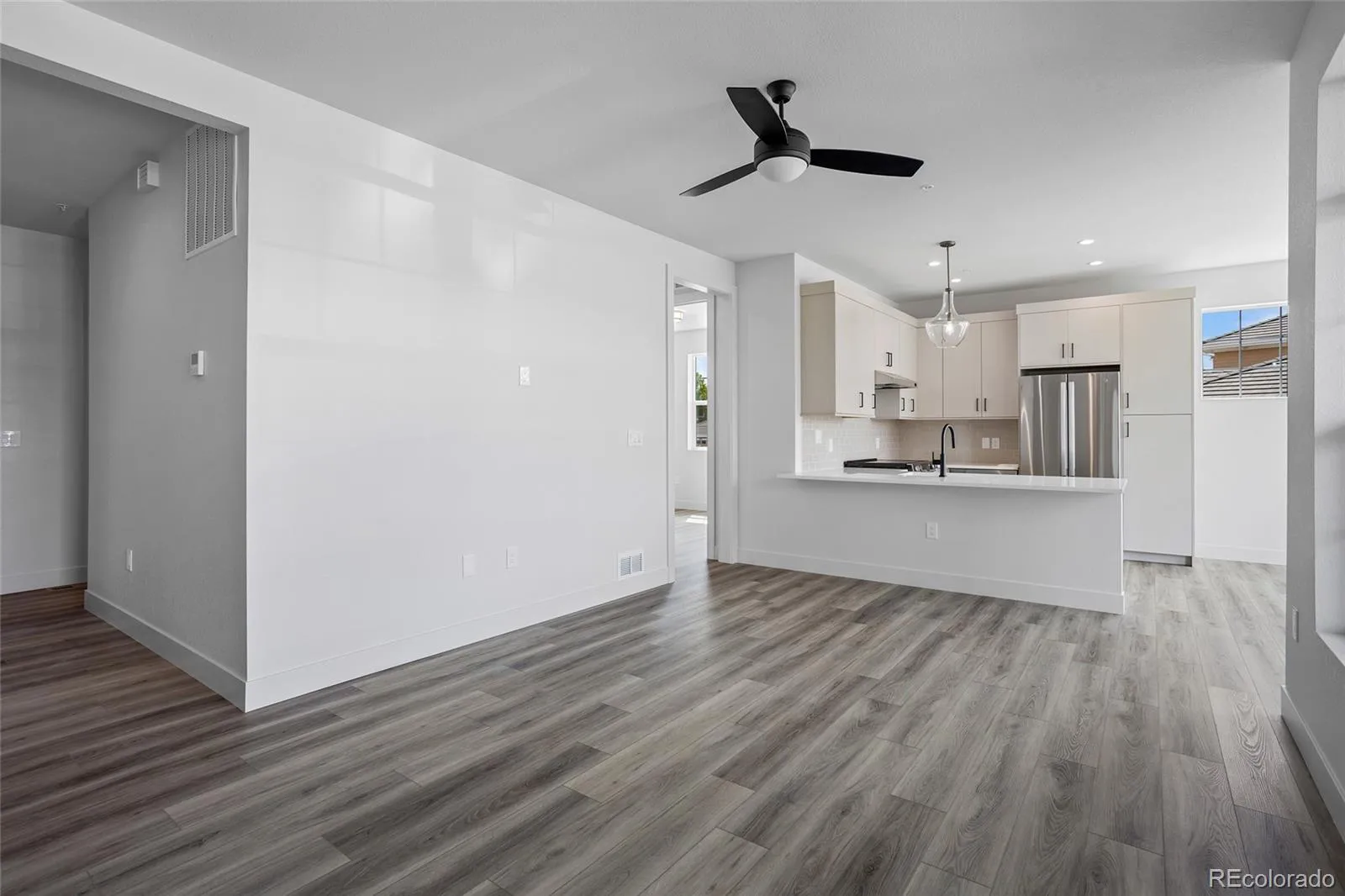 This newly constructed residence offers a rare blend of thoughtful design, accessibility, and elevated Colorado living, all set within a sun-filled corner location with southern exposure and western views of the Flatirons. Designed for ease and comfort, the home features a single-level layout that is ADA accessible. Wide, open living spaces create a sense of effortless flow, while expansive windows invite natural light to pour in throughout the day, enhancing the home’s warm and welcoming atmosphere. At the center of the home, the kitchen and living areas come together in a seamless, open-concept design ideal for both everyday living and entertaining. Champagne-toned light fixtures add a refined glow, complementing the clean lines, 3 cm quartz countertops, and full-height backsplash, along with GE/Profile stainless steel appliances. The living space extends naturally to a walk-out patio, offering a quiet place to relax or entertain while taking in the surrounding views and Colorado sunshine. The primary suite continues the home’s focus on comfort and functionality, with a spa-inspired bath featuring dual vanities, a zero-threshold shower, and a layout designed with both style and accessibility in mind. An attached two-car garage adds convenience, while all-electric, solar-ready construction, smart home features, fire suppression, and private courtyard access complete the home’s modern, lock-and-leave appeal. Located within The Village on the Broadlands, residents enjoy access to parks, trails, a pool, and nearby amenities, along with easy connectivity to shopping, dining, and major routes.
