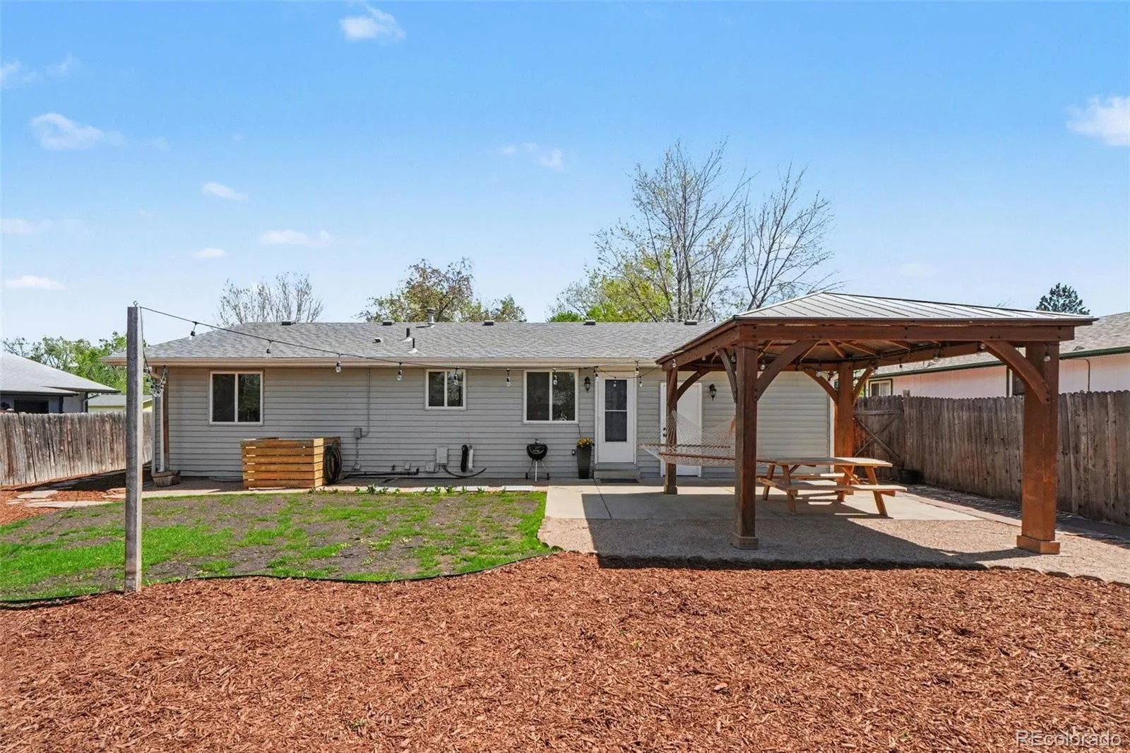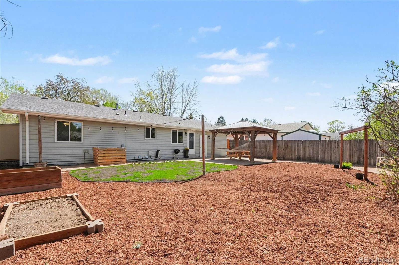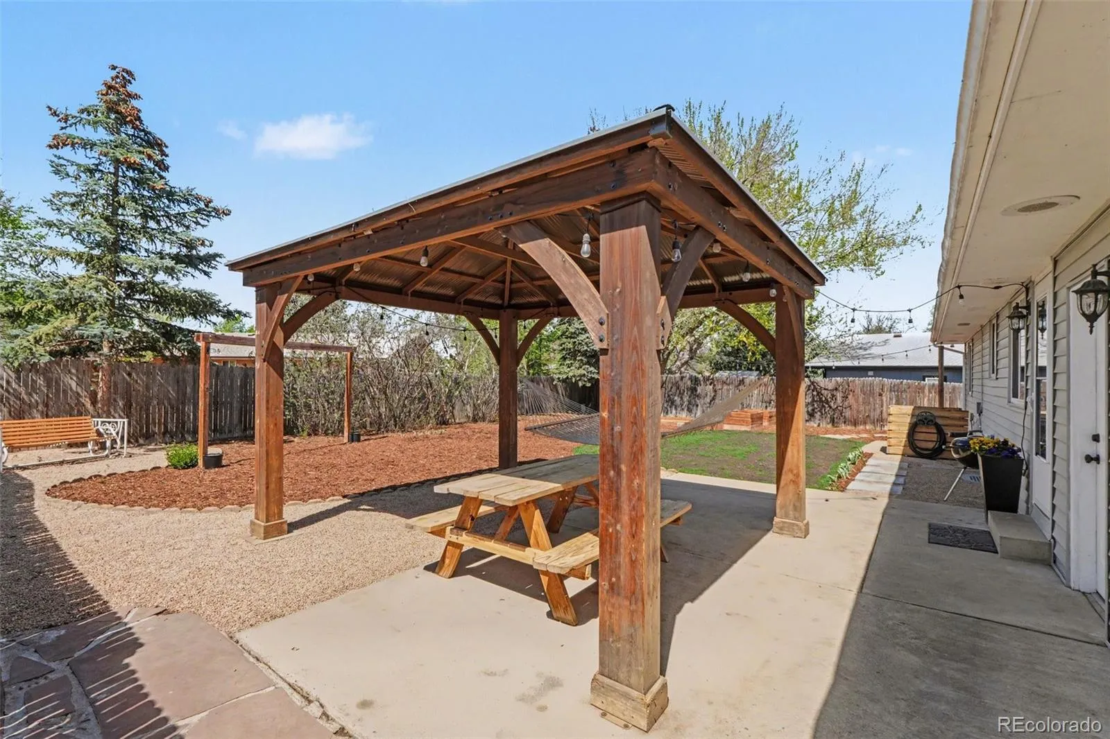 trees, garden areas, and a welcoming patio/pergola space perfect for relaxing or