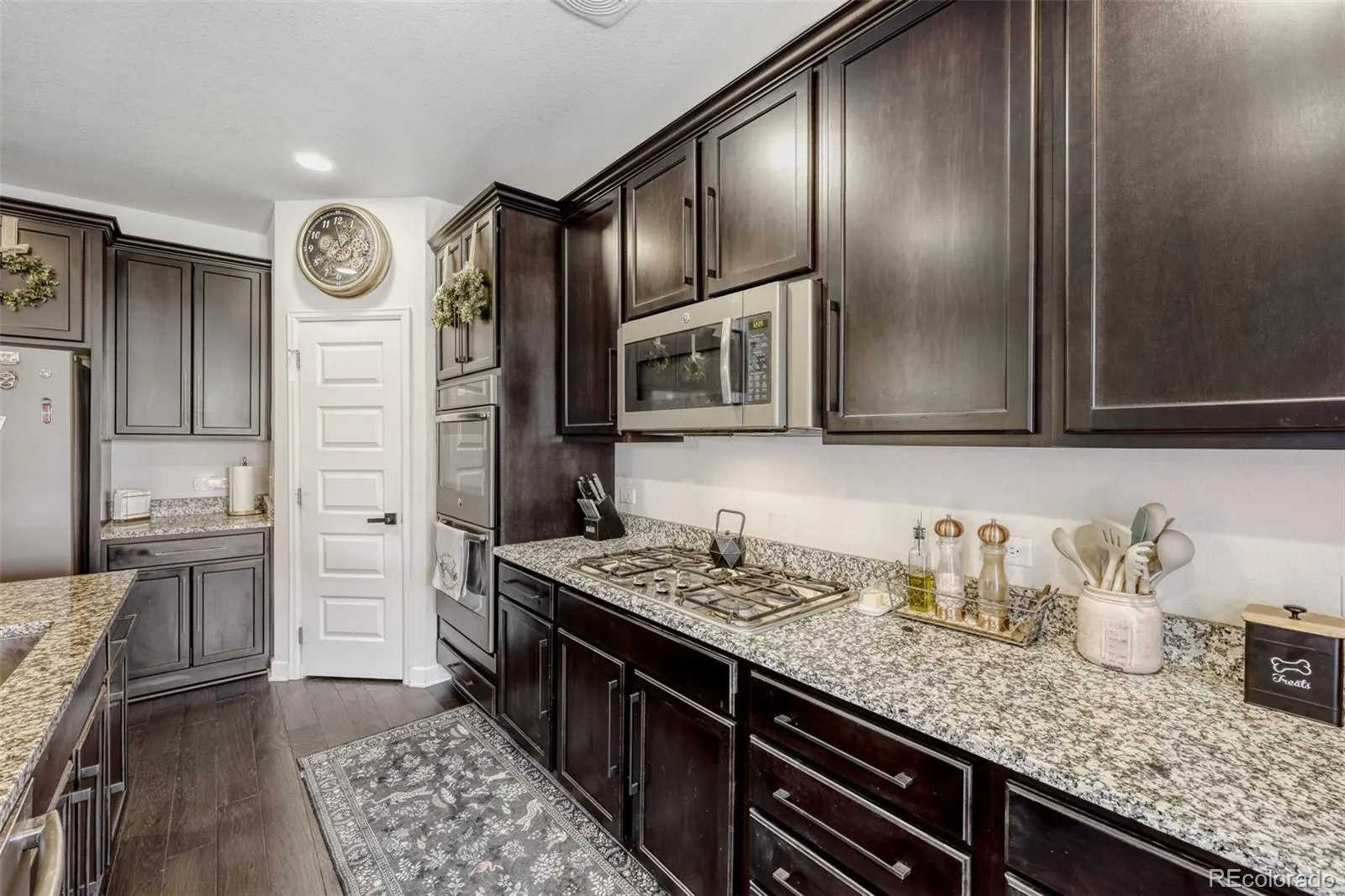 Welcome home to this beautifully designed ranch-style property offering 3 bedrooms and 3 bathrooms with an open, functional layout that blends comfort and style. Hardwood floors run throughout the main living area, and custom closet built-ins add thoughtful storage to every bedroom and the pantry. A dedicated office or den provides a quiet workspace, featuring custom reclaimed wood shelving and sliding barn doors for added character. The kitchen is a standout, complete with stainless steel appliances, a large center island, and double ovens, ideal for both everyday living and entertaining. The spacious primary suite includes a walk-in closet and a recently updated 5-piece bathroom with a soaking tub, walk-in shower, dual vanities, and a linen closet. The additional upstairs bathroom has also been updated. The finished basement expands your living space with a large family room, flexible areas for hobbies or entertainment, a pre-plumbed wet bar, an additional bedroom and bathroom, and a sizable unfinished storage area with built-in shelving. Outside, enjoy the covered patio and gas hook-up, perfect for outdoor dining and gatherings. Conveniently located with easy access to E470, I70, Denver International Airport, and nearby shopping and dining, and situated within the desirable Aurora public school district, this home offers a great balance of location, comfort, and functionality.