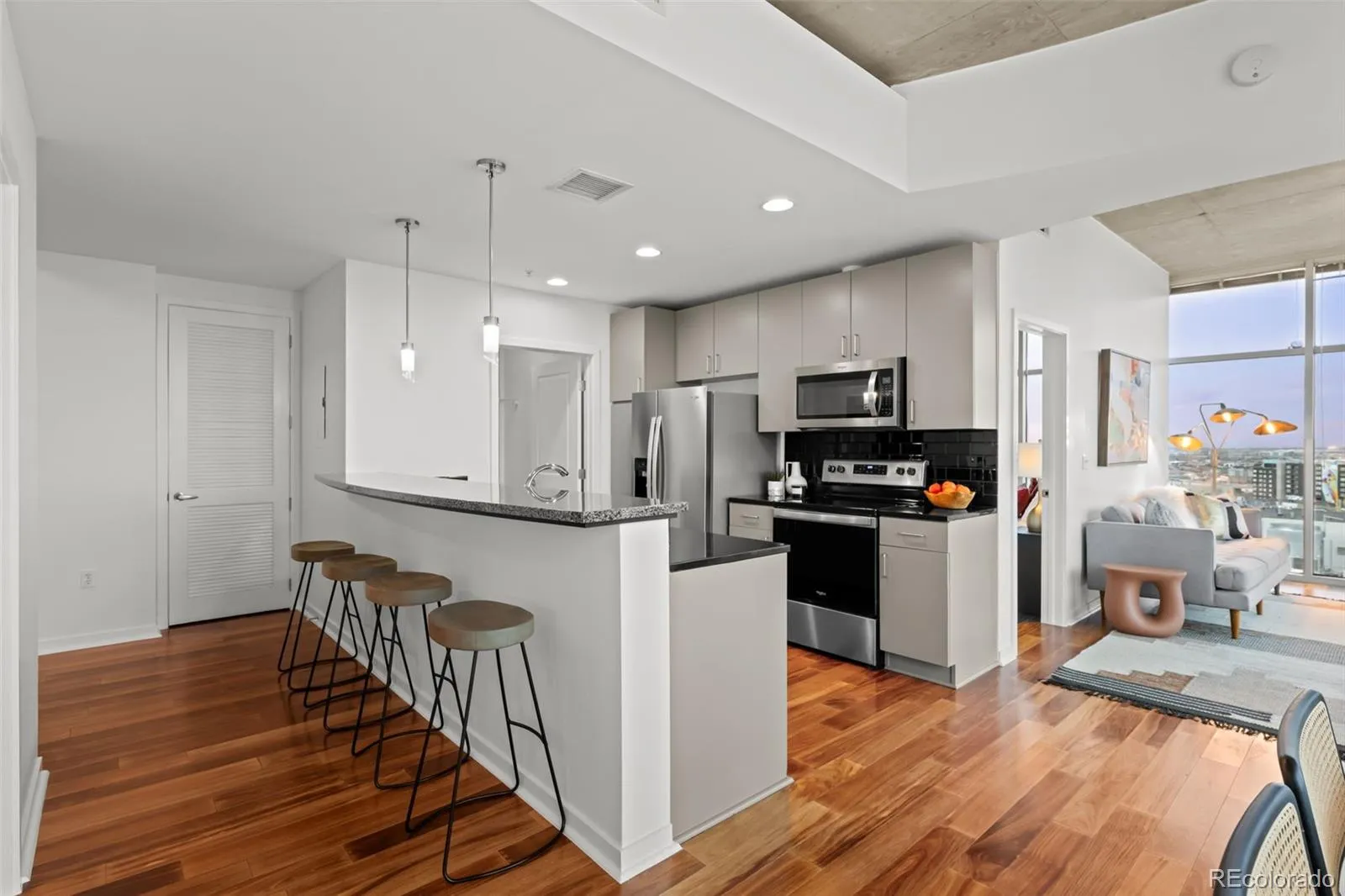 Riverfront Park is a downtown gem and genuinely revered neighborhood to many Denver locals. The Glass House is situated in the heart of it all, giving residents easy access to the best restaurants, shops, biking and running trails, and events all within walking distance. Views of the mountains and the cityscape can be enjoyed from the rooftop lap pool and patio a fire pit and gas grills. Healthy living is made simple with an included membership to a private fitness club located on the main floor of Glass House. Across one of two bridges is the Union Station neighborhood, home to the city’s best dining, premium boutiques, entertainment venues, Whole Foods, and just a short walk from LoHi, LoDo, Ball Arena and the Light Rail with direct service to DIA. The condo, located on the 16th floor, has hardwood floors, washer/dryer, stainless appliances, an outdoor balcony, upgraded finishes, and floor to ceiling windows with incredible city and mountain views. The building’s amenities include a 24hour front desk with concierge services handling dry cleaning pick-up and drop-off, food and grocery deliveries, and more. On-site management keeps the building running smoothly. Residents enjoy secure parking and commuters appreciate quick entry onto I25 and Union Station, a mere three blocks away. This low maintenance residence couldn’t be more conveniently located while providing a relaxing ambiance of which Riverfront is best known for. This is a very special home in a very special community.