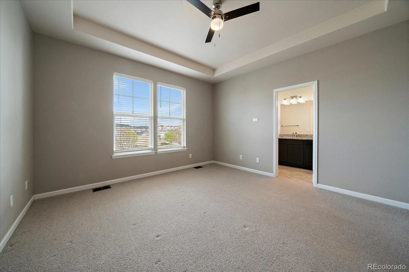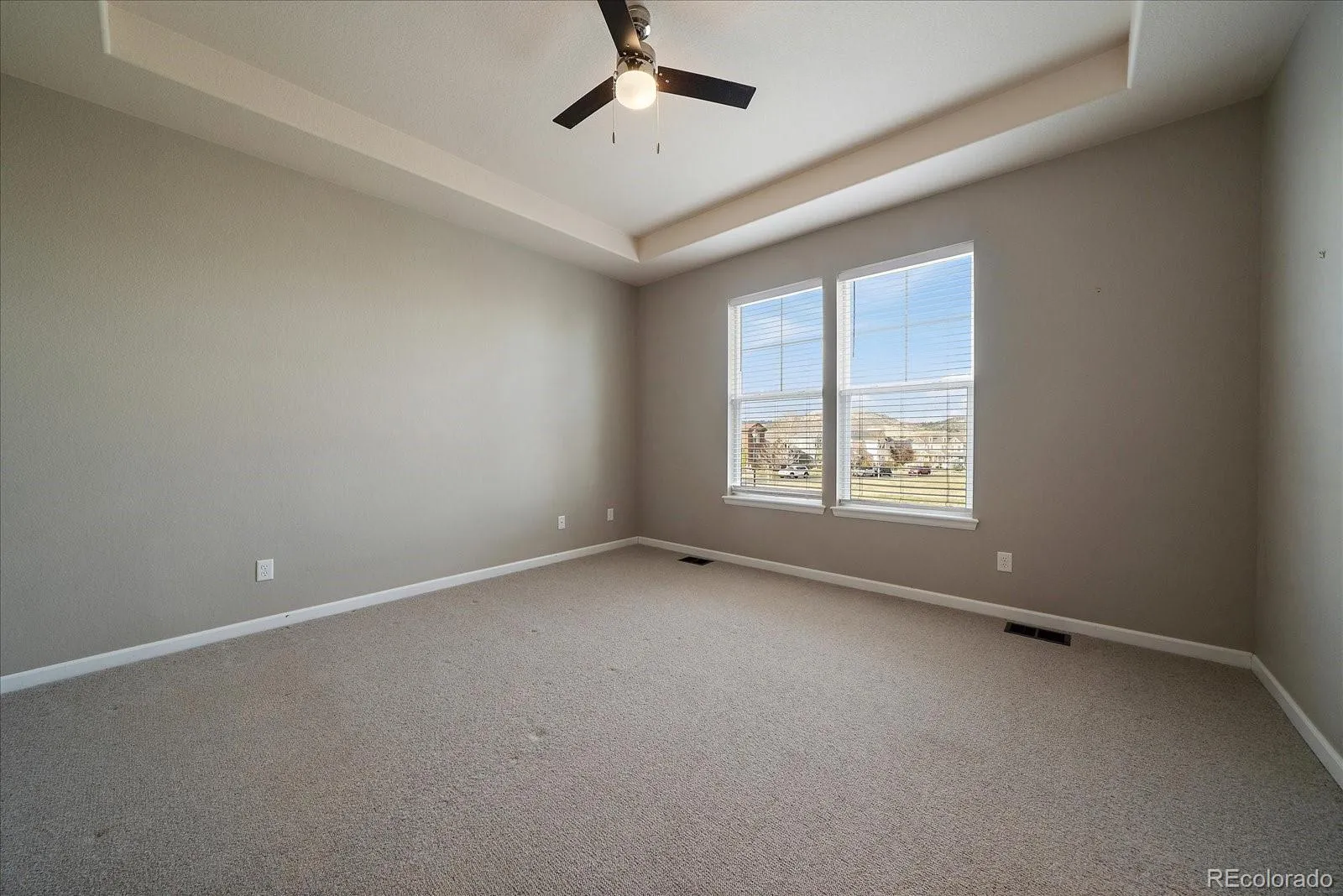 Perched above the street, this inviting home captures sweeping outlooks across the park and rolling hills beyond, creating a sense of space, light and everyday escape. The cheerful, tidy exterior and welcoming front porch set the tone for relaxed living, with a perfect vantage point to soak in the peaceful surroundings. Inside, the home opens into a light-filled main living area where vaulted ceilings enhance the feeling of openness and calm. Wide plank style floors flow underfoot, adding warmth and style, while the layout invites both quiet moments and easy entertaining. The kitchen is both functional and striking, featuring stylish black cabinetry, stone benchtops, stainless steel appliances and a central island where conversations naturally gather. The dining area is framed by a charming bay window. From the kitchen, step directly out to the sunny rear deck, an ideal setting for weekend barbecues, morning coffee or unwinding at the end of the day. The primary bedroom is a peaceful retreat, perfectly positioned to enjoy calming views over the nearby park. It includes a well-appointed ensuite with twin vanities, creating a practical and comfortable private space, plus here is a walk-in closet. Two additional bedrooms are thoughtfully separated and share a fresh, modern bathroom, making the home ideal for families, guests or a flexible work-from-home setup. A small, easy-care yard offers just the right amount of outdoor space for pets or play, while the dual street frontage and rear-access double garage add convenience and functionality. Set within the highly sought-after Meadows community in Castle Rock, residents enjoy access to a pool, clubhouse and beautifully maintained surroundings. With shopping, dining and the charm of Old Town Castle Rock just minutes away, this location delivers a lifestyle that balances connection, comfort and natural beauty.