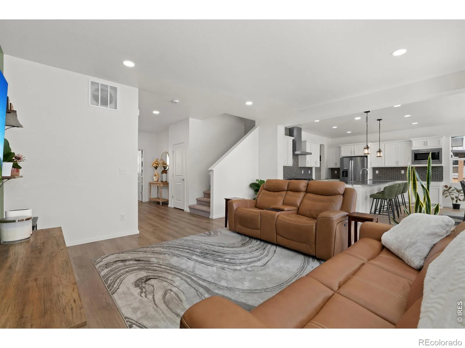 Located in the popular Mosaic neighborhood of Fort Collins, this home offers the perfect blend of lifestyle, convenience, and thoughtful design. Enjoy easy access to Old Town Fort Collins-just a quick bike ride away-where you’ll find local breweries, restaurants, and shopping, along with seamless connectivity to I-25 for commuting. Mosaic residents also enjoy exceptional neighborhood amenities, including two community pools and a newly developed park.The home features inviting outdoor spaces with a covered front porch and a private backyard patio. Inside, the open-concept main level is filled with natural light and anchored by a spacious kitchen complete with a large island, gas range, white cabinetry, tiled backsplash, and ample seating at both the island and dedicated dining area. The kitchen flows seamlessly into the living room. A main-level office, convenient half bath, and additional storage near the garage entry add to the home’s versatility.Upstairs, the primary suite offers vaulted ceilings, a ceiling fan, a generous walk-in closet, and a three-quarter bath. A flexible loft space at the top of the stairs provides options for a home office, playroom, or secondary living area. Three additional bedrooms, a full bathroom, and an upstairs laundry room complete the upper level. The unfinished basement features high ceilings and offers excellent potential for future expansion, a home gym, or additional storage.