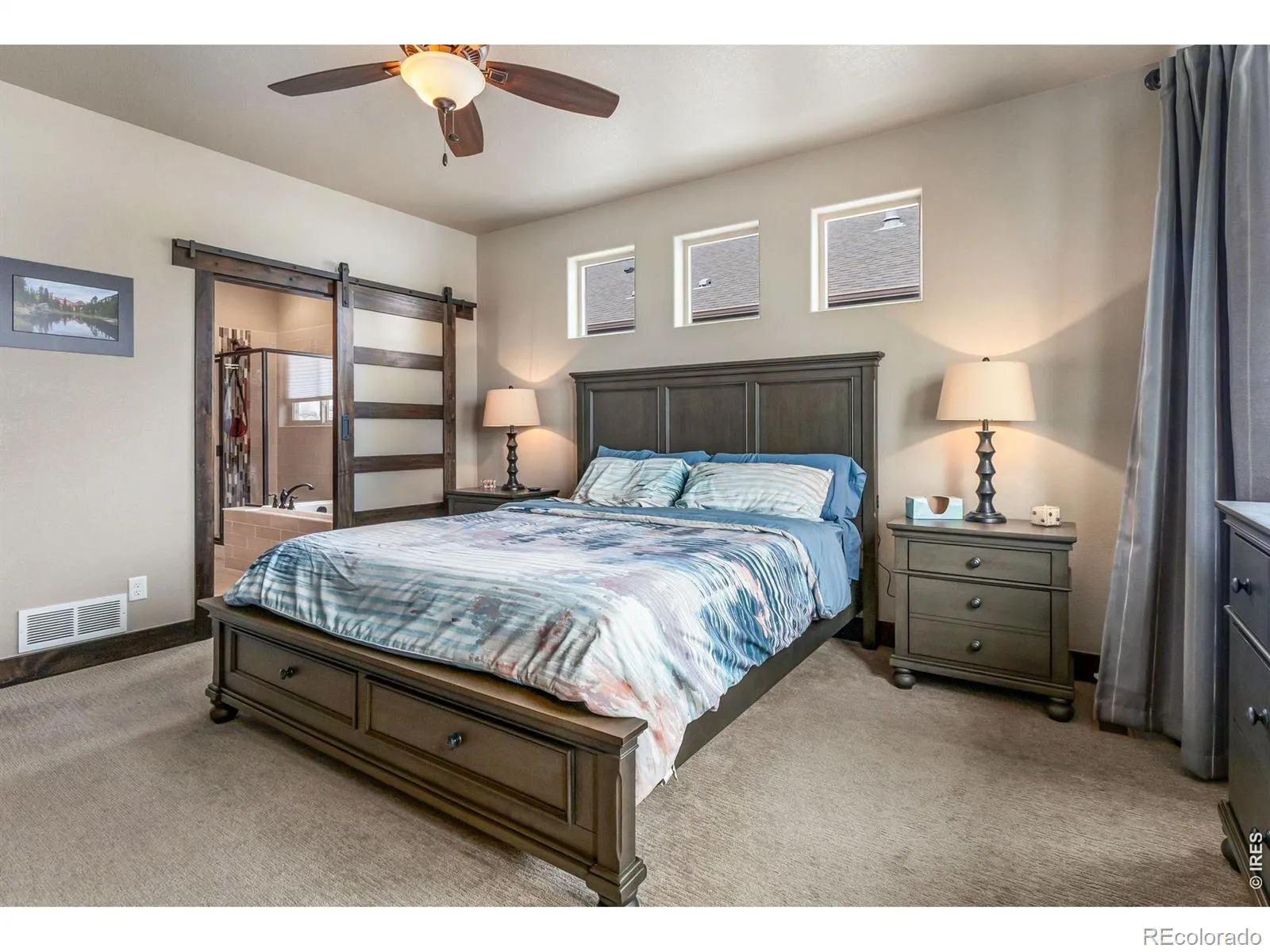 WATERFRONT LIVING AT ITS FINEST! This elegant lakefront ranch-style home in the highly sought-after Winter Farm neighborhood is truly one of a kind. Designed for both comfort and sophistication, the open-concept main level seamlessly connects the gourmet eat-in kitchen, formal dining area, and inviting living room-framed by stunning lake views and a beautiful fireplace. The kitchen is a standout, featuring Tharp cabinetry, granite countertops, a full backsplash, a large island, double oven, stainless steel appliances, and a gas cooktop with vent hood-perfect for both everyday living and entertaining. The spacious main-level primary suite is a private retreat, complete with a large bay window overlooking the lake, a luxurious five-piece bathroom, and an impressive custom closet with upscale built-ins. Two additional generously sized bedrooms and a full bath complete the main level, highlighted by solid hardwood flooring, alder doors and trim, and abundant natural light throughout. The finished basement expands your living space with a massive family room and a stylish wet bar-ideal for entertaining or relaxing. You’ll also find two additional bedrooms, a full bathroom, and unfinished space for storage, a workshop, or future expansion. Step outside to a thoughtfully designed, low-maintenance backyard featuring two covered patio areas right on the water-perfect for enjoying serene lake and mountain views with no rear neighbors, just peaceful wildlife. Additional highlights include a tandem 3-car garage and a permanent exterior smart lighting system-no ladders needed for holiday decorating. Located near downtown Windsor, Winter Farm offers easy access to shopping, dining, scenic river trails, parks, and open green space-making this home the perfect blend of luxury, convenience, and natural beauty.
