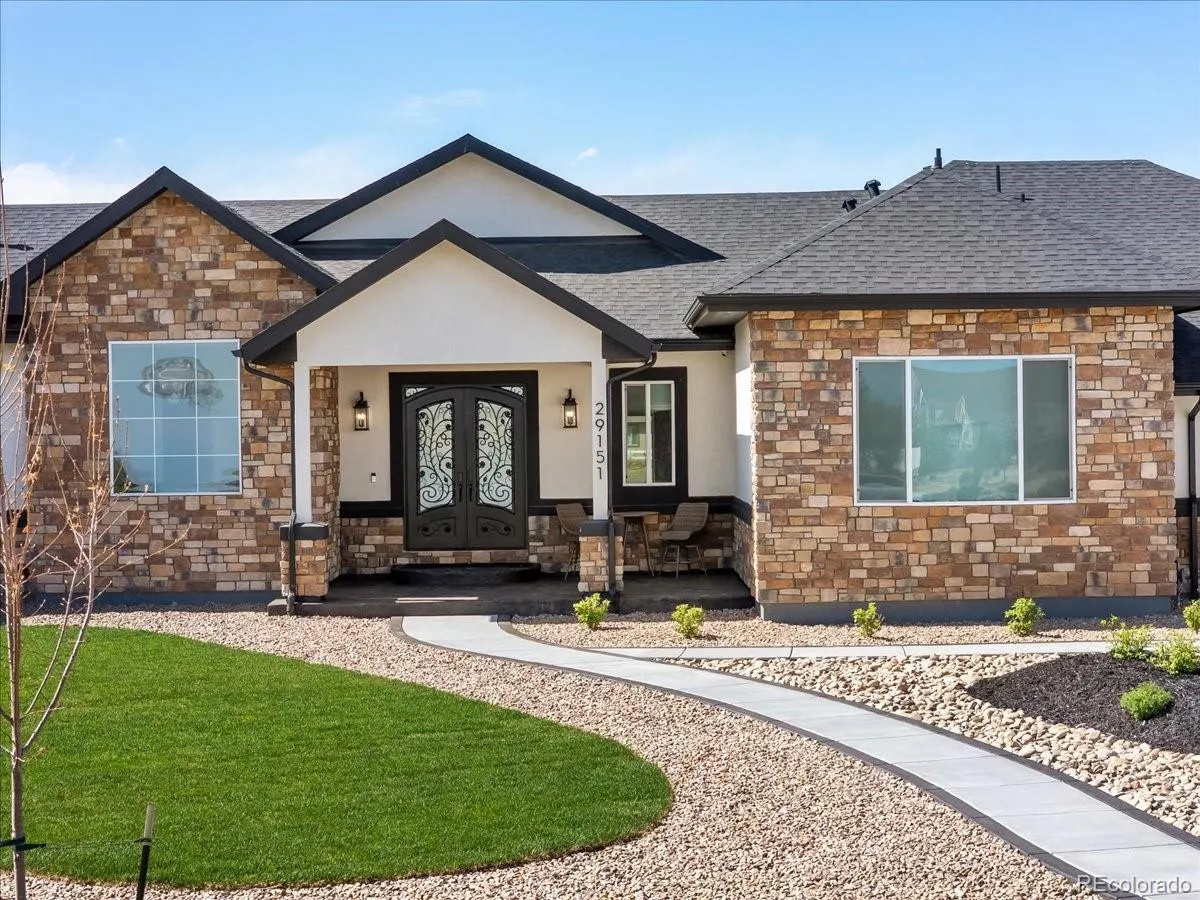 Tucked at the end of a quiet cul-de-sac on 2.28 acres with no HOA, this 6,832 sq ft custom home with a 4-car garage delivers privacy, scale, and elevated living. Recently refreshed front landscaping enhances the curb appeal and sets the tone the moment you arrive. Inside, the great room is built to impress with soaring ceilings, walls of windows, and a floor-to-ceiling fireplace that anchors the space. The kitchen is designed for both function and style, featuring a large island with seating, farmhouse sink, custom tile backsplash, walk-in pantry, and JennAir appliances, all flowing seamlessly into the dining area. The main level primary suite is a true retreat with its own fireplace, spa-style bath, dual walk-in closets, and custom vanity. Three additional bedrooms, a spacious laundry room, and mudroom complete the main floor. Downstairs, the fully finished basement expands your living options with two en suite bedrooms ideal for guests, office, or creative space, plus a theater room, workout area, and an open rec and game space with wet bar and ample storage. Surround sound is already wired throughout key living areas and outdoor patio. Thoughtful upgrades include a camera security system, fire suppression system, tankless water heater, and dual A/C units. Outdoor living is where this property really opens up. Enjoy the covered front porch, expansive back patio, and wide spacing between homes that gives you privacy and uninterrupted sky. Horses are allowed, with plenty of room for RV parking, toys, future outbuildings, or whatever vision you bring.