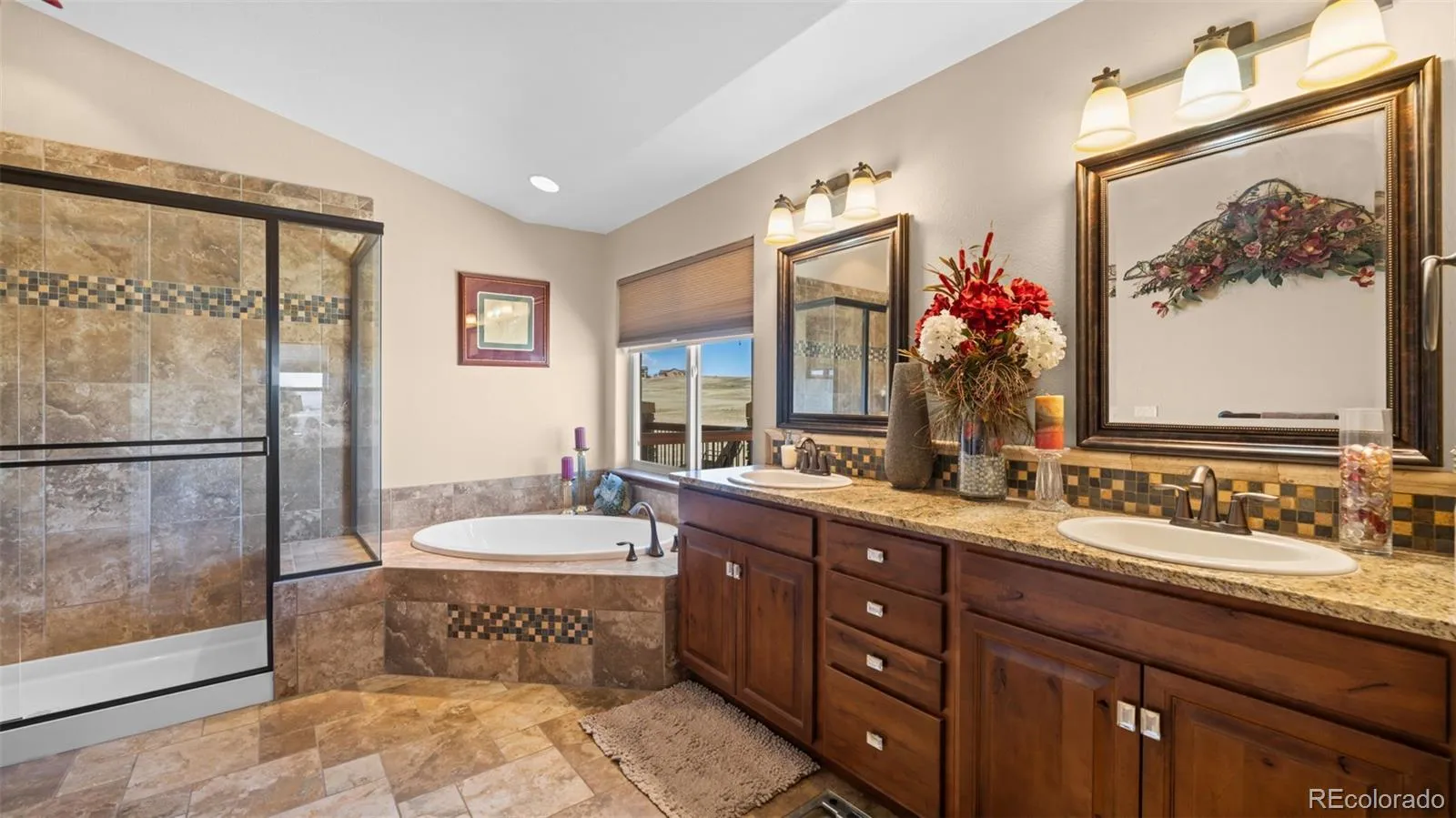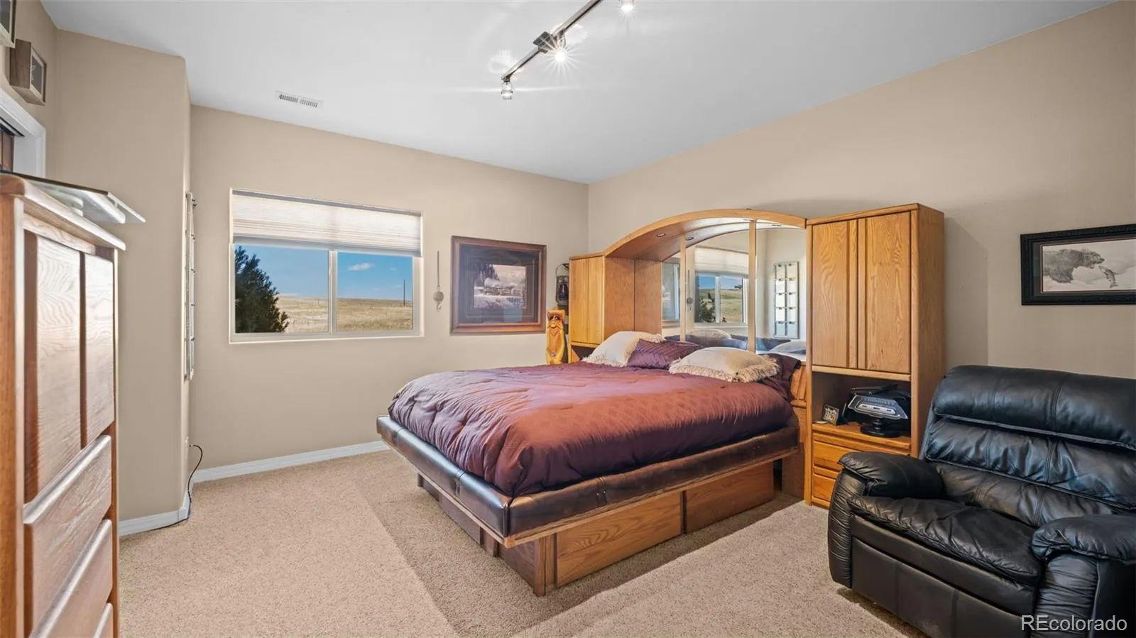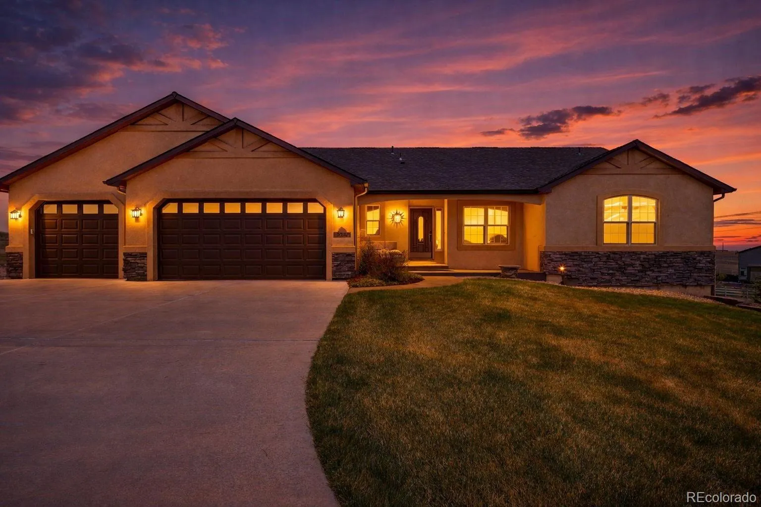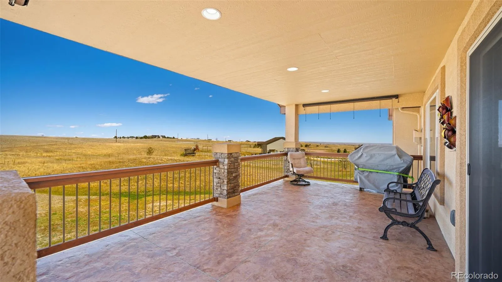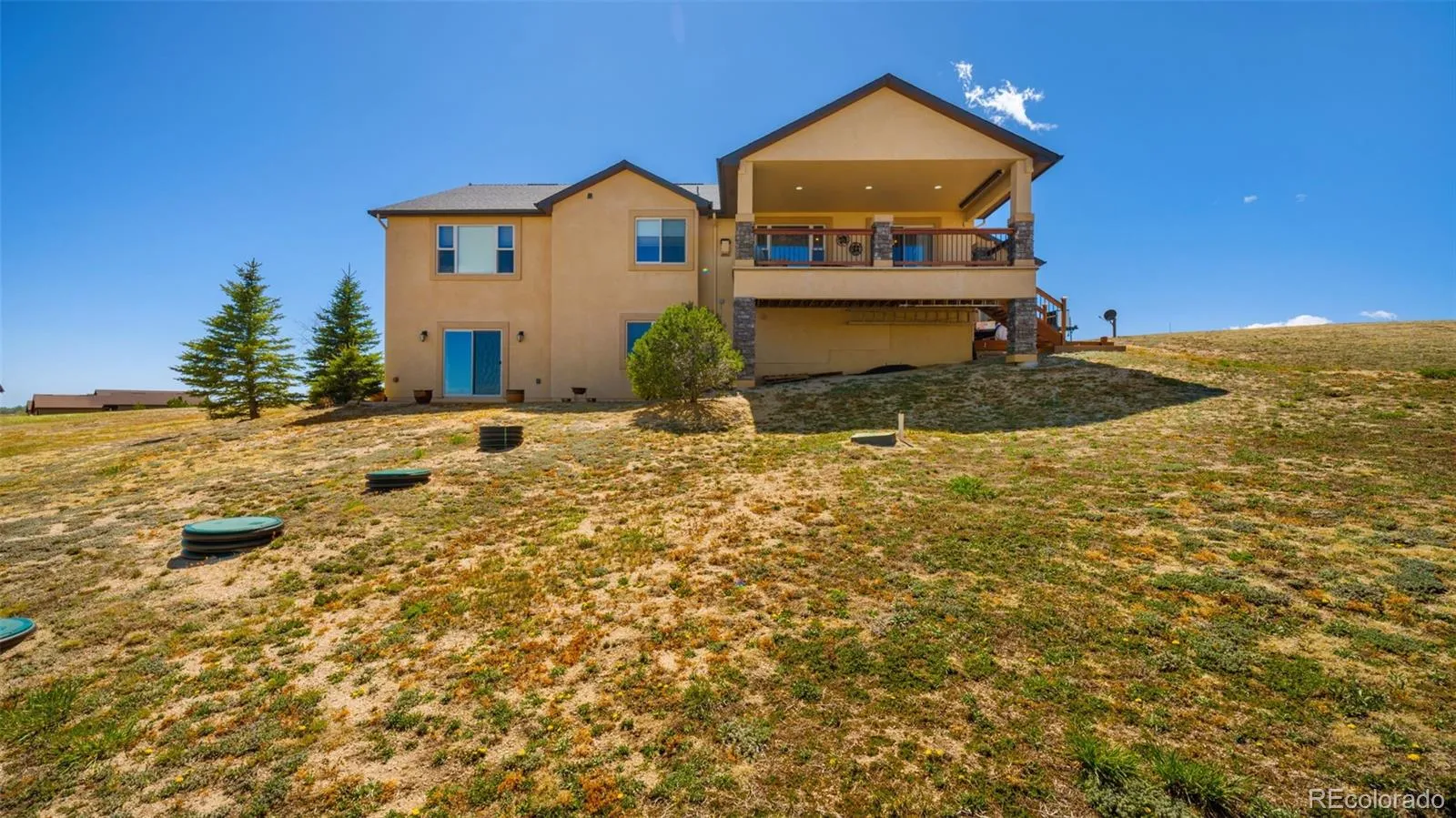 Meticulously Maintained One Owner Rancher 4+ Bedroom/3 Full Baths/ 3 Car Garage on 2.51 Acres Offering True Main Level Living ~ Located Just Outside of Black Forest in the Growing Community of Falcon ~ Close to Amenities, Shopping, Restaurants, Trails ~ Easy Commute to Military Bases and Downtown Colorado Springs ~ Don’t Miss Out On This Better Than New Stucco and Stone Home Complete with All of The Landscaping, Six Zone Sprinkler System, Appliances and Window Coverings ~ Numerous Upgrades, Solid Surface Granite Counter Tops, Hand Scraped Hardwood, Gorgeous Tile and Colored Stamped Concrete Floors, Fully Equipped Kitchen w/ Stainless Steel LG Appliances, Refrigerator, Range/Double Oven, Microwave, Dishwasher, Under Cabinet Lighting ~ Gas line installed for future Gas Range if Desired ~ Main Level Laundry with Washer/Dryer and Laundry Sink ~ Prewired for Surround Sound Inside and Out ~ Light and Bright Walk Out Lower Level with Fireplace and Beautiful Wet Bar including Full Size Refrigerator ~ Fully Finished Garage w/ Hot and Cold Faucet and Man Door ~ ATV/ RV Parking behind Garage ~ Recirculating Water System Provides Quick Hot Water ~ Relax on The 12 X 24 Deck with Privacy Shades-Low Maintenance Stamped Concrete-Recessed Lighting ~ Enjoy The 17 X 10 Stamped Concrete Patio off the Lower Level ~ Located Near The Pikes Peak School of Expeditionary Learning ~ All of This and So Much More ~ Schedule Your Private Showing Today