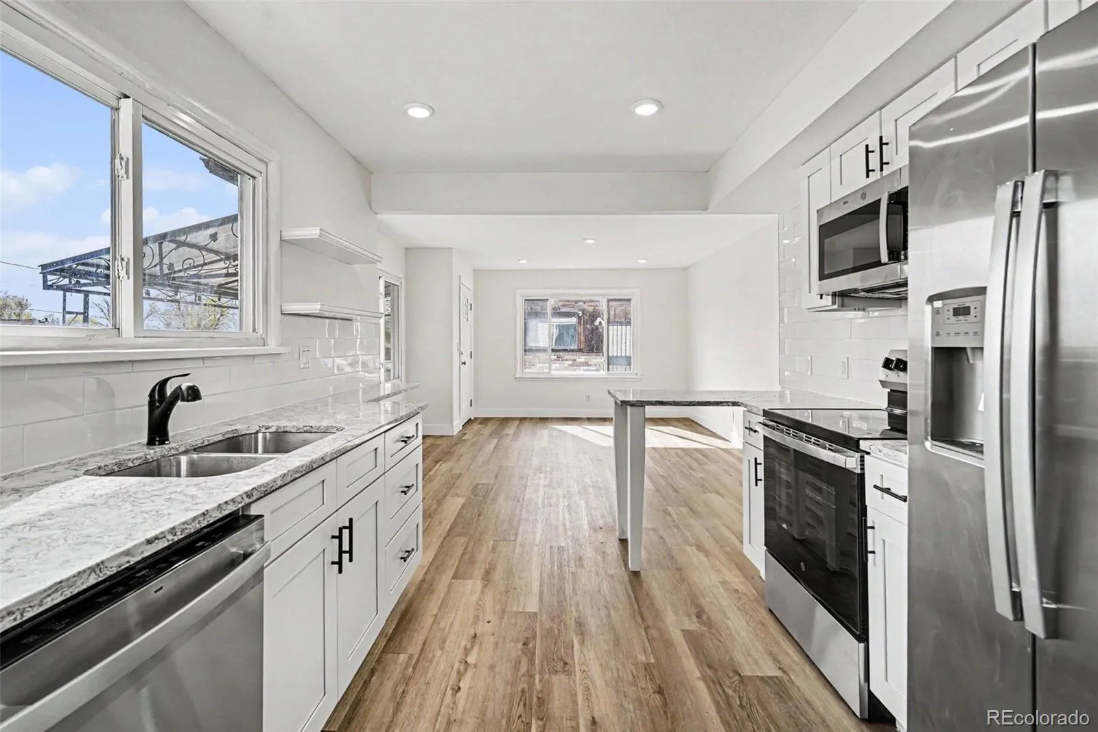 THE INTERIOR: Experience a bright, open-concept floor plan designed for modern living. The chef-inspired kitchen boasts quartz countertops, custom cabinetry, and premium stainless steel appliances. The secluded primary retreat is a standout for this area, providing a private sanctuary not typically found in homes of this vintage.