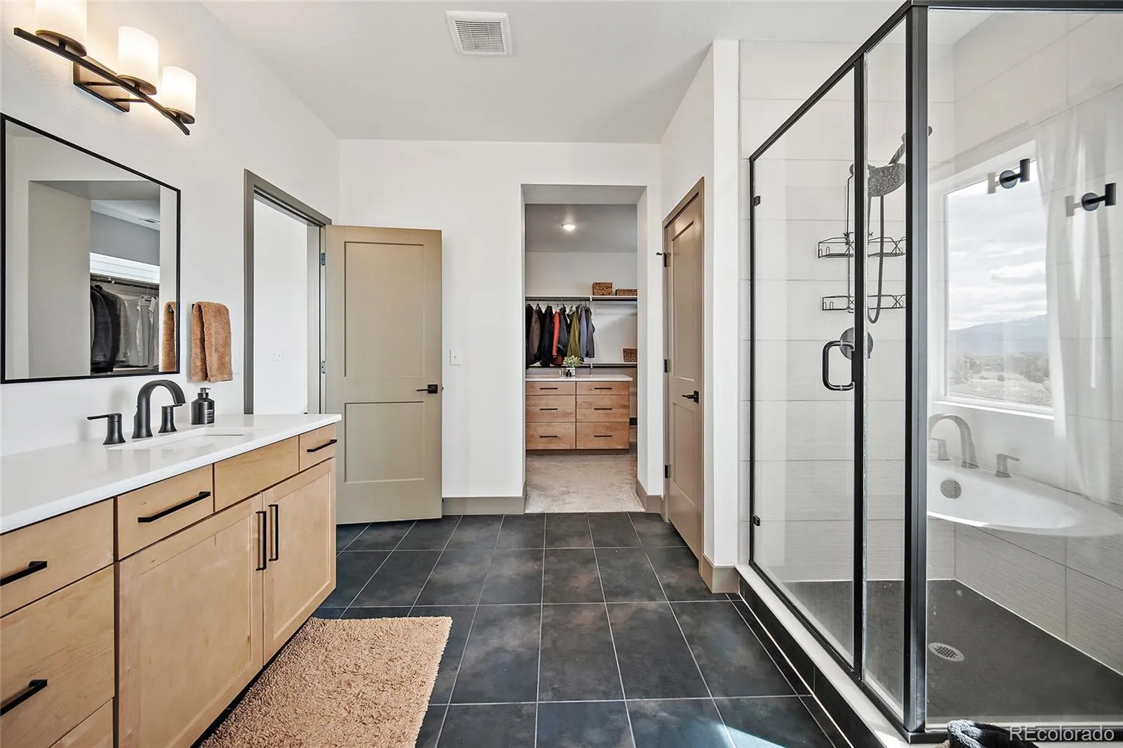 bath, and a custom closet complete with built-in cabinets. Enjoy entertaining or relaxing outdoors on the extended covered