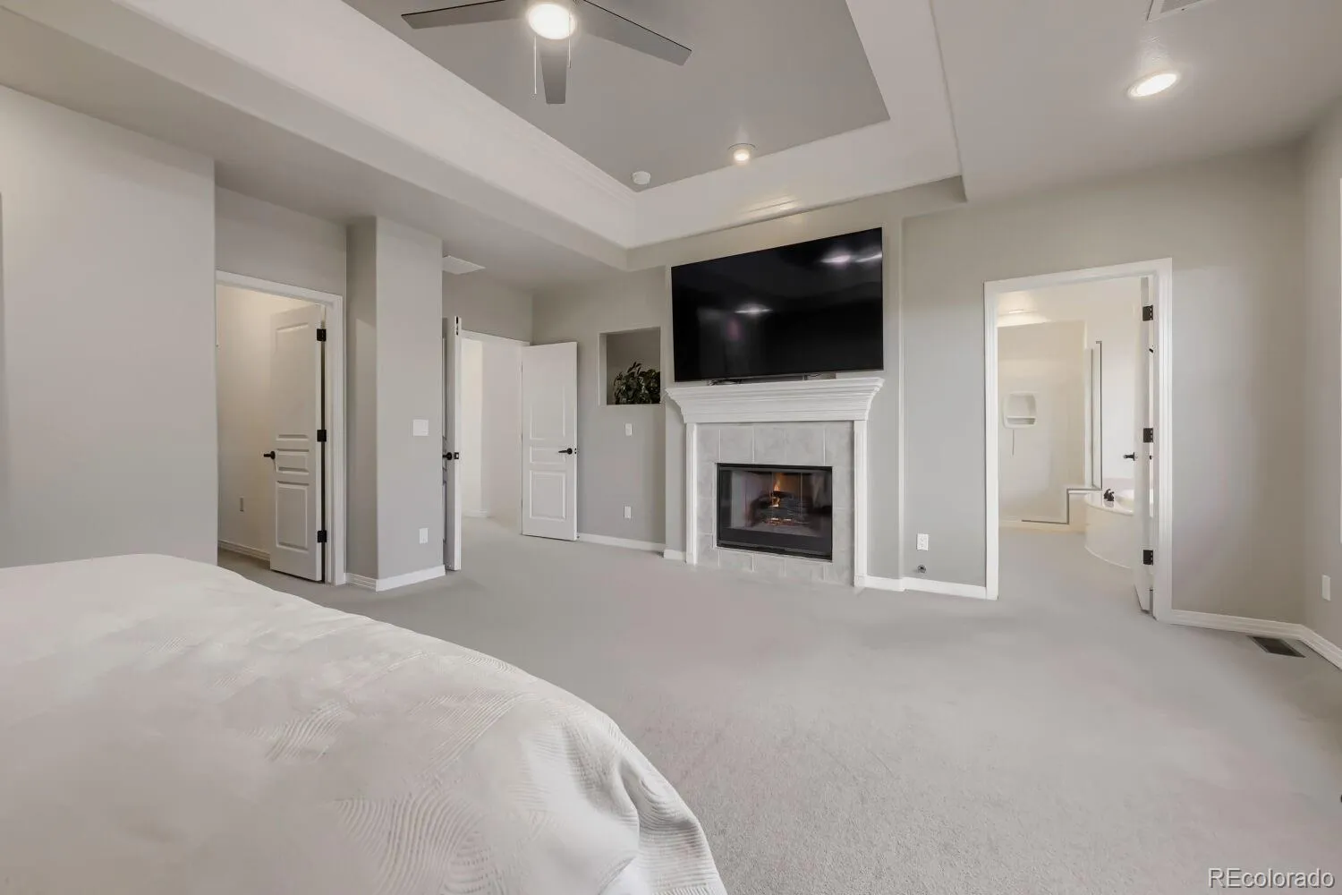 Located on a 1/3-acre lot in a desirable golf course community, this spacious home offers a blend of comfort and thoughtful updates. The open floor plan is enhanced by programmable interior and exterior lighting, creating an easy flow for both everyday living and entertaining.The kitchen features a soapstone island, Bosch induction cooktop, microwave drawer, pantry and under-cabinet lighting, creating a functional and inviting space ready for gathering. Upstairs, the expansive primary suite includes a fireplace and peek-a-boo views, while the home’s five bedrooms and five baths provide flexibility for guests, work or hobbies. A hidden bookshelf in the basement bedroom suite adds a touch of character and leads to extra storage. Major systems include dual A/C units, solar panels, 400-amp electrical panel, EV charger and another 220 line for parallel charging if you need.The walk-out basement opens to a large patio and a private yard framed by evergreen trees, complete with raised garden beds. With its solid features, great layout, and prime setting, this home is comfort in every corner!