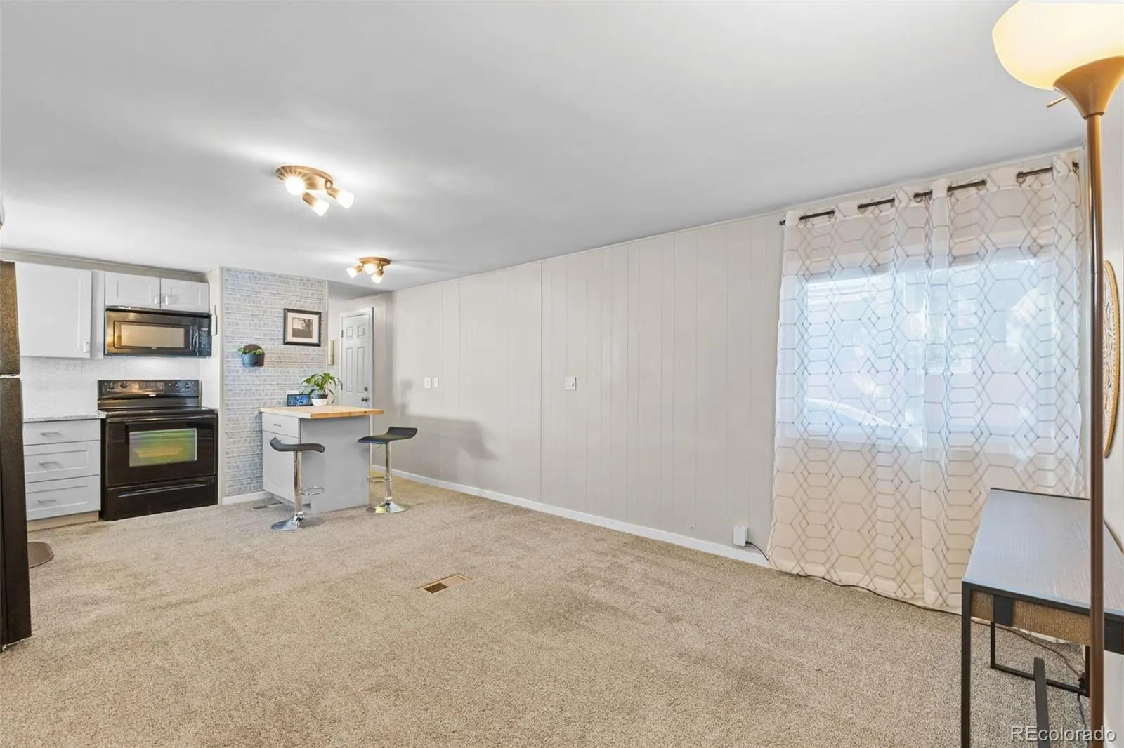 Inside, you’ll find a bright and open-concept layout with high ceilings and abundant natural light. The updated kitchen features granite countertops, a pantry, and newer appliances including dishwasher, refrigerator, stove, and washer/dryer combo—all included. Recent renovations extend throughout the home, including remodeled kitchen and bathrooms, new wall-to-wall carpet, and all new blinds, creating a clean and modern feel.